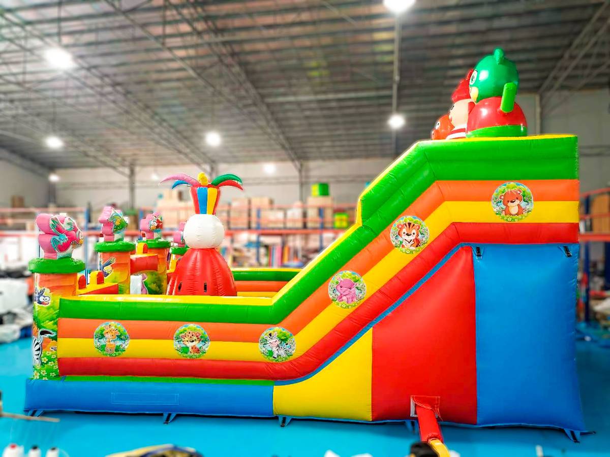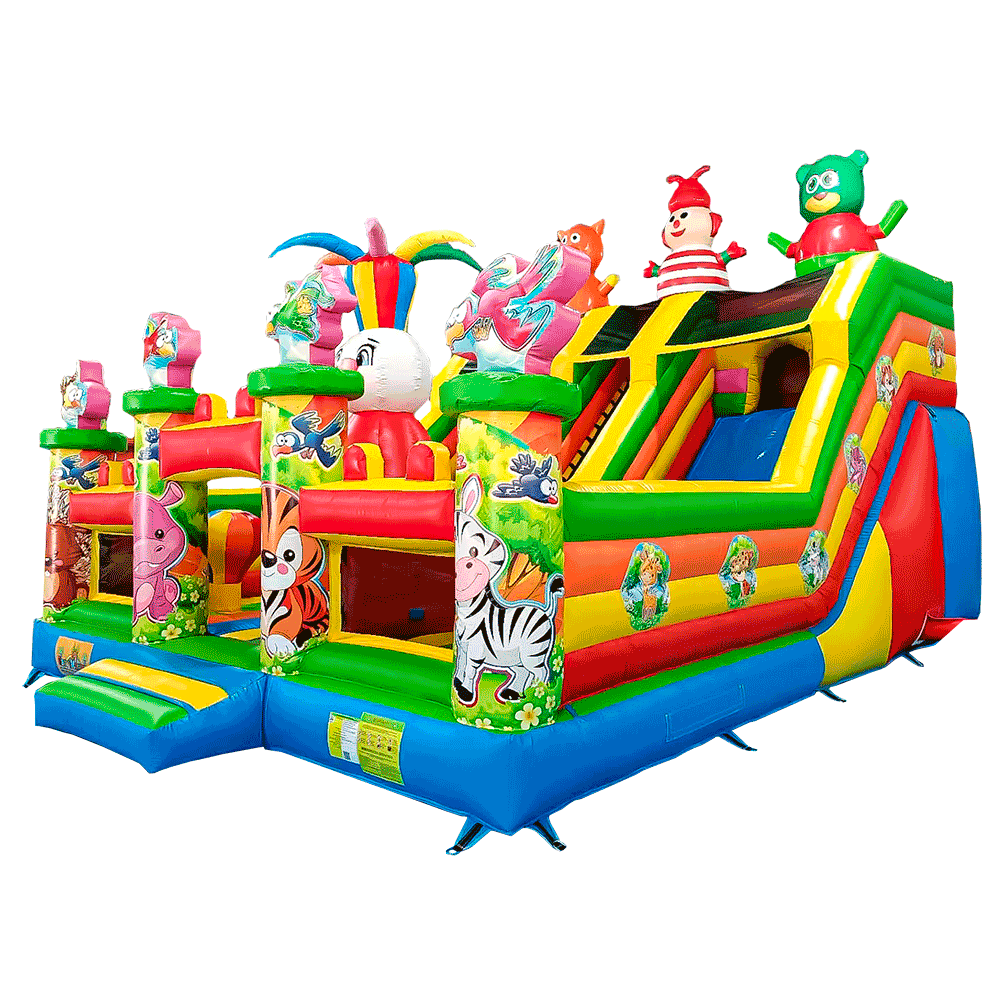 Батут оснащен двумя широкими горками, с которых дети так любят кататься с ветерком. Большое прыжковое поле позволит отталкиваться и подлетать вверх. Также тут есть горка для самых маленьких. По всему периметру батута есть надувные высокие борта, а спереди окошки из прочной сетки, чтобы родители и дети видели друг друга.Коммерческий батут прекрасно дополнит игровую площадку как на открытом воздухе, так и в помещении. Это отличный вариант для бизнеса.