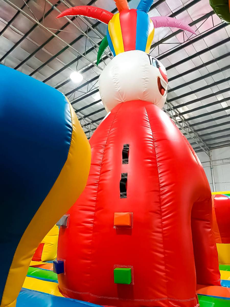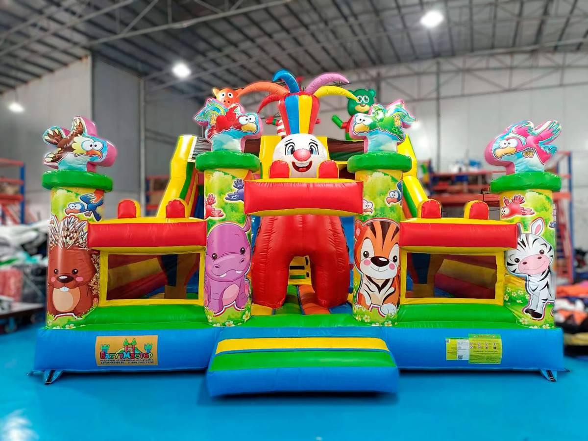 Надувной батут «Встреча друзей 2» вобрал в себя все то, что так нравится юным непоседам. Здесь можно прыгать, кувыркаться, бегать, прятаться и все это делать веселой компанией. Детям непременно понравятся его яркие цвета, а особенно надувные животные, которые размещены по разным сторонам комплекса. Каждый элемент здесь маленькие первооткрыватели будут рассматривать с особым любопытством. Посередине игрового поля возвышается огромная надувная фигура веселого клоуна.