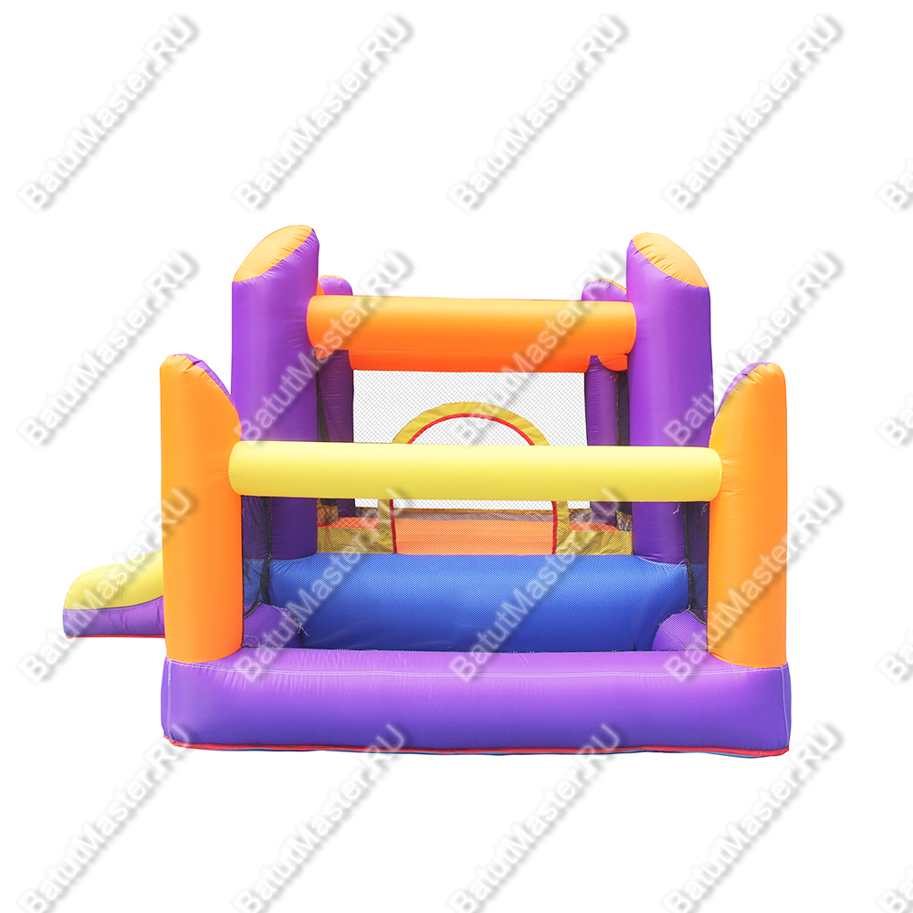 Надувной батут «Яркое приключение» - компактный игровой комплекс, в котором дети смогут прыгать, кувыркаться и спускаться с горки дружной компанией. Просторное прыжковое поле защищено прочной сеткой, поэтому играя, дети не выпадут за пределы игровой зоны. Сбоку батута есть еще одна локация – это место для разноцветных шариков, отчего может получиться сухой бассейн. Эта зона также защищена прочной стекой. Выход с батута выполнен в виде горки, с которой юные непоседы с удовольствием скатятся.