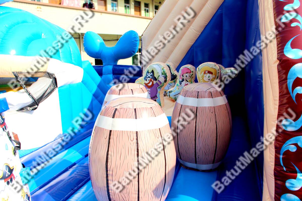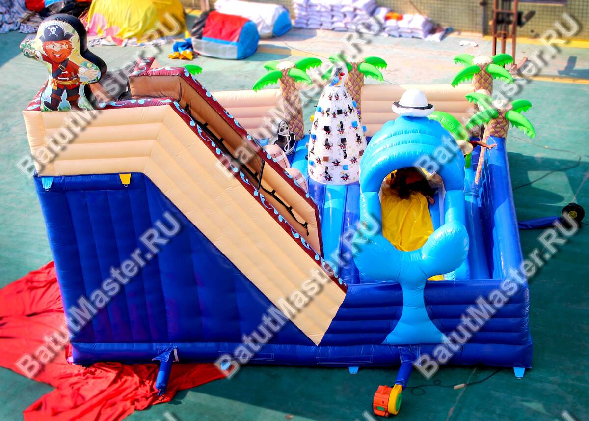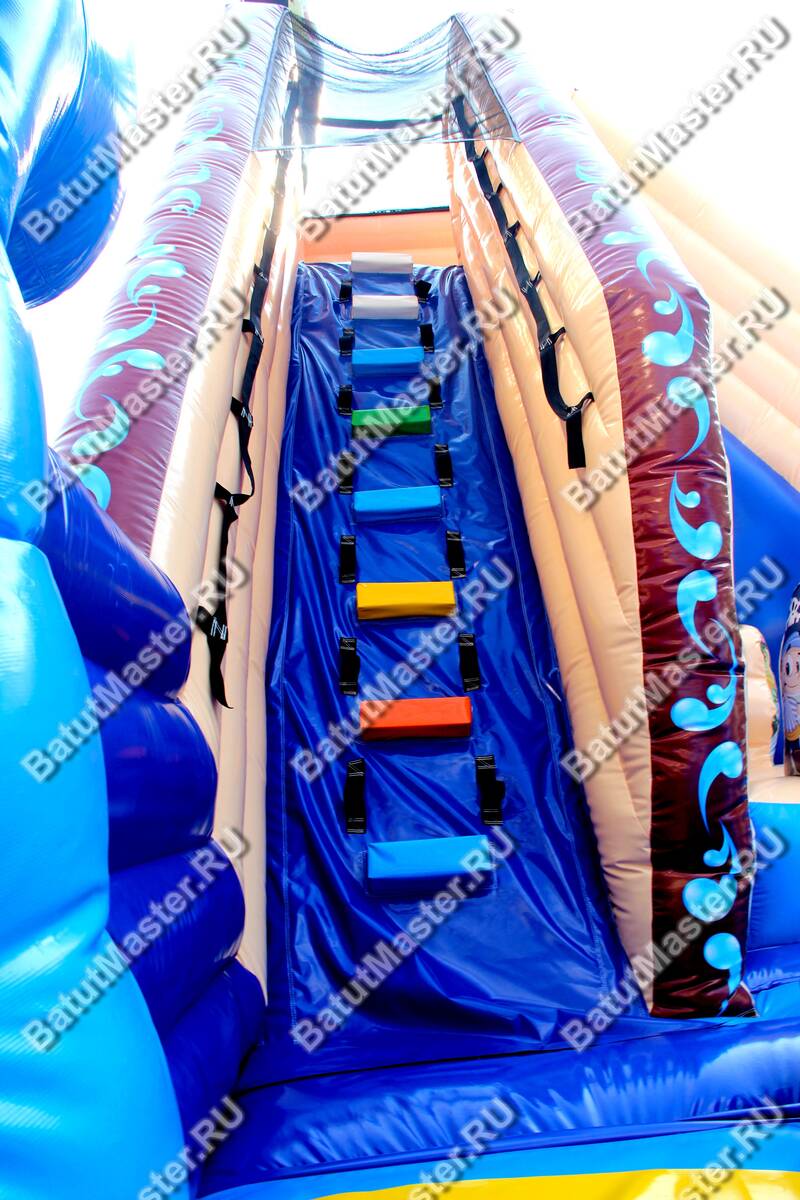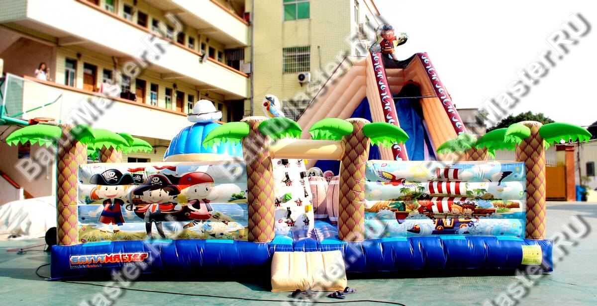 Веселье и радость подарит детям данная модель батута. При небольшом размере он вмещает в себе самые интересные модули и зоны для подвижных игр. Здесь есть скалодром, мягкие ступеньки, высокая горка, зона для прыжков, а самое интересное – это огромный надувной кит. Дети должны будут забраться к нему в рот и скатится. Повсюду надувные элементы в виде бочек, сказочных персонажей, пальм. Каждая деталь здесь яркая и притягивает внимание. Надувной батут с такими элементами развивает выносливость, силу, координацию, что важно для детей. Он рассчитан для бизнеса. Состоит из качественных материалов прошедших ламинирование. Благодаря этому, он устойчив к солнечным лучам и к низкой температуре. Стоит отметить безопасность комплекса: он имеет высокие борта и даже, находясь на самой высокой горке, дети не смогут выпасть наружу. С двух сторон он имеет вставку из прочной сетки, таким образом, родители смогут видеть своих детей.