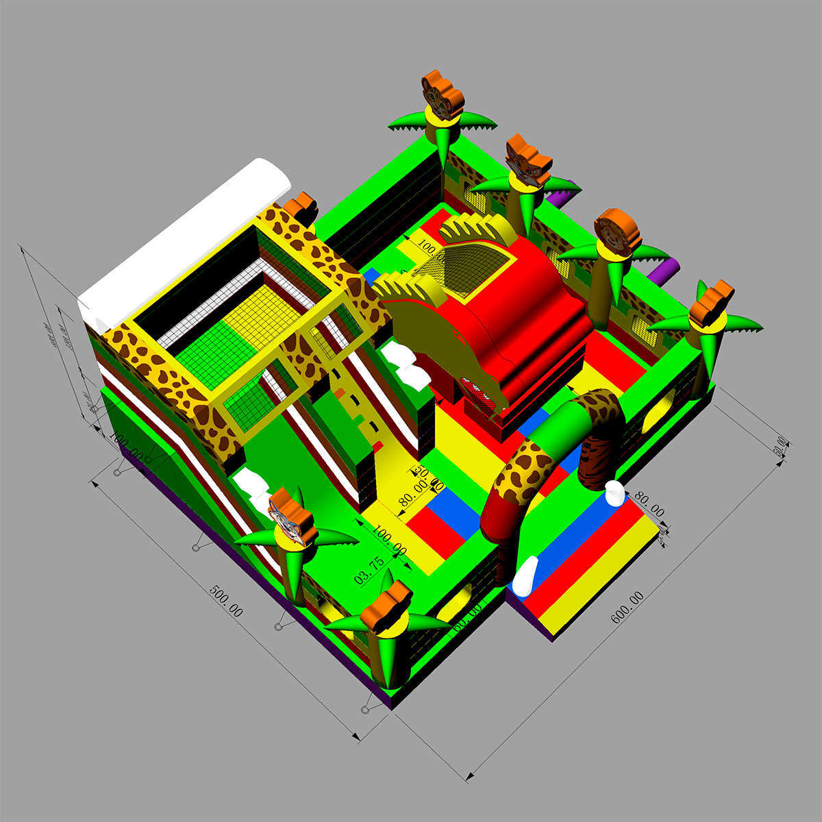 Размеры 6x5x4 м делают его универсальным для использования как на улице, так и в просторных помещениях. Надувной батут — это не просто развлечение, это полноценная игровая зона с прыжковыми площадками, горкой, препятствиями и декоративными фигурами.