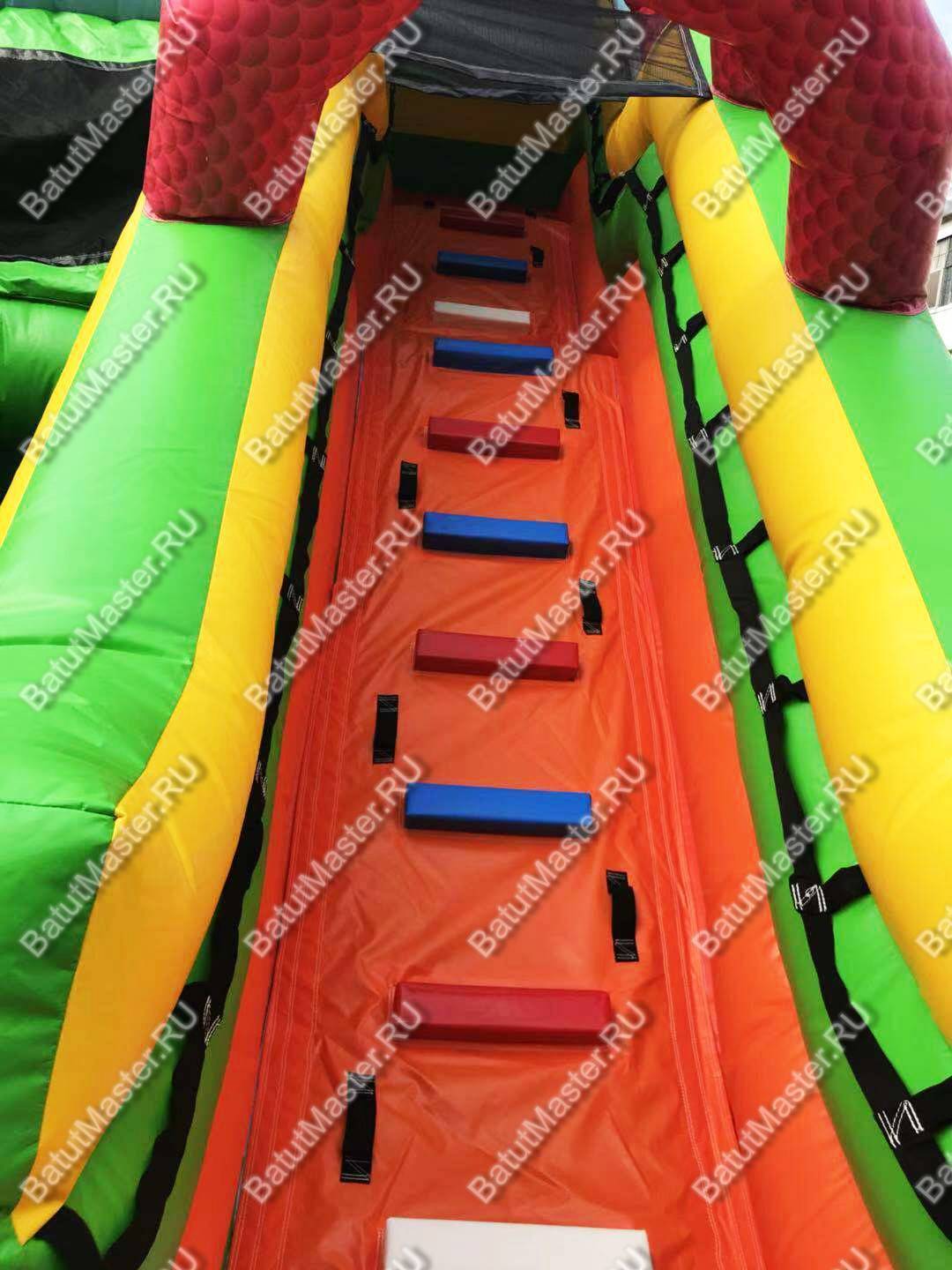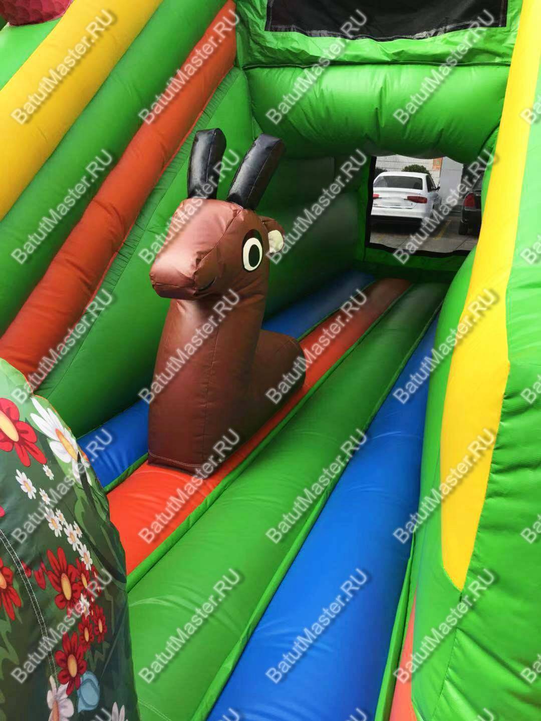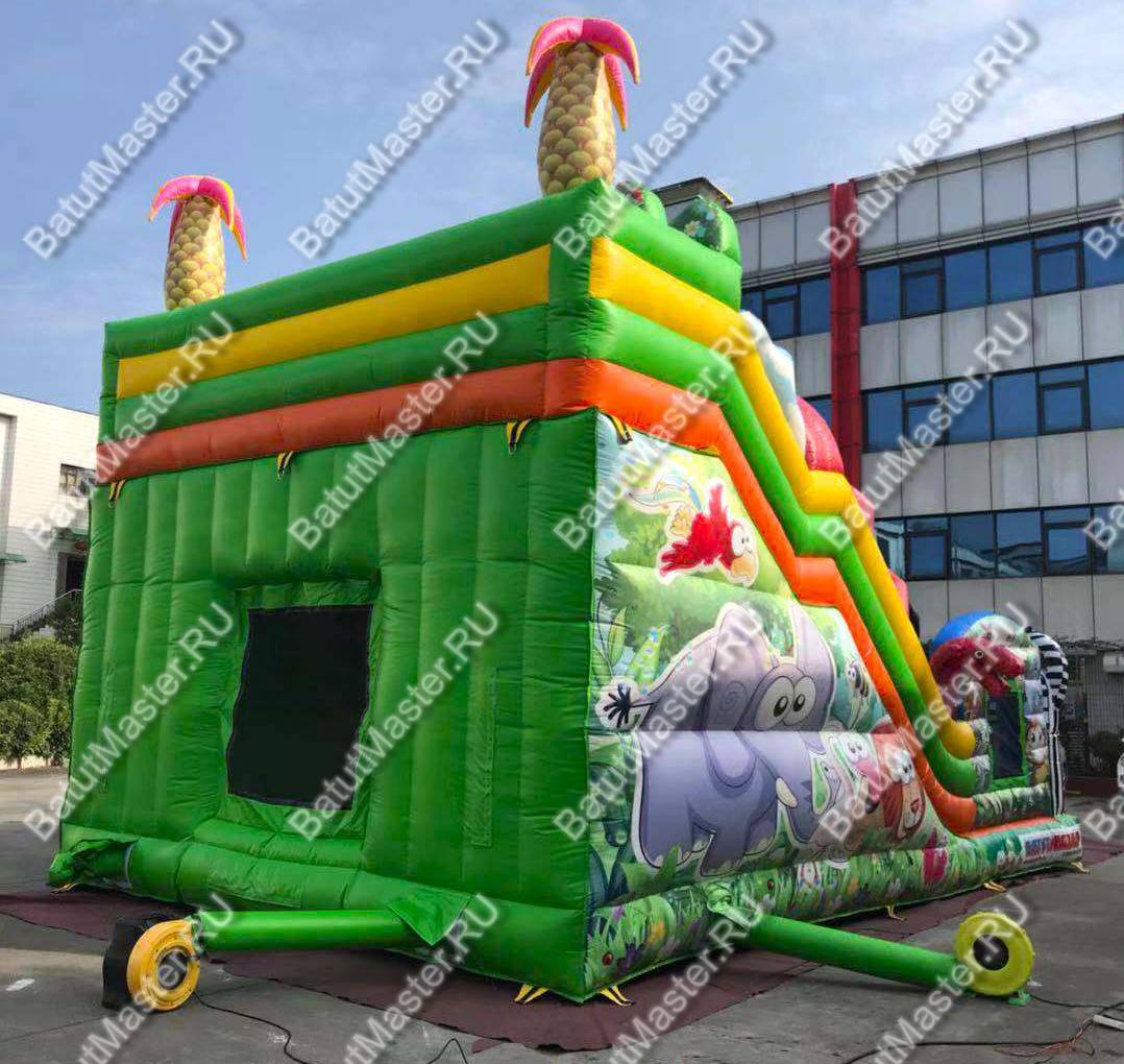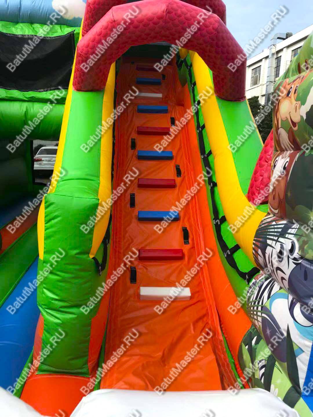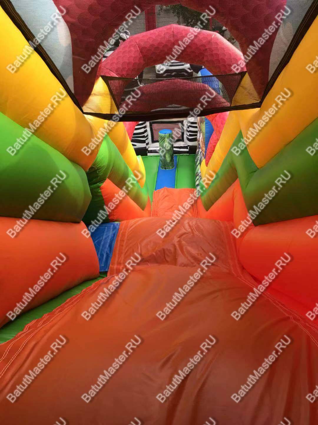 Добро пожаловать на веселую арену! Впереди детей ждет увлекательное и интересное времяпровождение в кругу зверей. Надувные жирафы, зебры, обезьяны, змеи и многие другие задают тематику надувного комплекса. Здесь имеются мягкие модули в виде колец, через которые так интересно пробираться дальше, большой спуск и безопасный подъем на него, окруженный мягкими бортами. Яркий, надувной батут станет любимым местом времяпровождения у детей в возрасте от трех лет. По бокам комплекса и сзади имеются окошки, а это значит, что родители смогут видеть своих детей во время игр. Также здесь имеется дополнительная зона для прыжков. Коммерческий батут не занимает много места при наличии самых интересных зон и локаций. Он с легкостью устанавливается на все виды ровной поверхности и даже на песок. Не выгорает на солнце и не портится при низкой температуре. Это отличный вариант для детской игровой площадки, а также развлекательной зоны на территории гостиницы или торгового центра.Предназначен для бизнеса. Качественный и прочный, выполнен из ламинированного ПВХ. Неприхотливый и простой в уходе и эксплуатации. Мощный насос, который входит в комплект обеспечивает бесперебойную его работу на протяжении долгого времени.