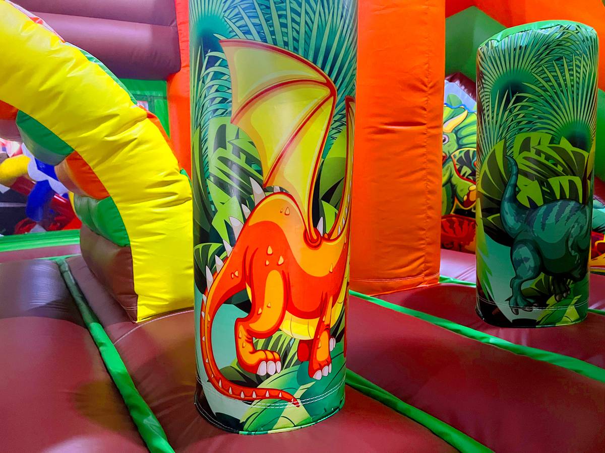 Одновременно может выдерживать вес до 300 кг. Конструкция аттракциона безопасна для маленьких посетителей, площадка обтянута сеткой. Открытая площадка «Дино-прыжок» подарит радость детям всех возрастов, и даже подростки оценят надувной батут.