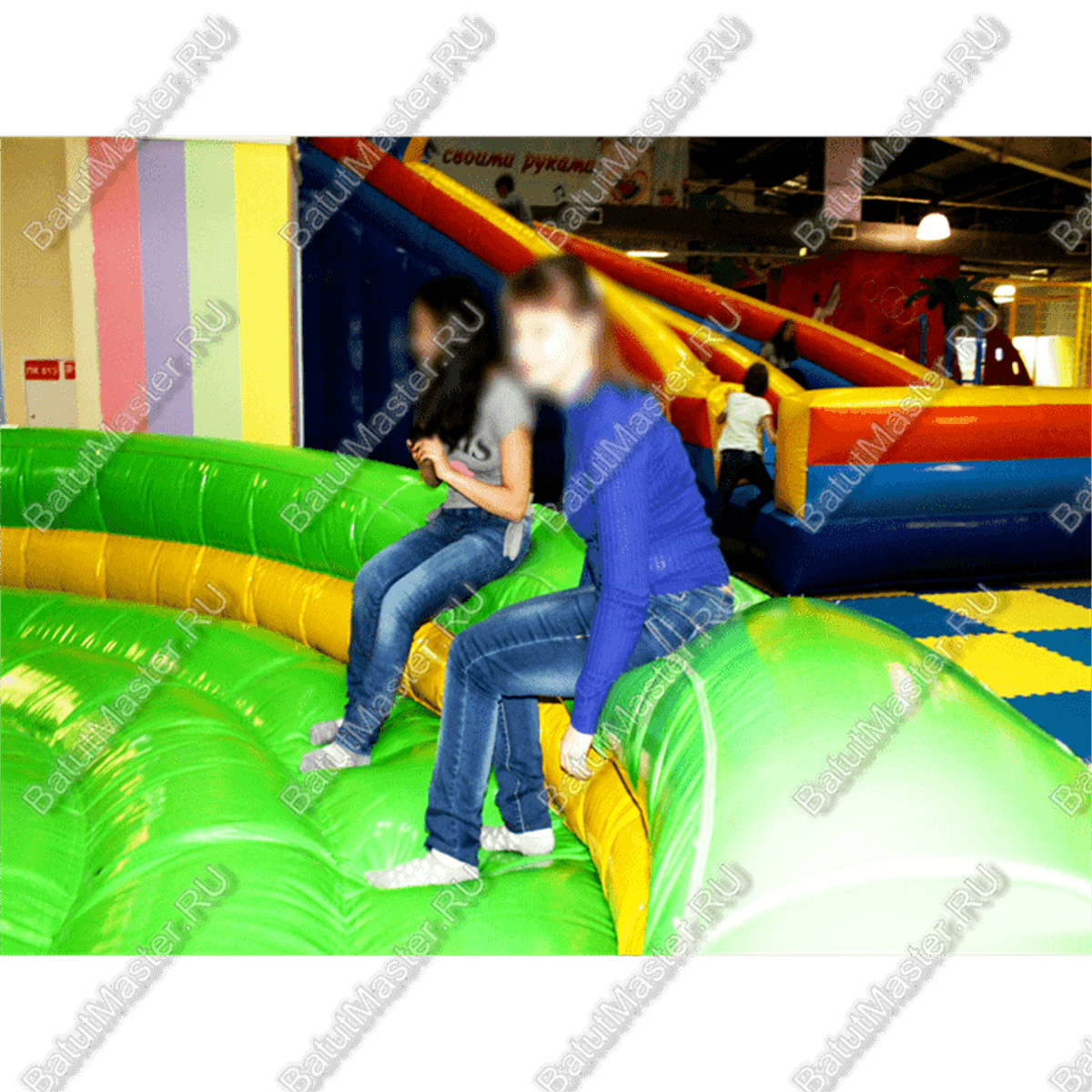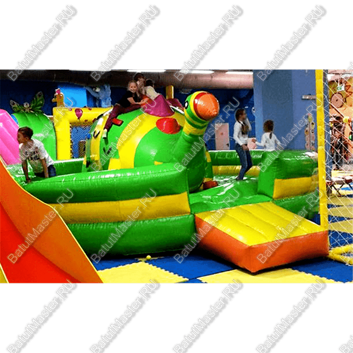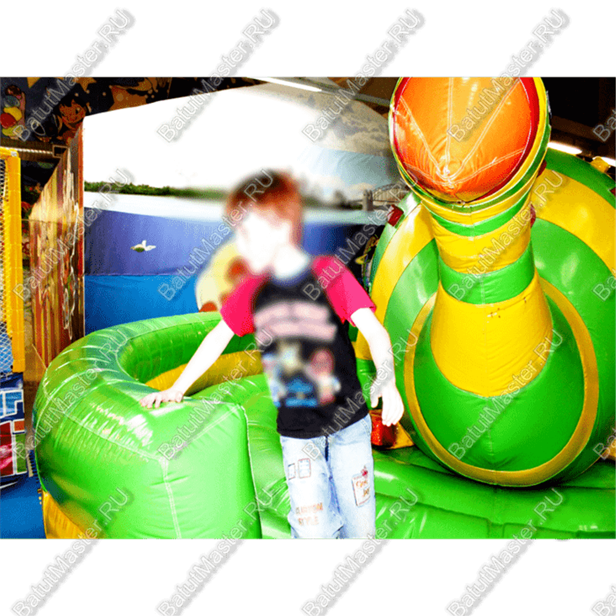 Основные цвета зеленый и желтый, так приятны для глаз. Подходит для бизнеса. Выполнен из качественного ламинированного ПВХ, который устойчив к солнечным лучам, не выгорает, поэтому может быть установлен на улице без дополнительного навеса. Также комплекс хорошо переносит низкую температуру. Как нельзя лучше дополнит игровую детскую зону в торгово-развлекательном комплексе, гостинице и даже на пляже. За счет компактного размера и главного интересного модуля в виде динозавра привлечет детей разных возрастов.