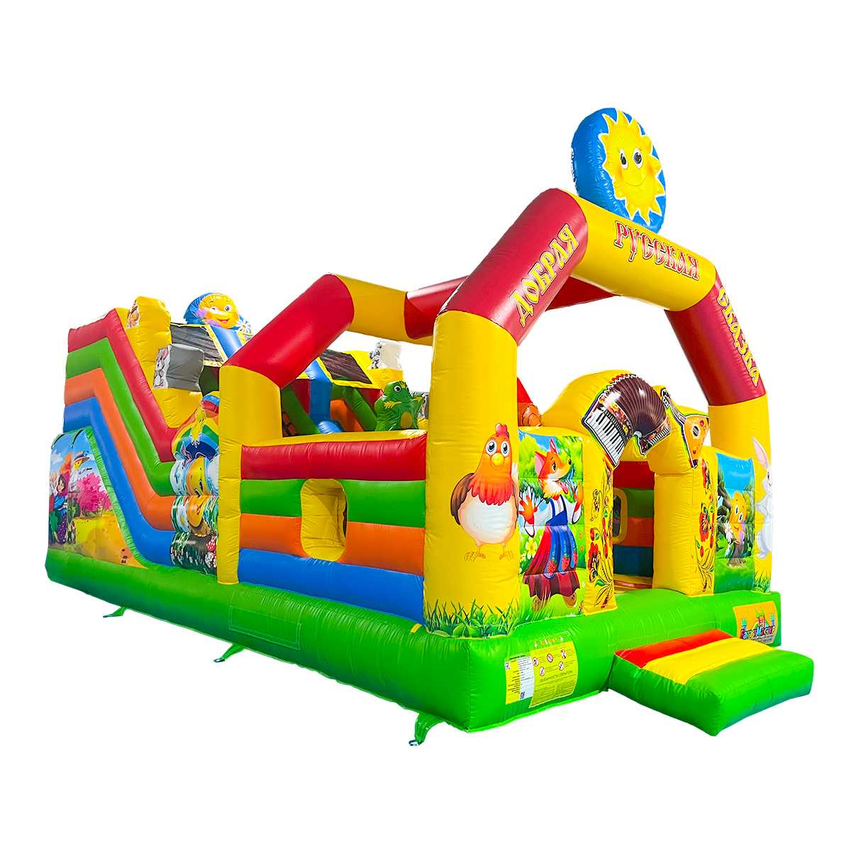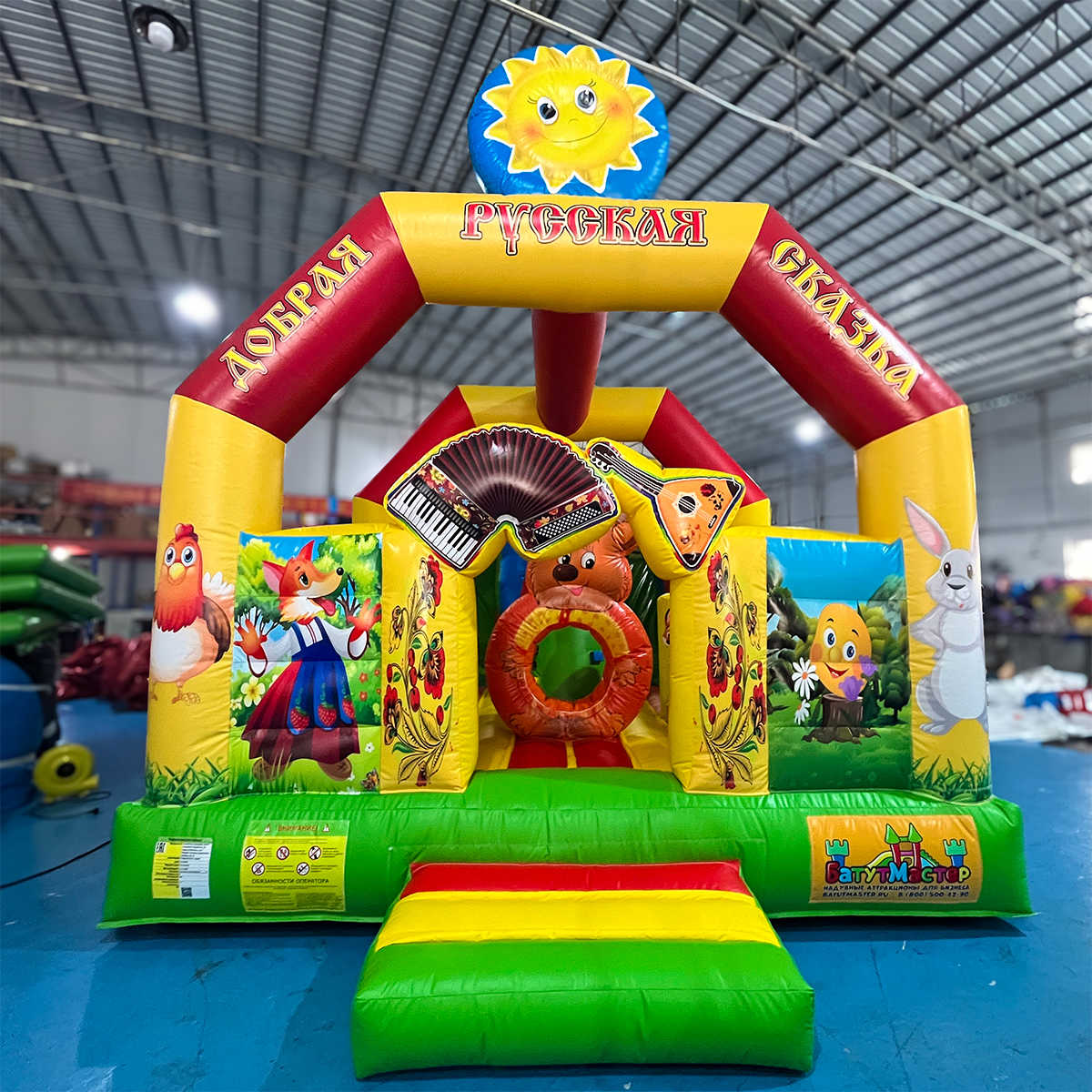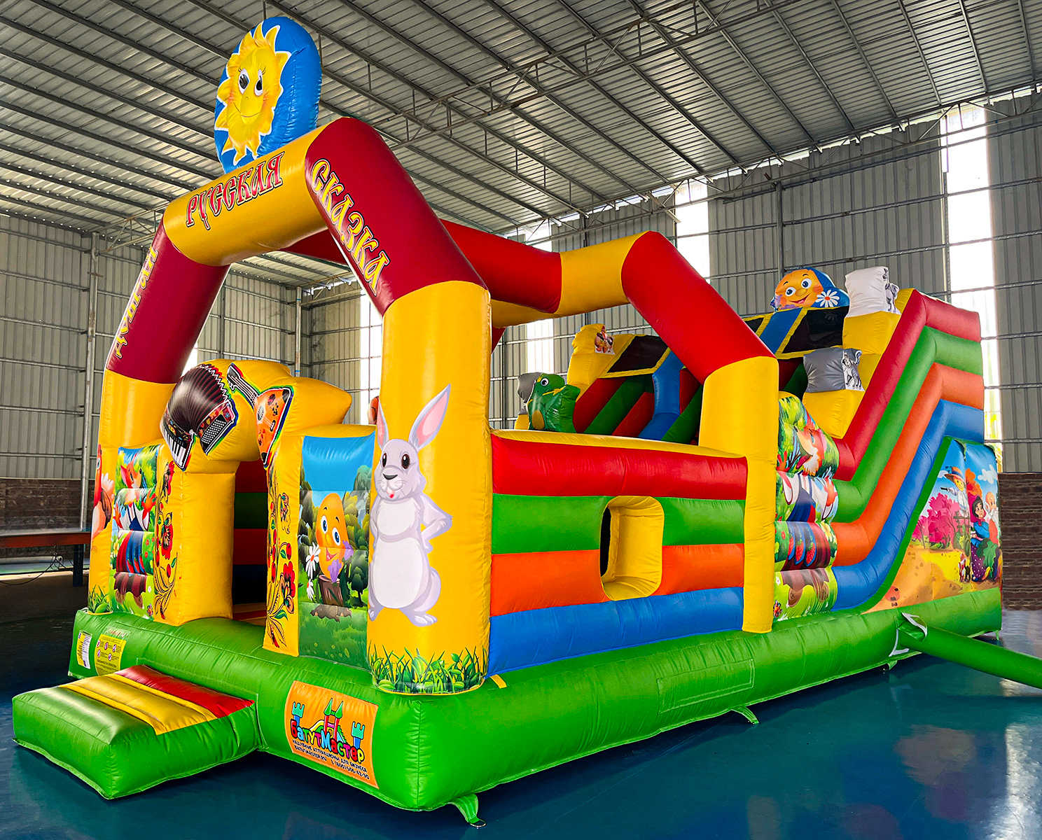 Сказочный батут «Добрая русская сказка 3» — это не просто аттракцион, а целый игровой мир, в который хочется возвращаться снова и снова. Вдохновлённый атмосферой народных сказок, он притягивает взгляды детей и родителей, моментально вызывая интерес. Изображения сказочных персонажей, декоративные арки, деревья и добродушные мишки создают впечатление настоящего приключения. Он отлично подойдёт для мероприятий с патриотическим, культурным или праздничным уклоном.