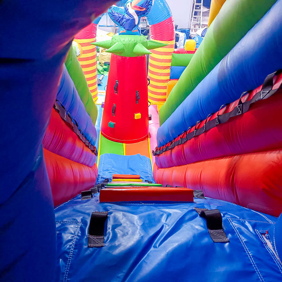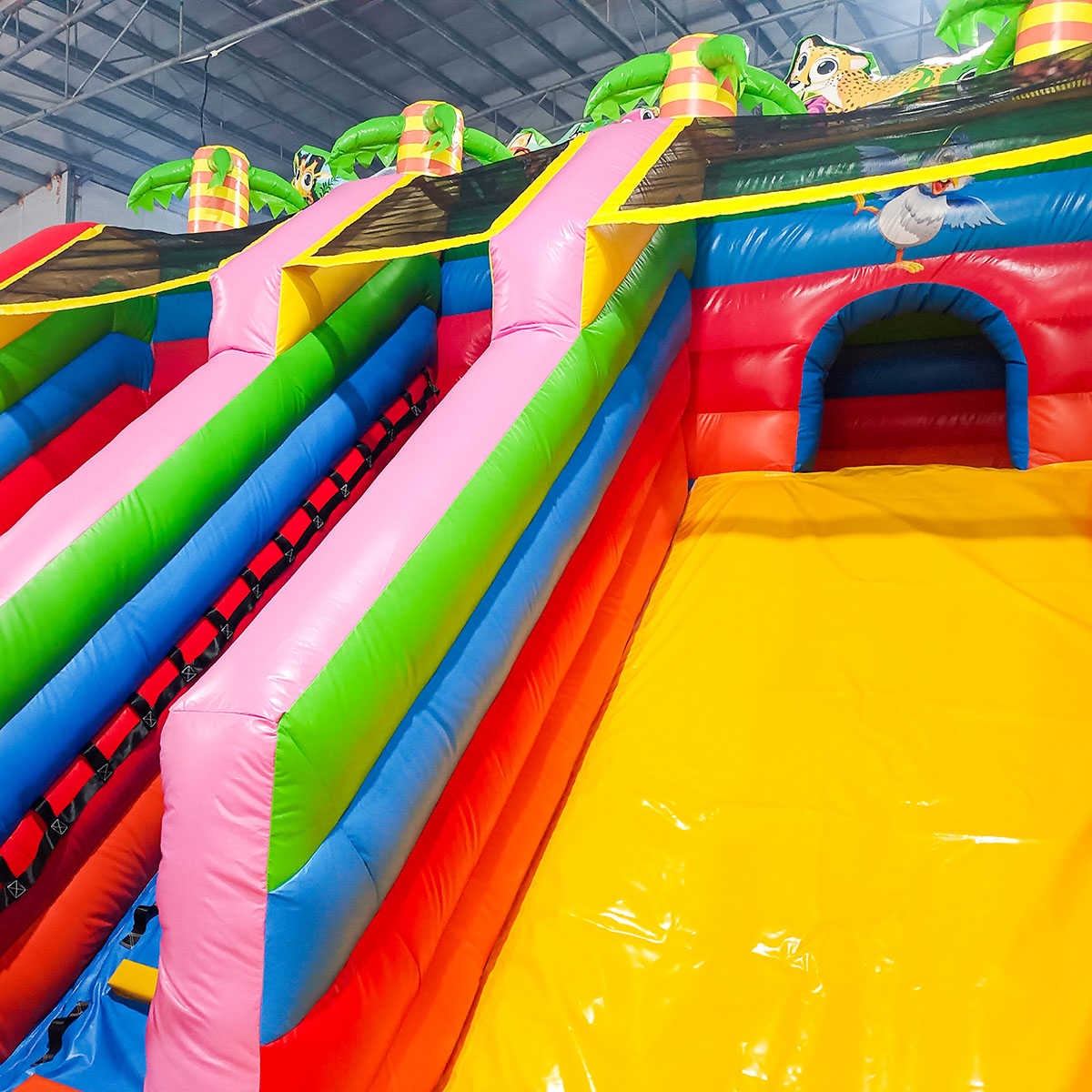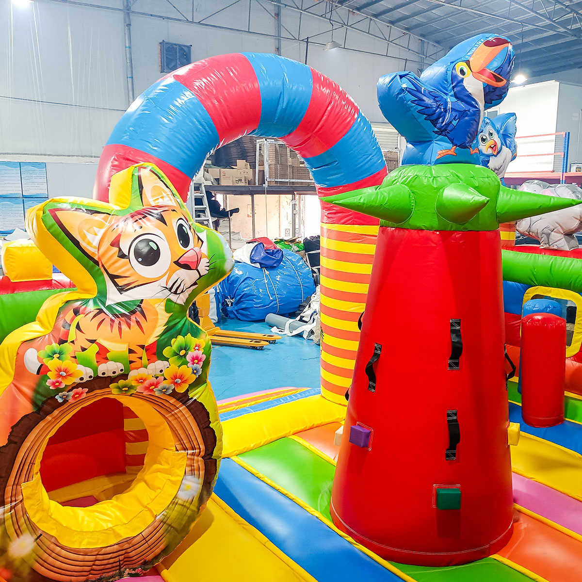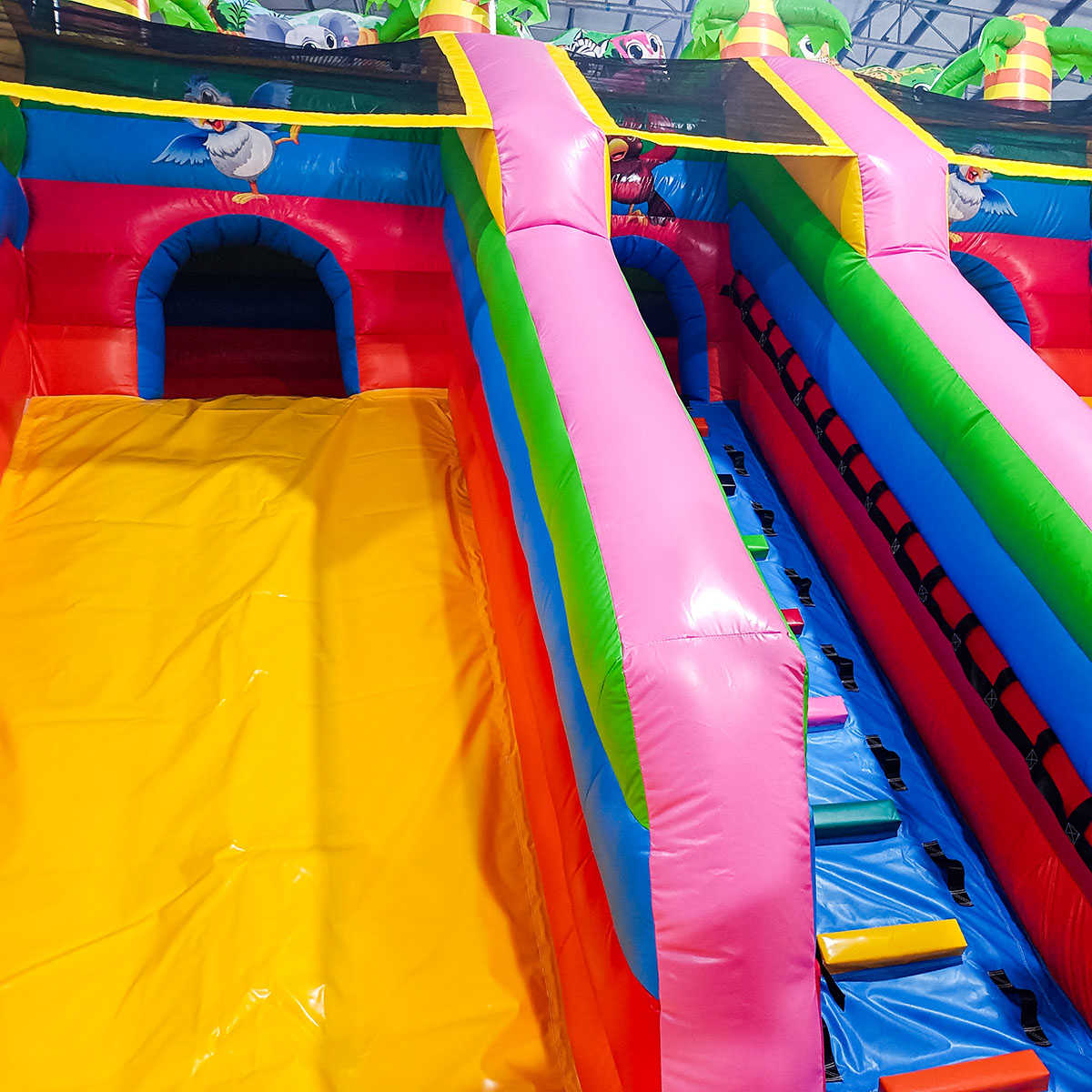 В качестве основы для изготовления таких изделий используется качественный нетоксичный поливинилхлорид. Благодаря этому коммерческий надувной батут для бизнеса служит долго и не растягивается. Аттракцион оснащен скалодромом, горкой и удобным подъемом. Здесь достаточное поле для прыжков и бега, а также на нем можно выполнять различные акробатические элементы. Боковые окошки из прочной сетки позволяют все время оставаться детям на виду у своих родителей. Для бизнеса - это хороший инструмент.