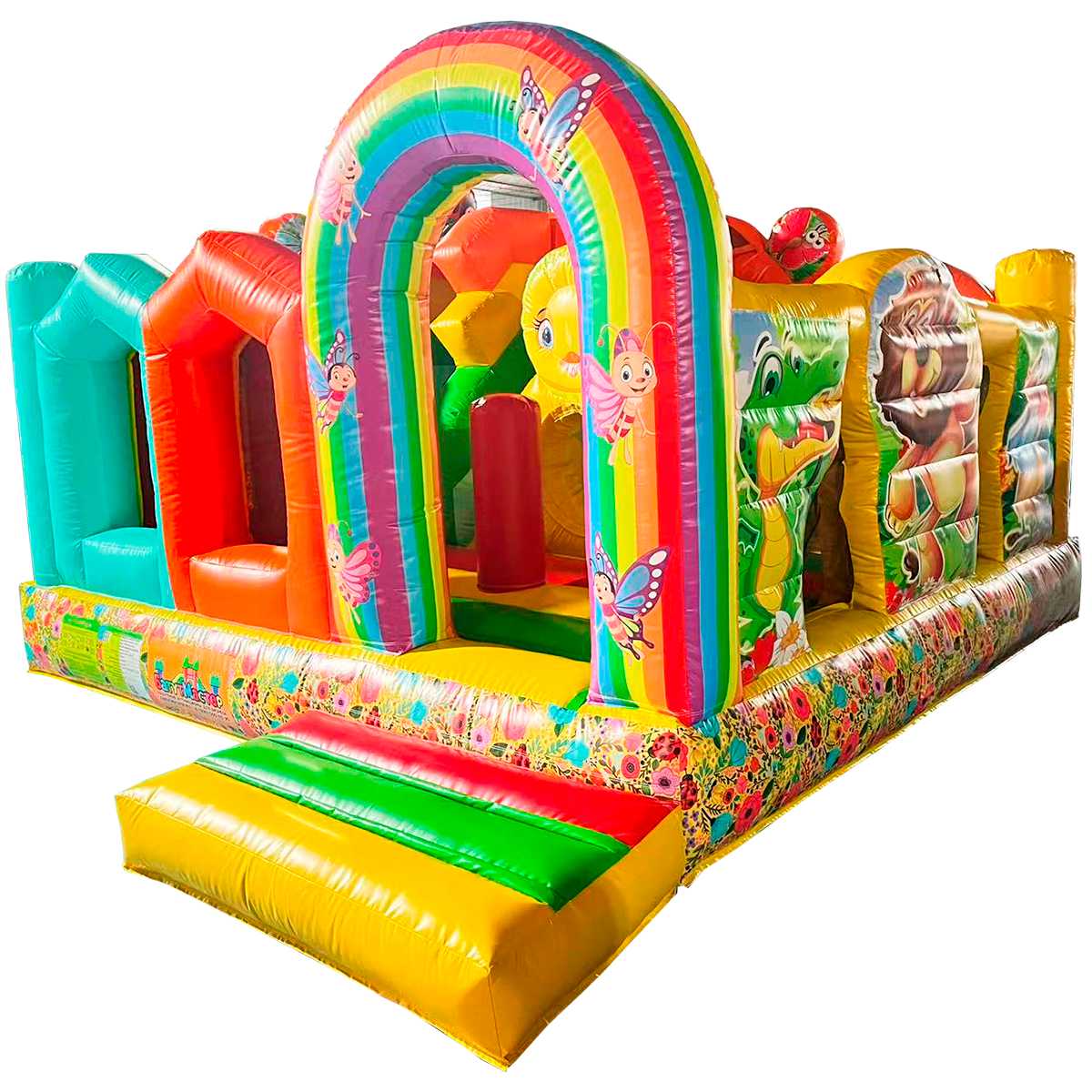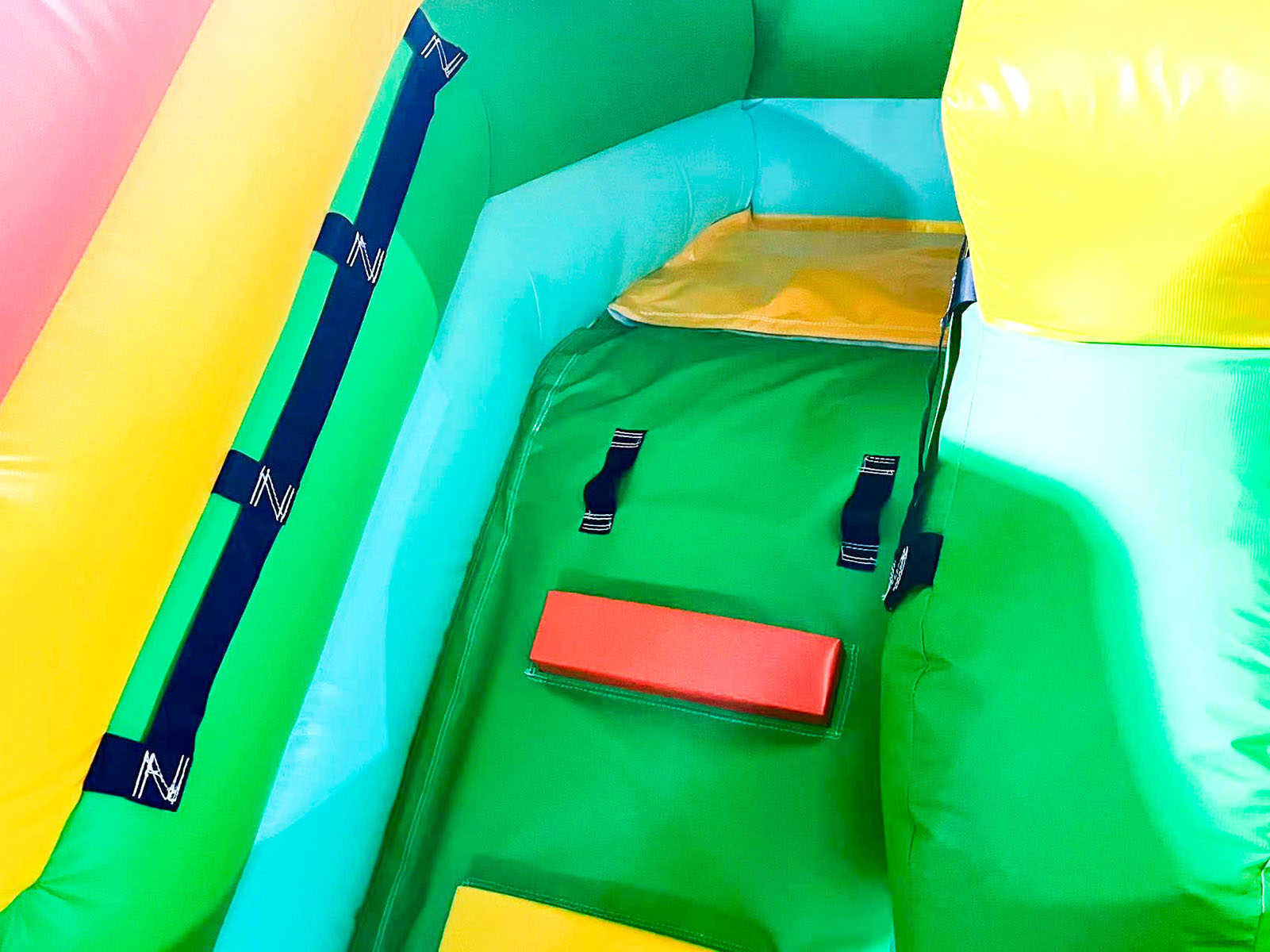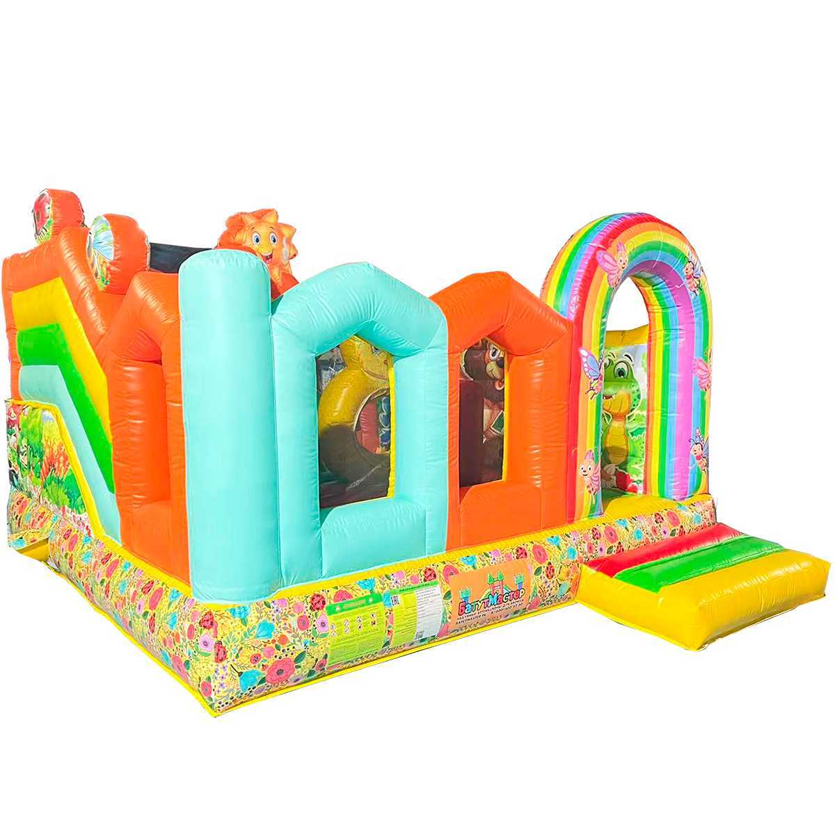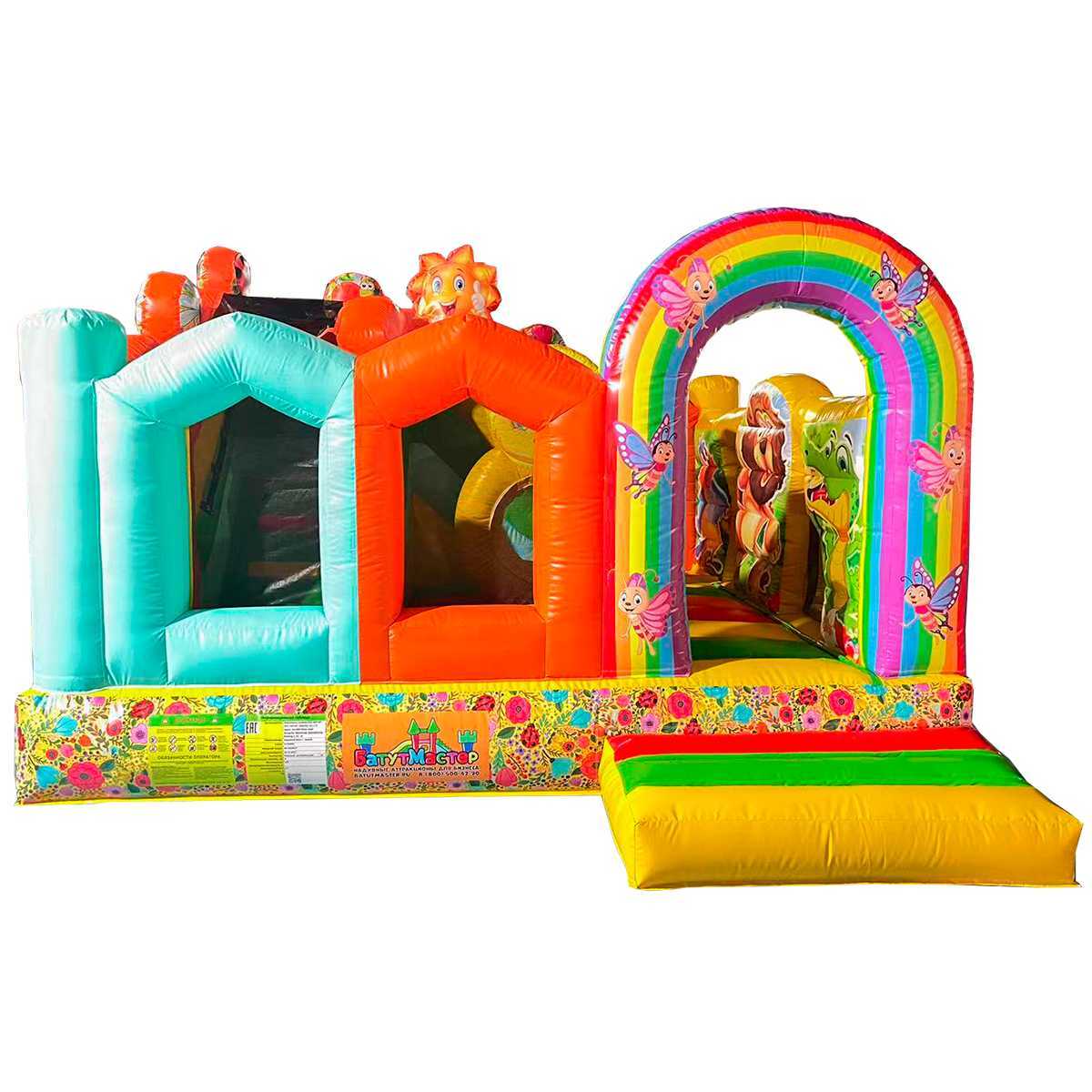 Спускаясь с горки, дети приземляться на просторное прыжковое поле. Здесь можно отталкиваться от надувных стенок, подлетать вверх, кувыркаться и придумывать различные игры. Для того, чтобы забраться наверх, им необходимо будет преодолеть мягкие удобные ступеньки, по которым следует двигаться на четвереньках, и при этом приложить не мало усилий. Это очень полезно для развития физических показателей у детей.