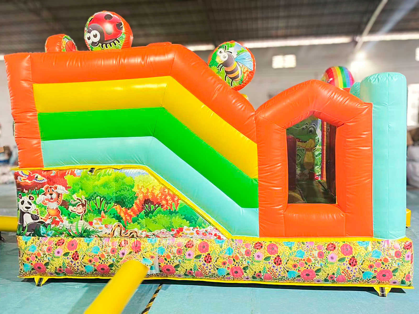 Играть, резвиться и прыгать дружной компанией дети смогут на горке «Друзья-зверята». Несмотря на то, что аттракцион небольшого размера, он довольно функциональный. По всему периметру он защищен надувными стенками с небольшими окошками из прочной сетки. Таким образом, юные непоседы могут видеть своих родителей и не бояться там находиться.