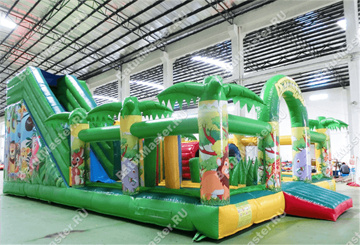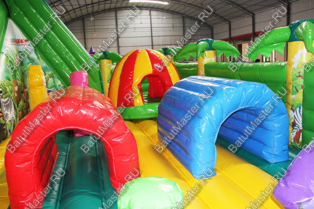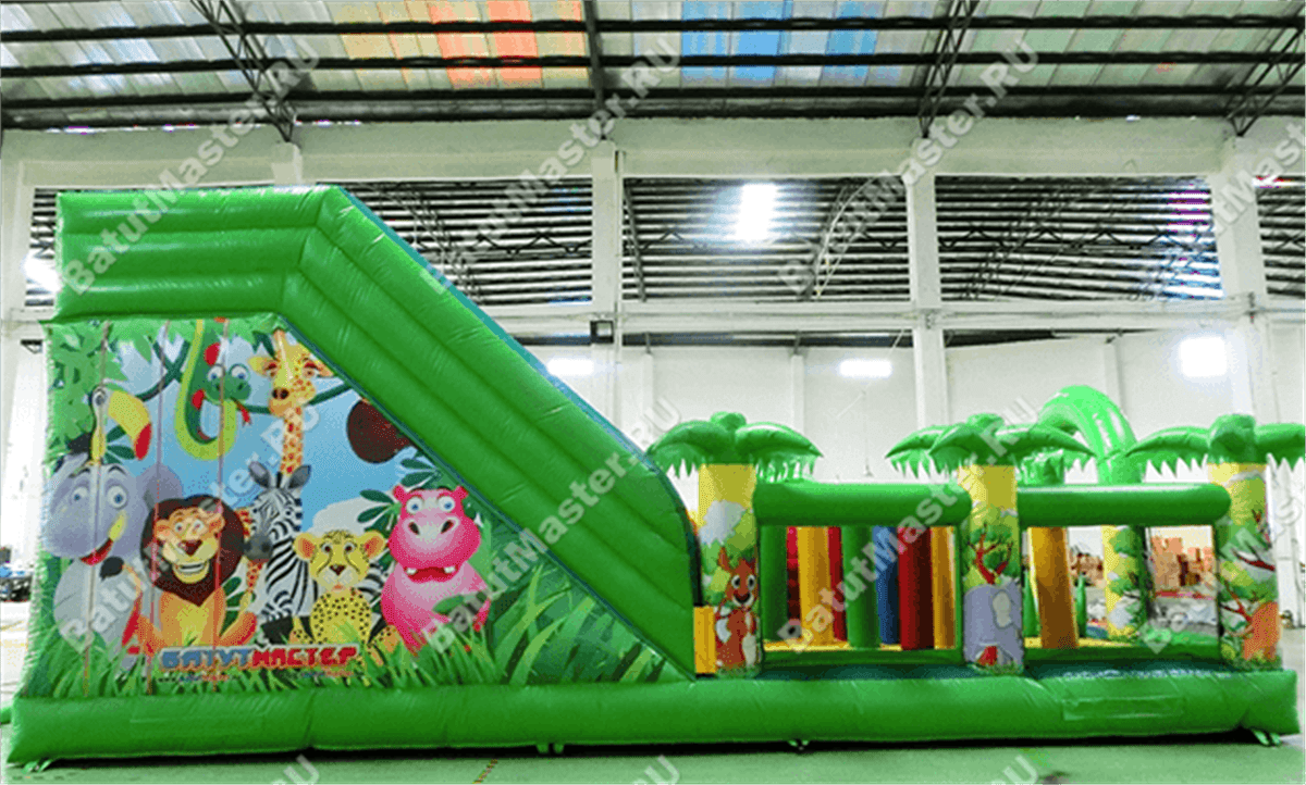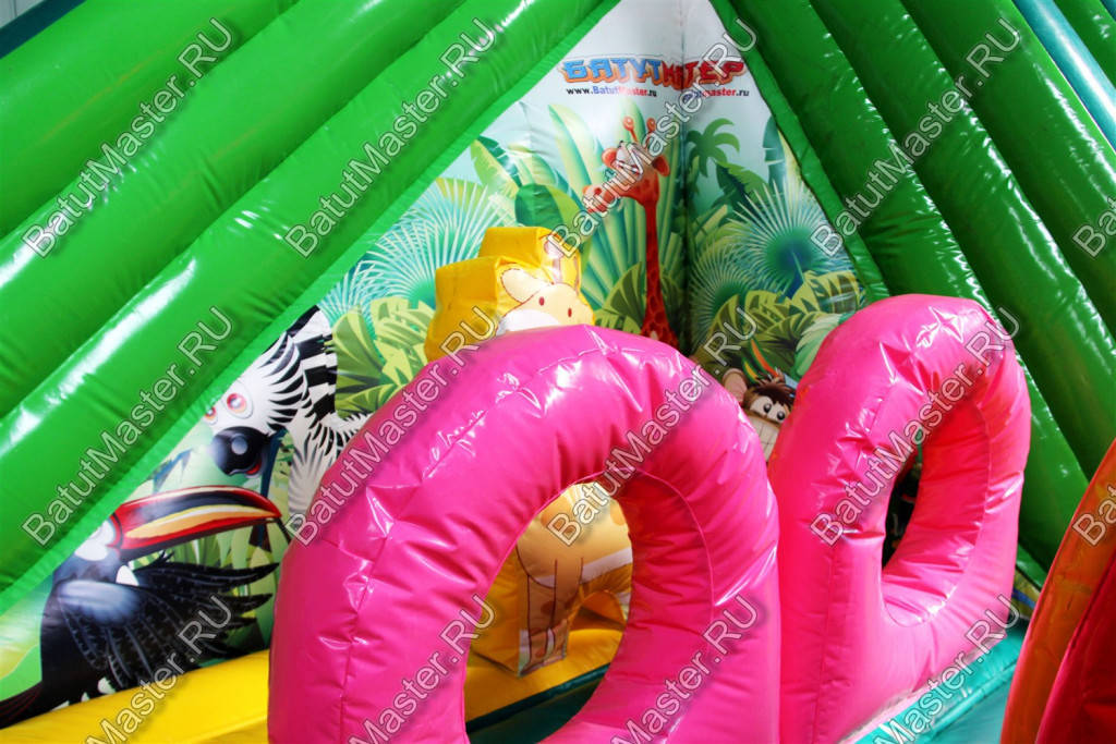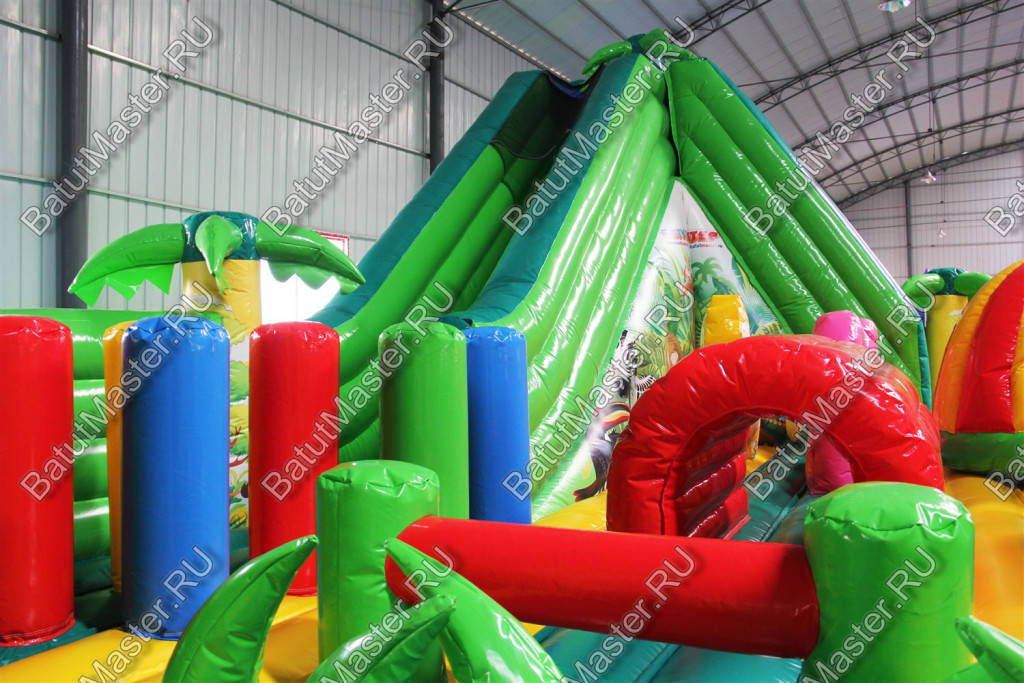 Тут много игровых фигур и стильных снарядов, есть препятствия и горка, а приятный дизайн и оформление в стиле джунглей перенесут гостей в густые тропические леса Африки – настоящий оазис среди пустыни. О качестве рисунков можно не беспокоиться – яркая принт-краска прослужит долгое время, не потеряв былого блеска и красоты.