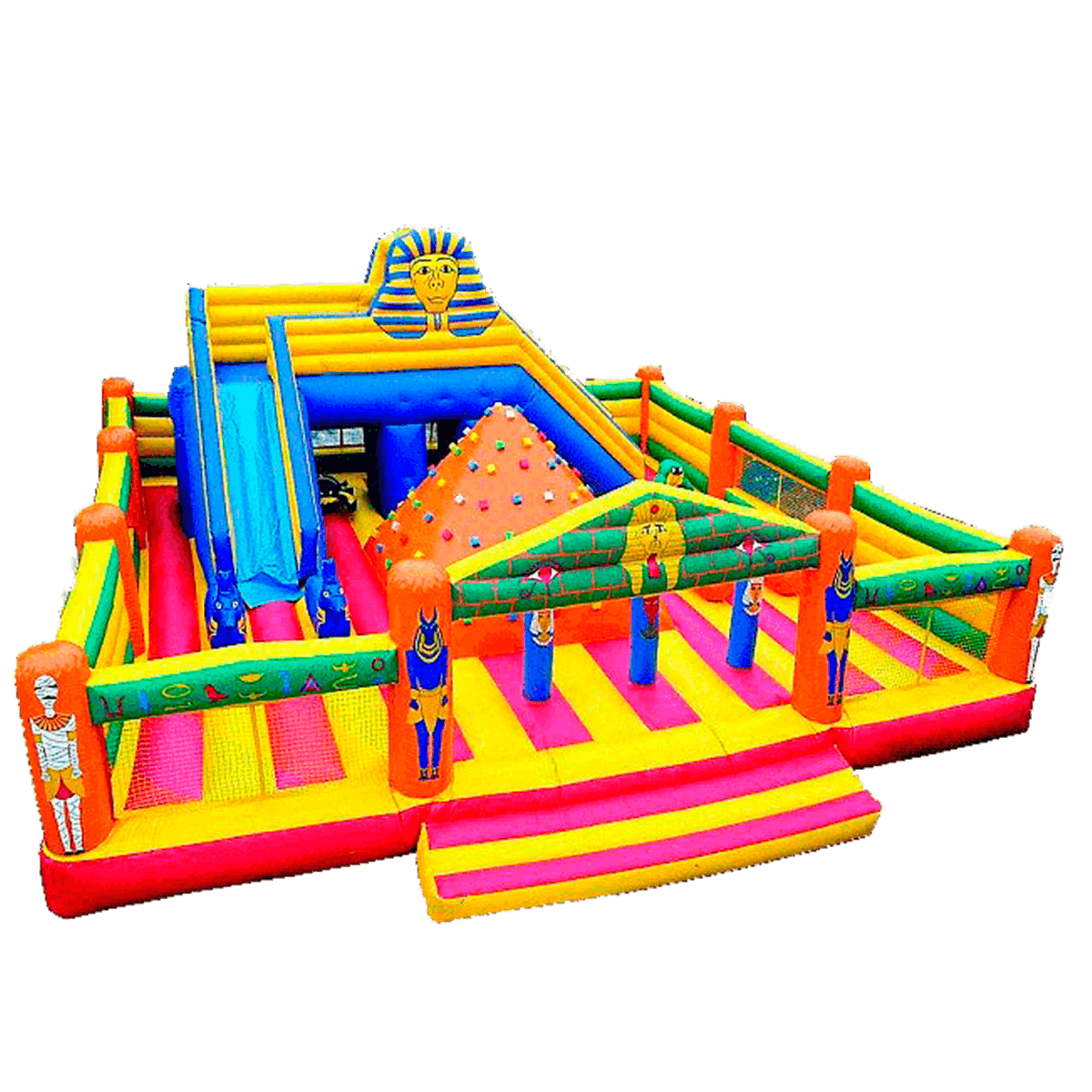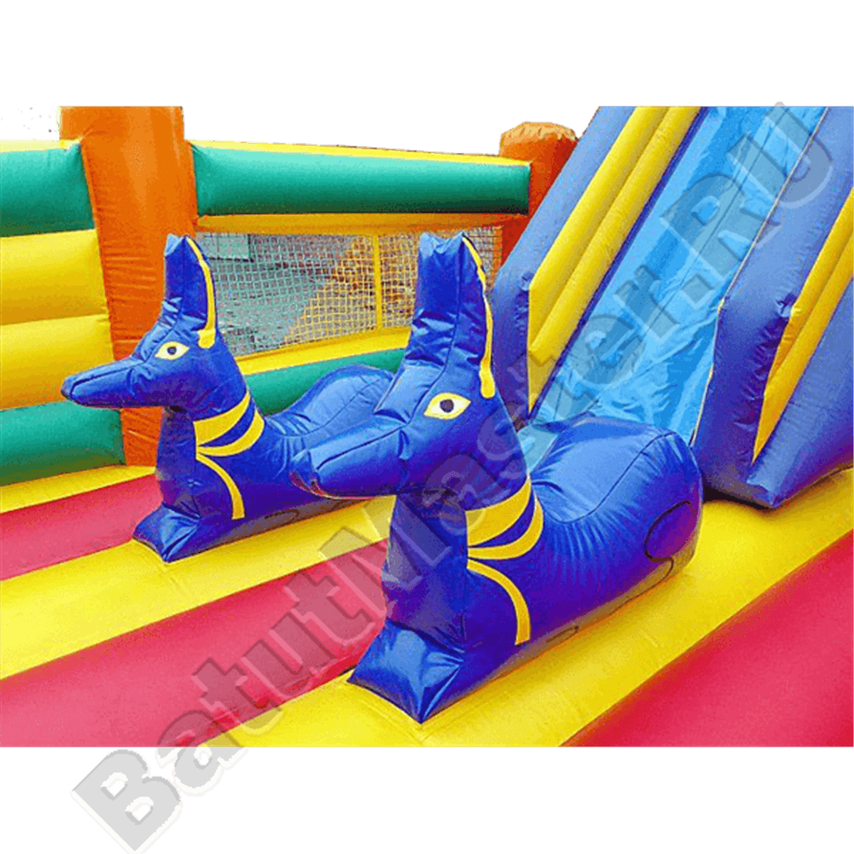Массивный надувной комплекс «Египет» представляет собой красочный батут, оформленный в стиле фараонов. Надувные сфинксы и верблюды, фигурки в форме змей и скорпионов, изображения фараонов и пирамид перенесут маленьких пользователей в Египет.