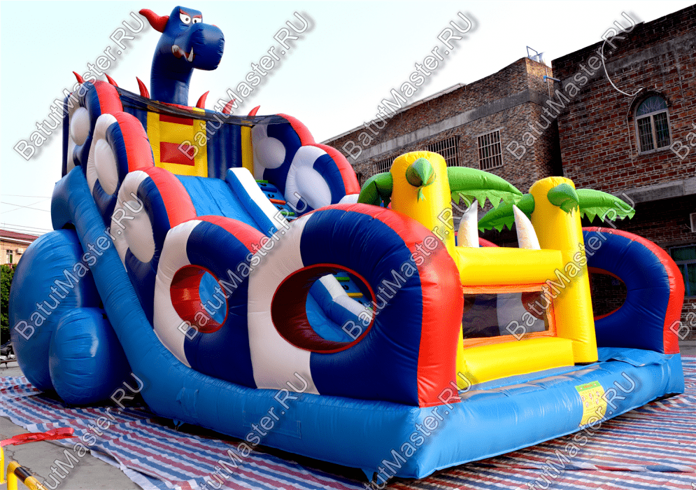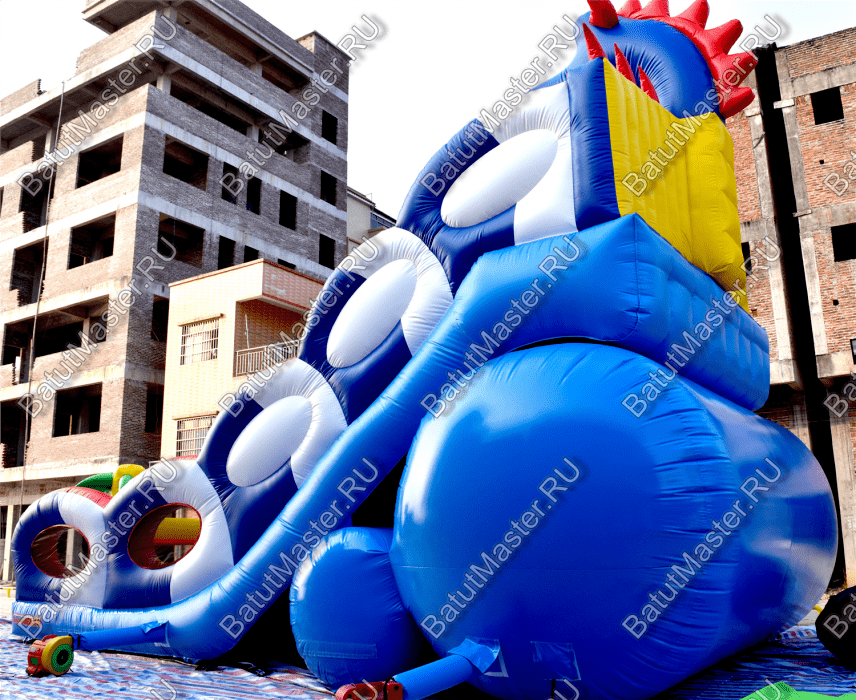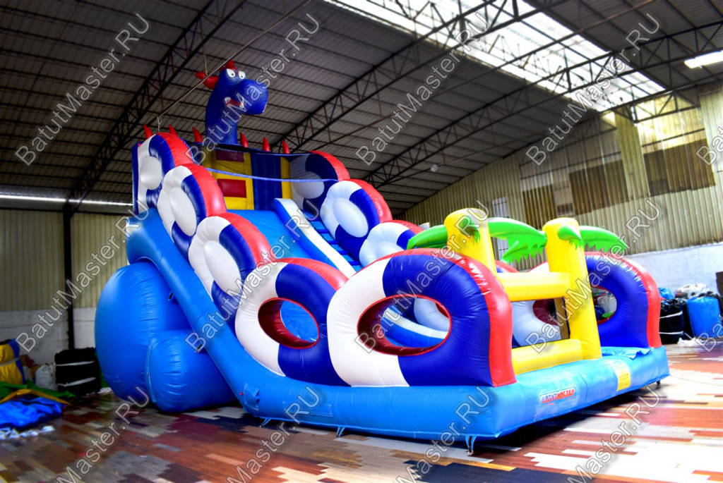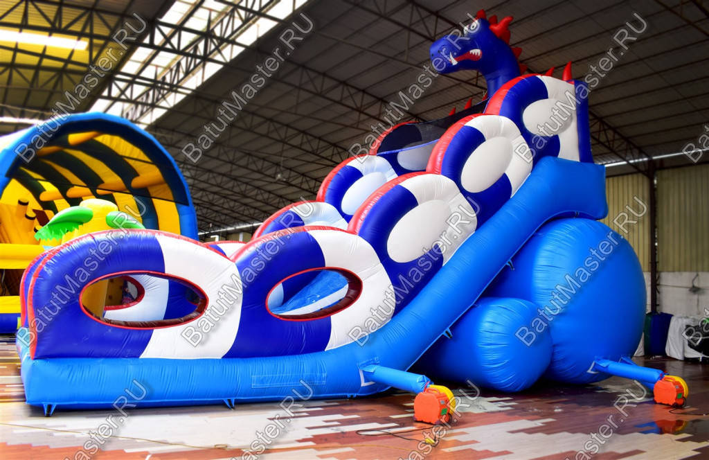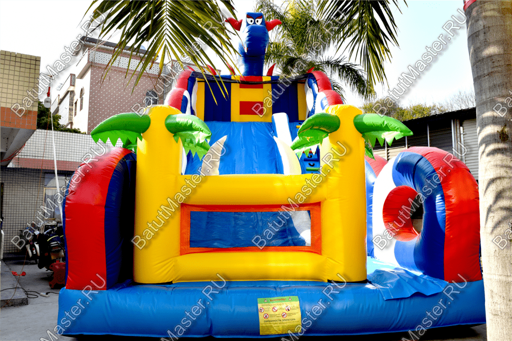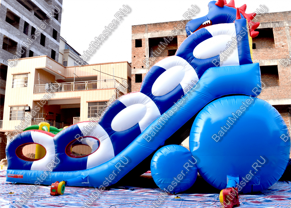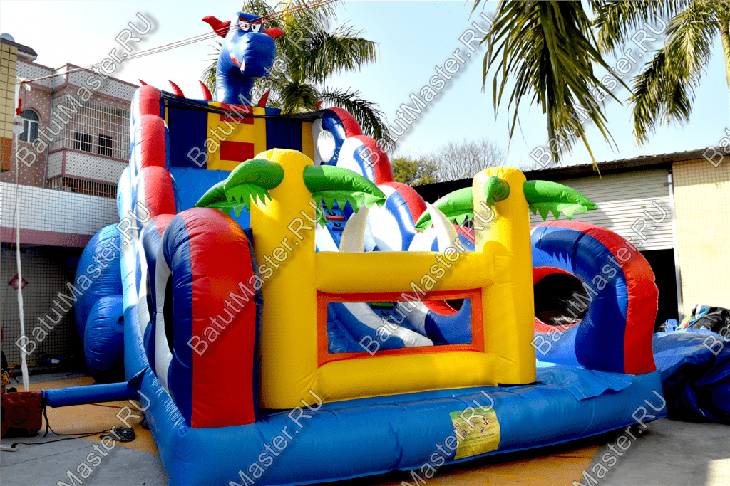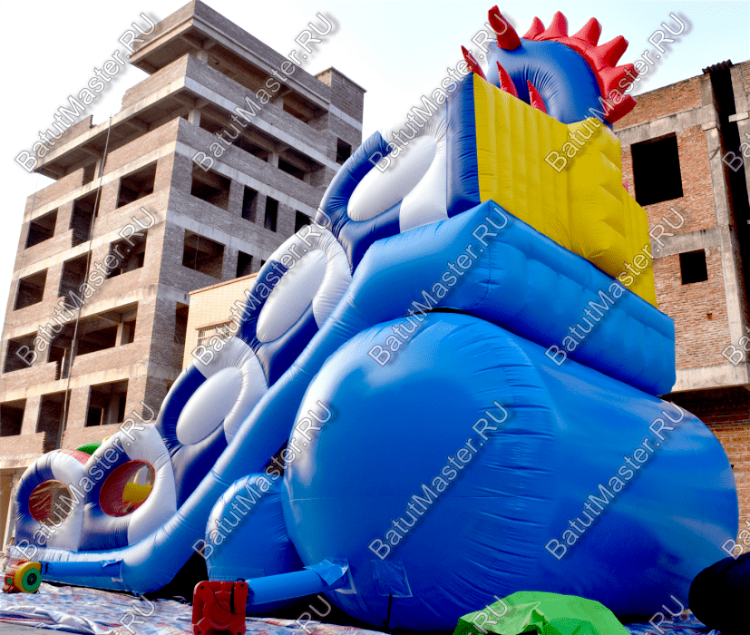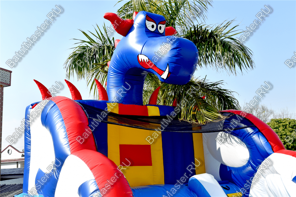 Играть, резвиться, прыгать и получать незабываемые эмоции дети смогут на горке «Дракон 2». Она большая, яркая и функциональная. Украшением горки является забавный синий дракон, расположенный сверху. Он привлечет внимание детей издалека.