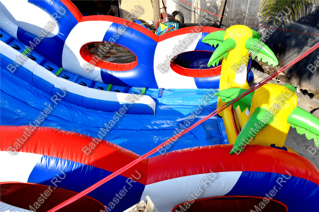 Коммерческий батут-горка выполнена из особо прочного, ламинированного поливинилхлорида. Такой материал не боится солнечных лучей и минусовой температуры, не растягивается и не трескается. Горка рассчитана на длительную и интенсивную эксплуатацию.