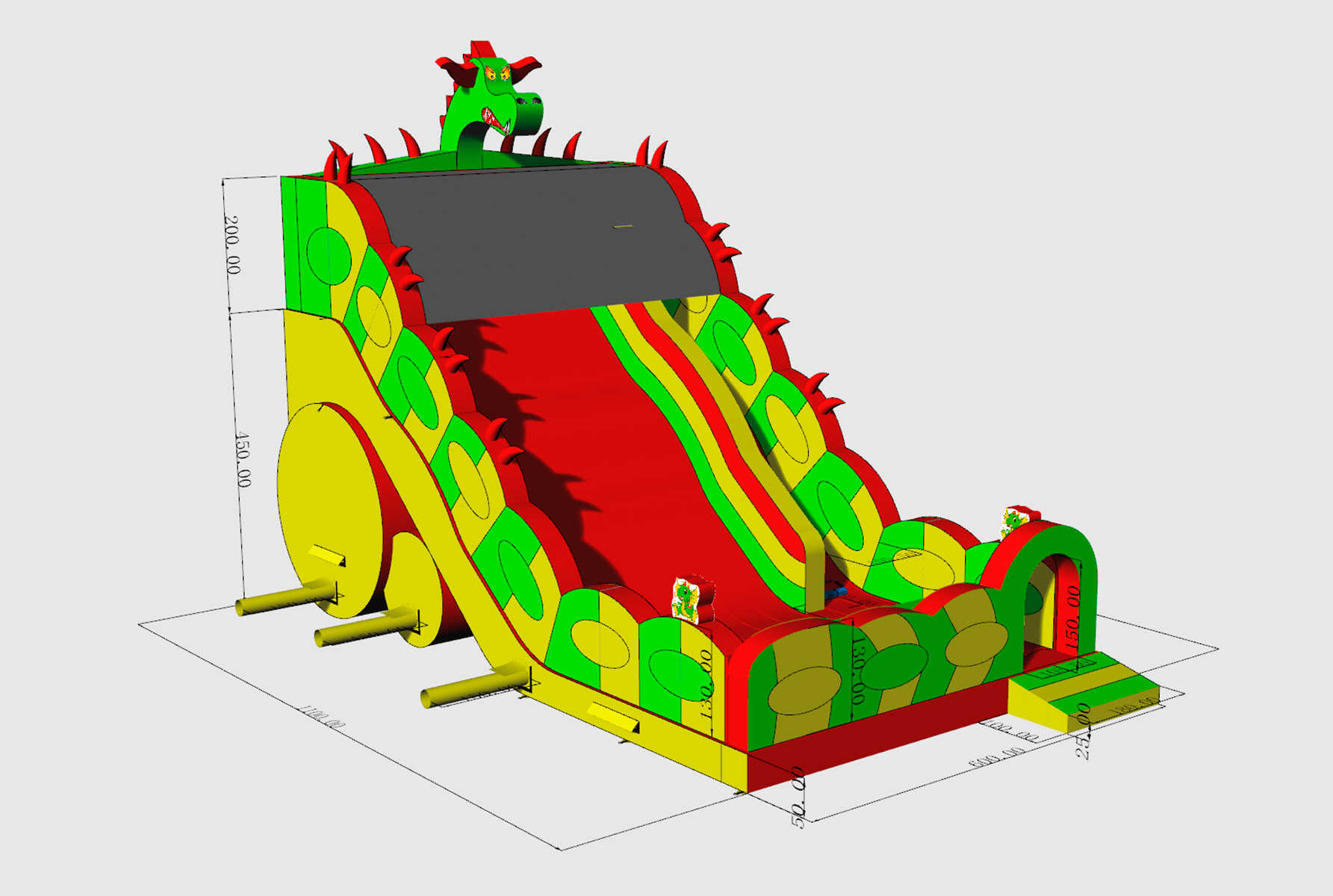 «Дракон» — один из самых ярких и популярных надувных батутов-горок, созданных специально для коммерческого использования. Его внушительные размеры 11x6x8 метров, стильный и продуманный до мелочей дизайн с элементами мифических драконов мгновенно привлекают внимание и выделяют его среди других аттракционов.