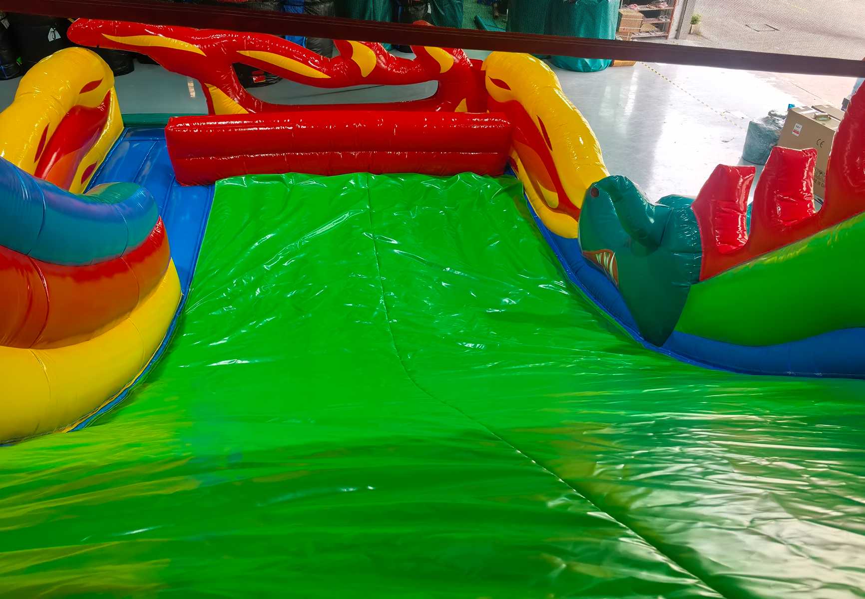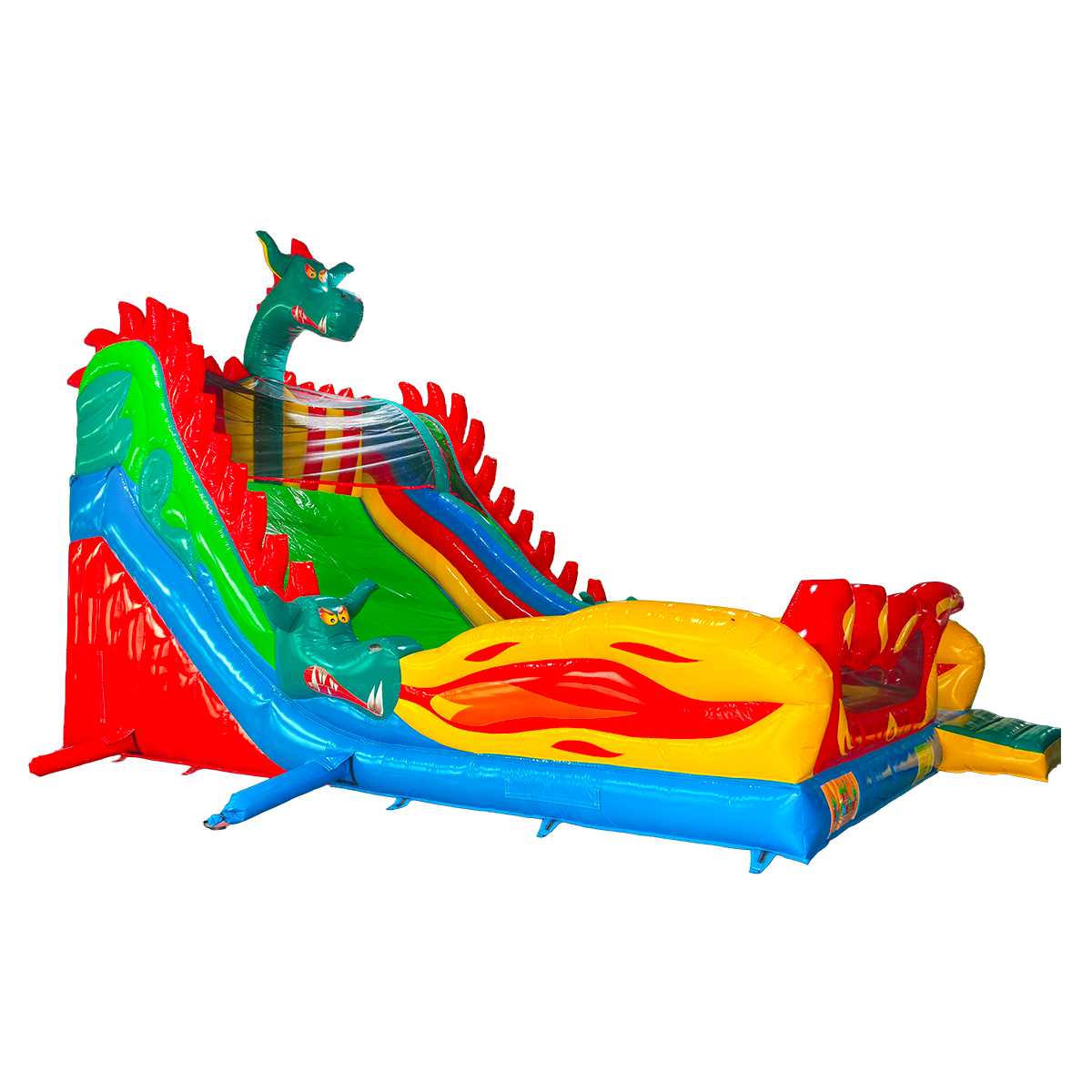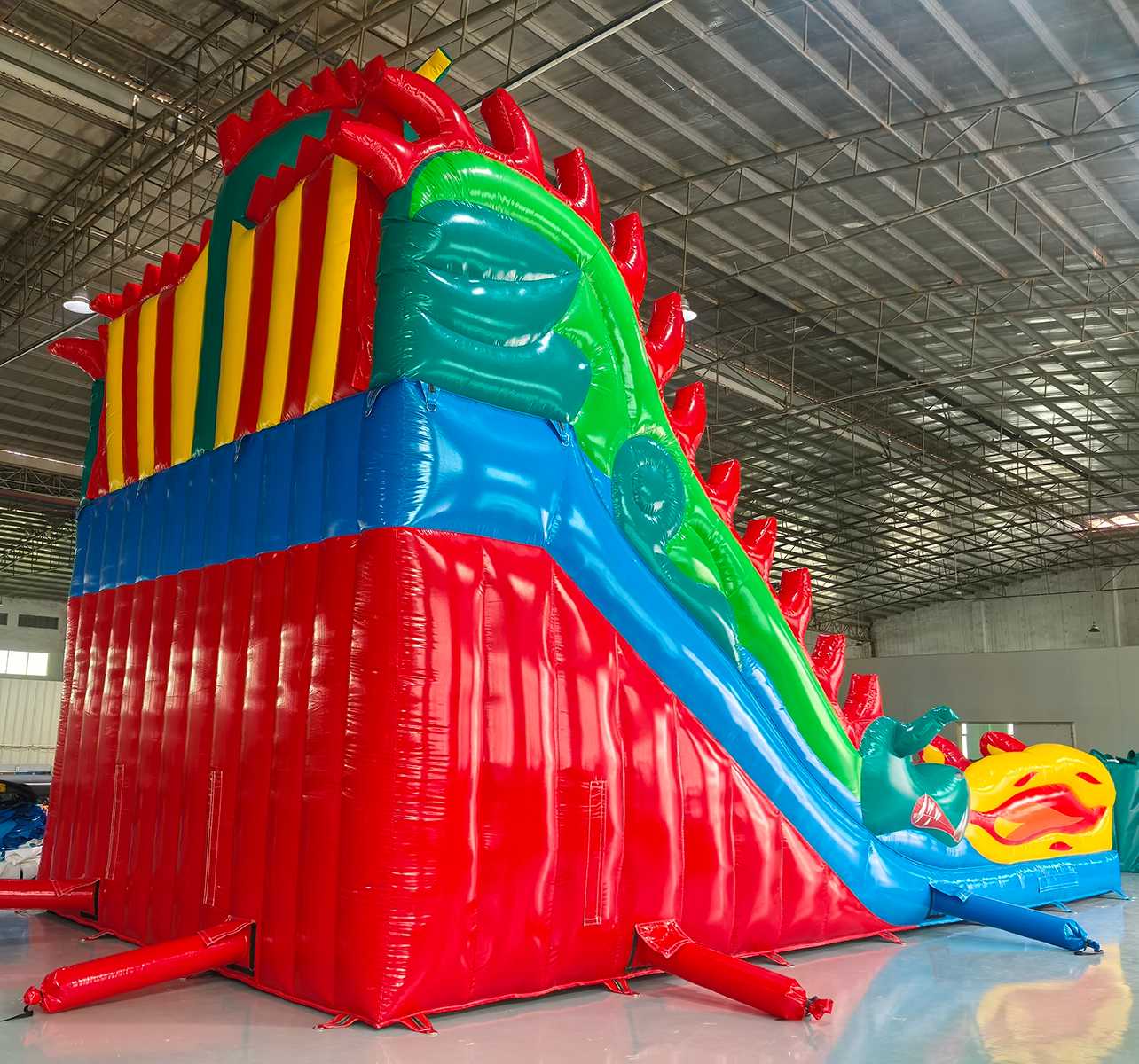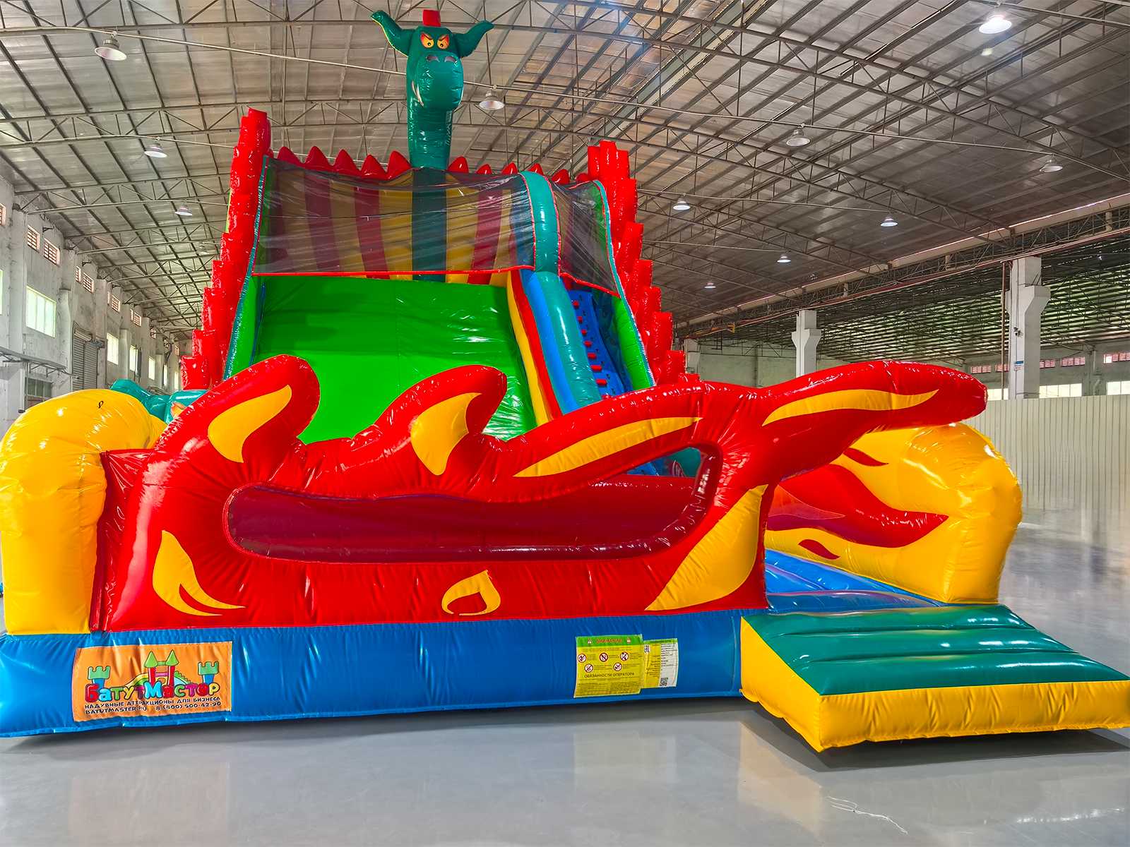 Надувной батут-горка «Огненный дракон» — это мощный визуальный и функциональный центр любой развлекательной площадки. Благодаря выразительному дизайну в стиле пылающего дракона и габаритам 11x6x8.5 метра, этот батут буквально приковывает внимание и заставляет сердца детей биться чаще.