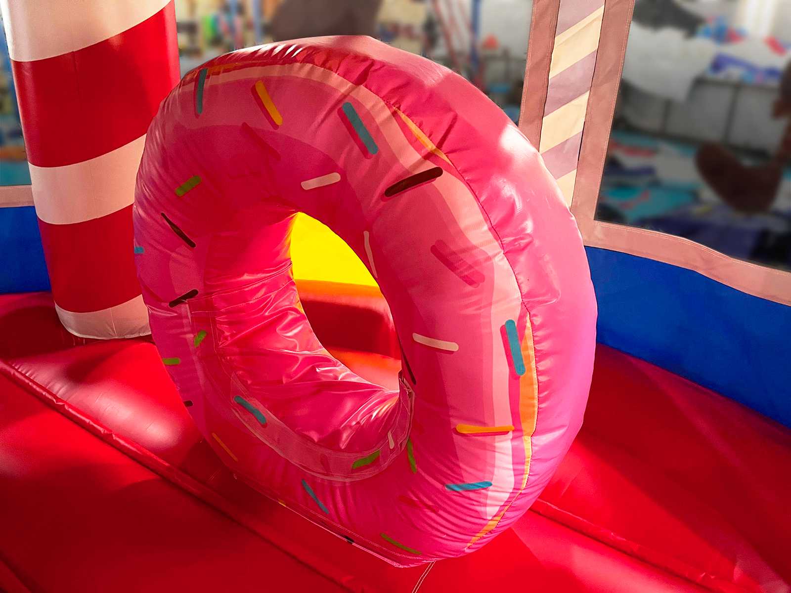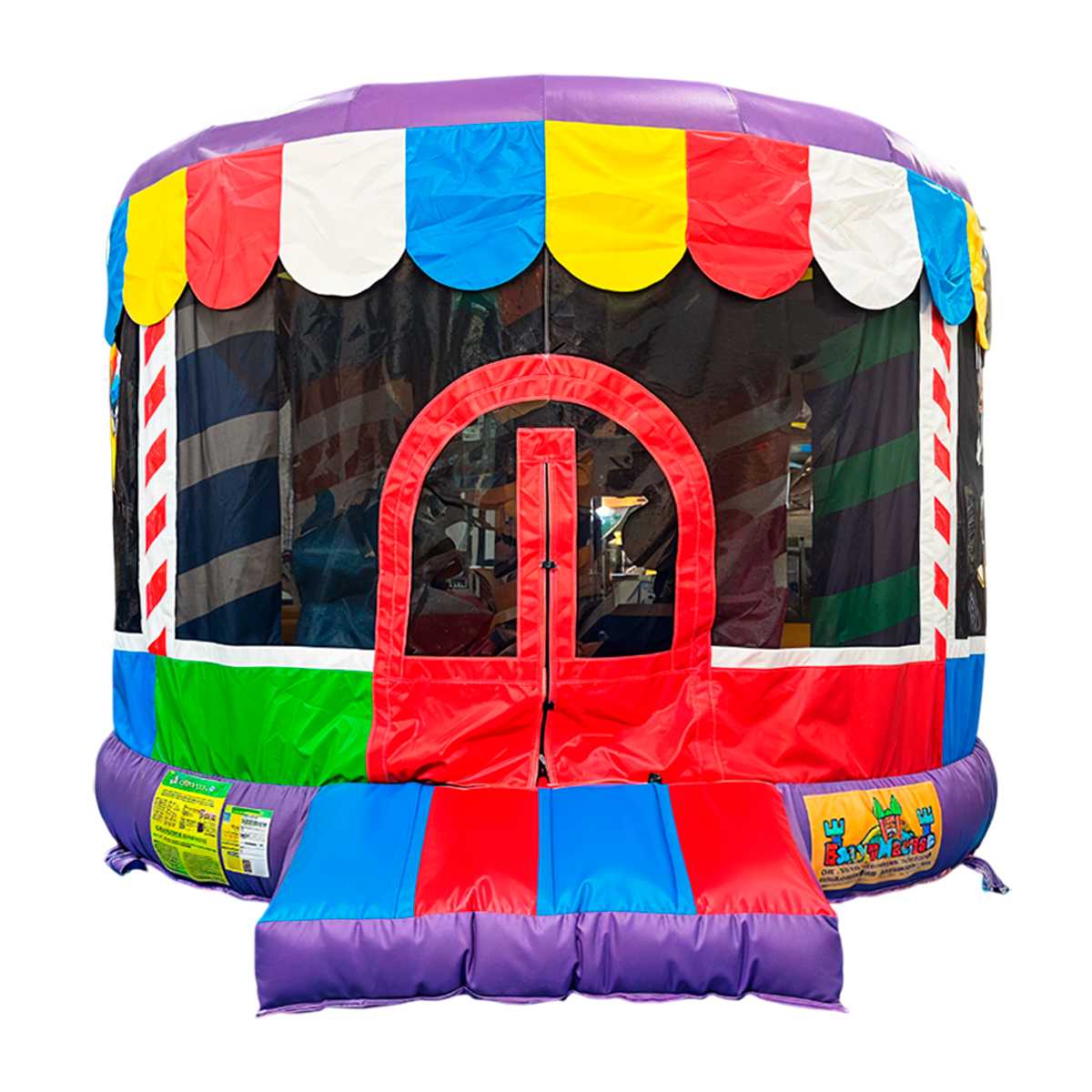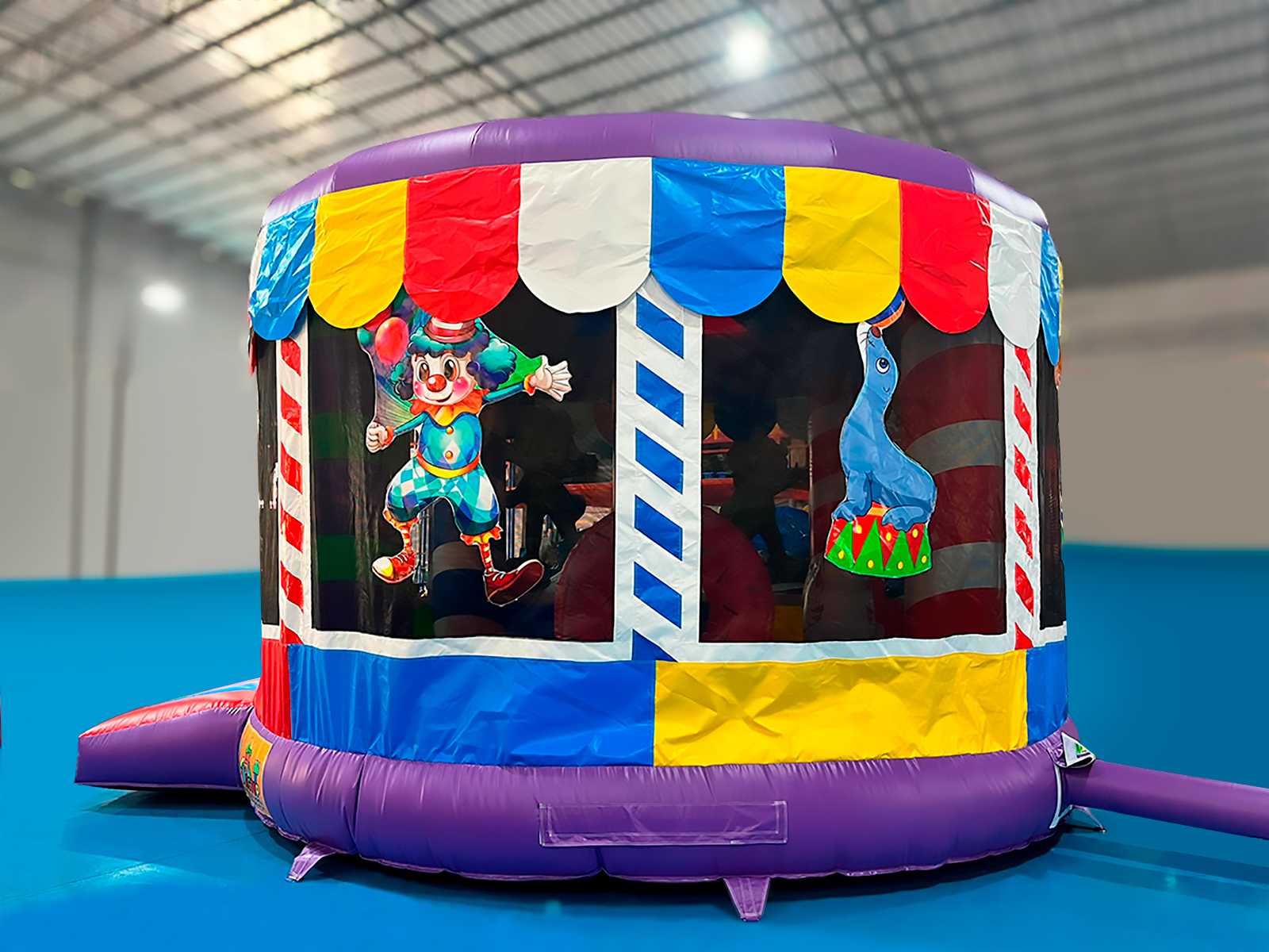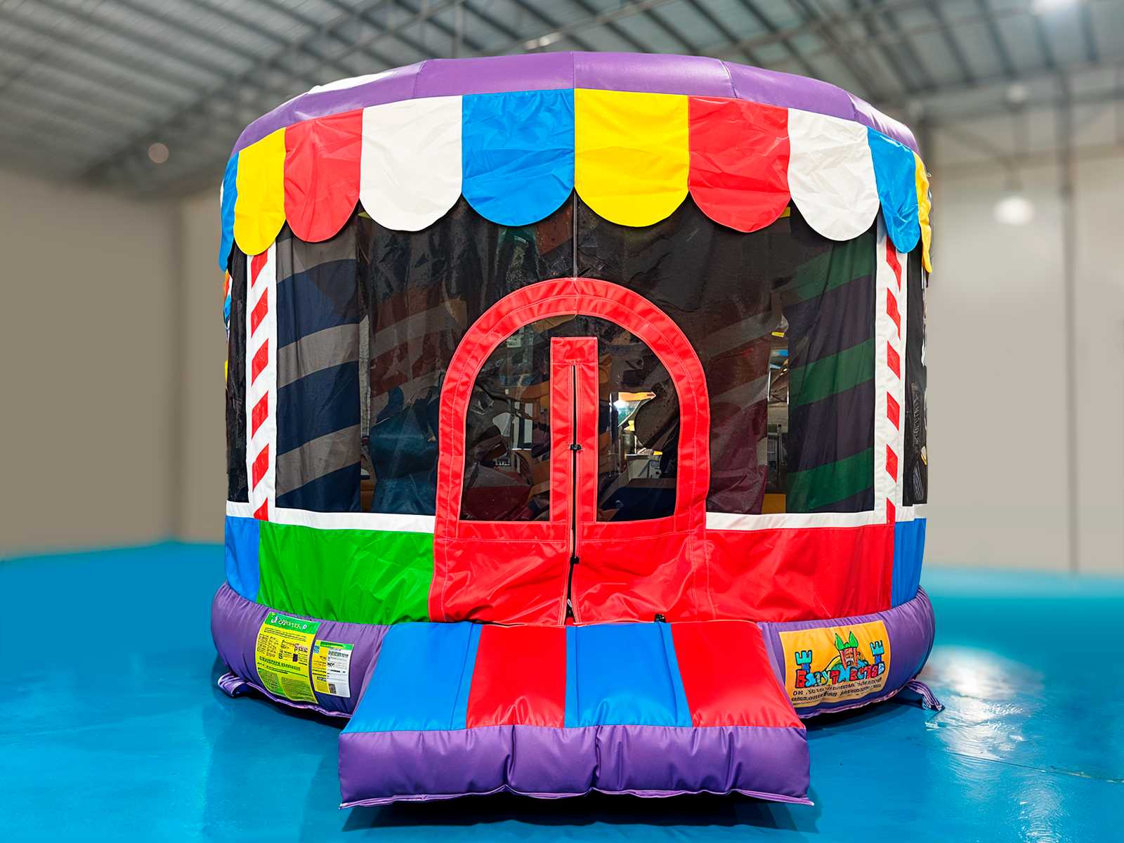 Добро пожаловать в атмосферу ярмарки, смеха и разноцветных шатров! Надувной батут «Карамельное Чудо» 5x5x3.5 — это идеальное решение для владельцев бизнеса в сфере детских развлечений. Дизайн батута выполнен в виде цирковой арены с куполообразной крышей и колоннами, напоминающими сладкие трости. Внутри — игровое пространство, где дети могут прыгать, бегать, взаимодействовать с надувными зверята в виде единорога, котёнка и сладкого почника. Батут выполнен из прочного армированного ПВХ толщиной 0,55 мм, способного выдерживать интенсивную эксплуатацию. Это идеальный формат для установки в парках, на городских праздниках, в торговых центрах, спортзалах и даже школьных дворах.