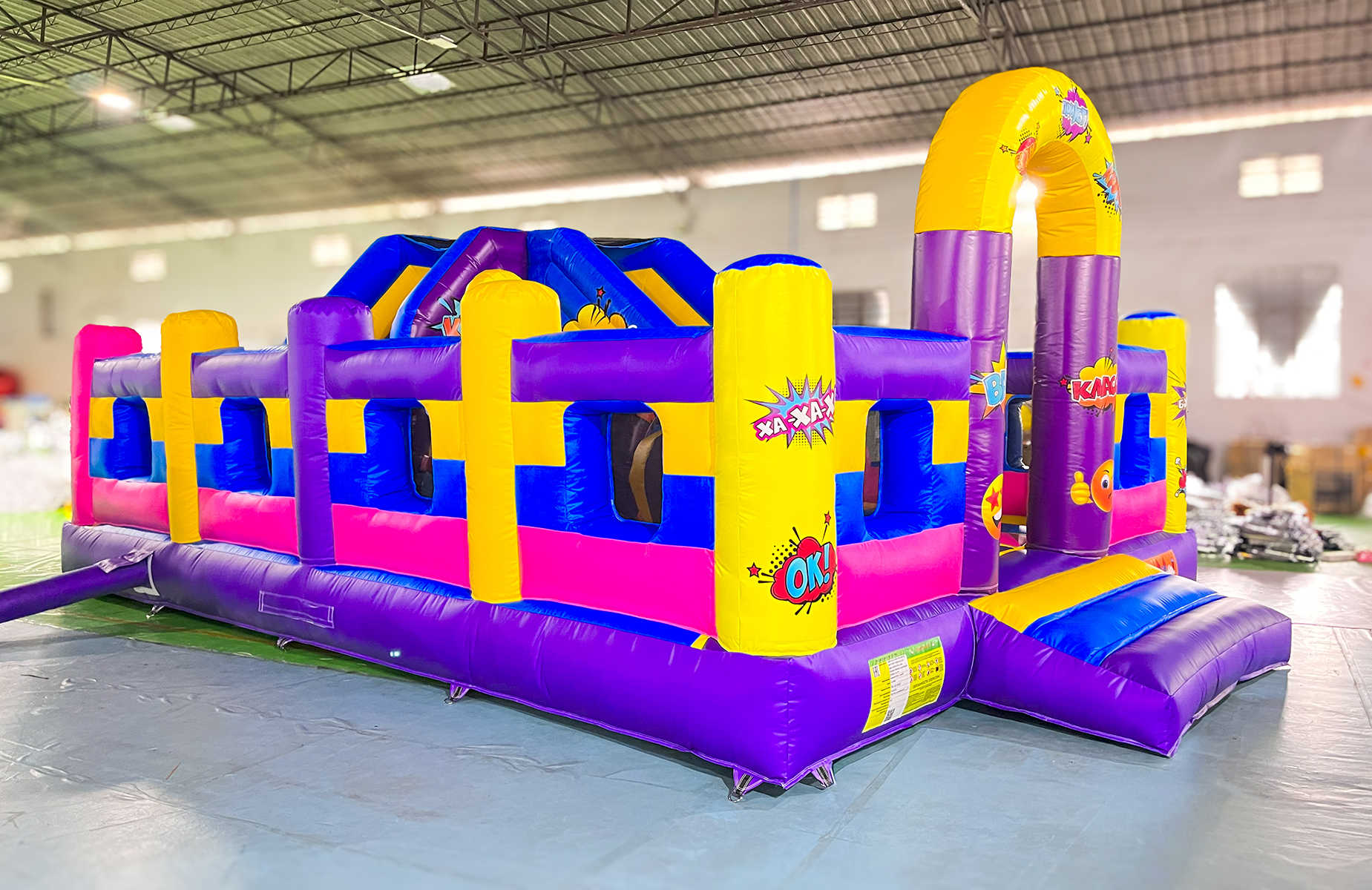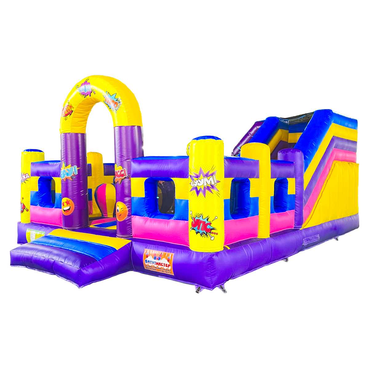 Надувной батут «Комиксы» — это не просто игрушка, а яркий, живой и масштабный мир фантазий, где каждый ребёнок может почувствовать себя настоящим супергероем! Оформленный в стиле популярных комиксов с сочными цветами, молниями, взрывами и фразами типа "BOOM!", "WOW!" он мгновенно захватывает внимание и превращает игровую зону в настоящую сцену приключений.