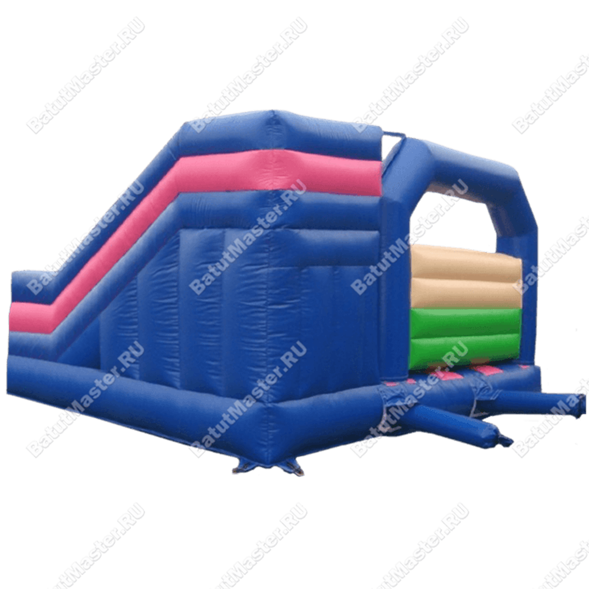 В правой зоне аттракциона начинается лестница, ведущая на стартовую площадку горки с высотой 1,5 м. Конструкция горки соединяет в себе лестницу и спуск, размещая их под прямым углом друг к другу. Благодаря этому задняя часть горки в батуте создает высокий угол, от которог вправо и влево отхдят сплошные стены из синего ПВХ.