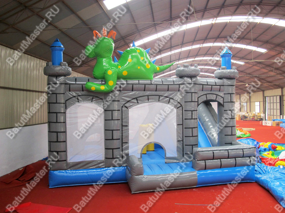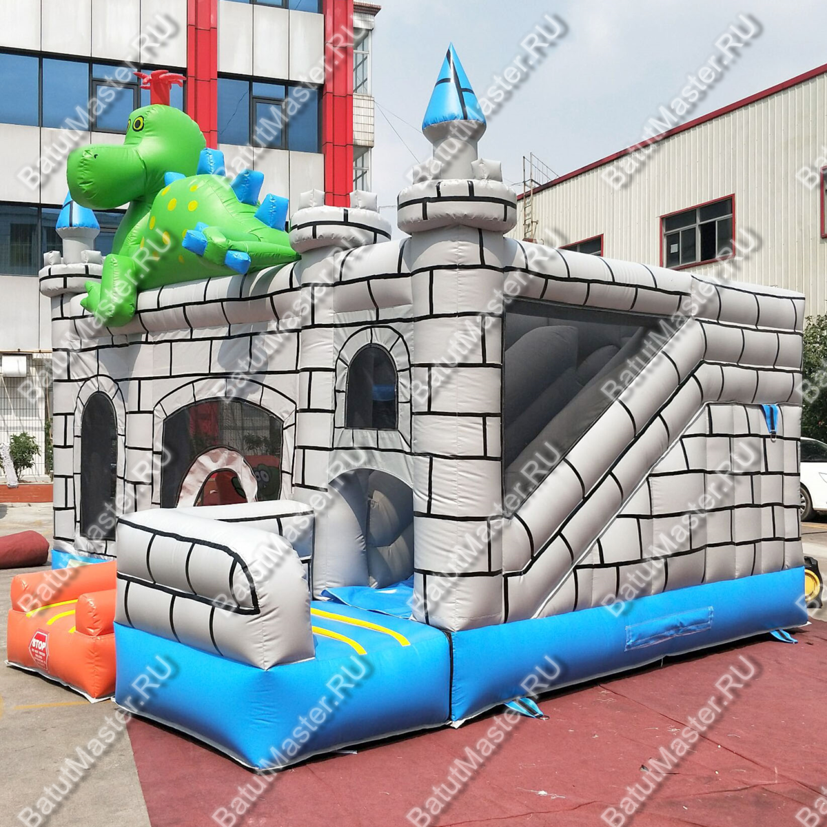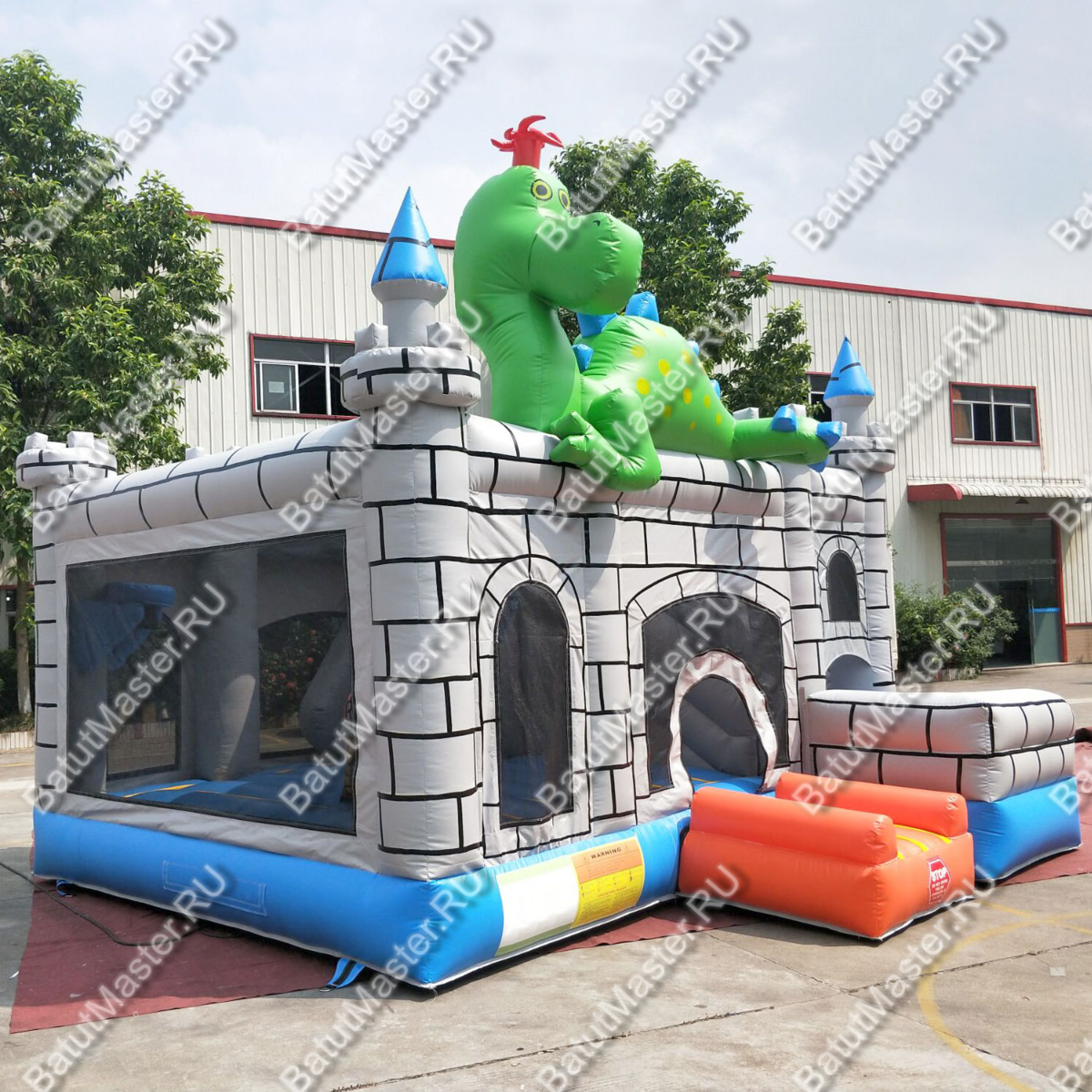 Тематические батуты отличаются очень привлекательными и проработанным дизайном, и надувной батут «Крепость дракона» не является исключением. Этот игровой батут станет настоящей приманкой для детишек и даже их родителей, так как мимо такого аттракциона сложно просто пройти.