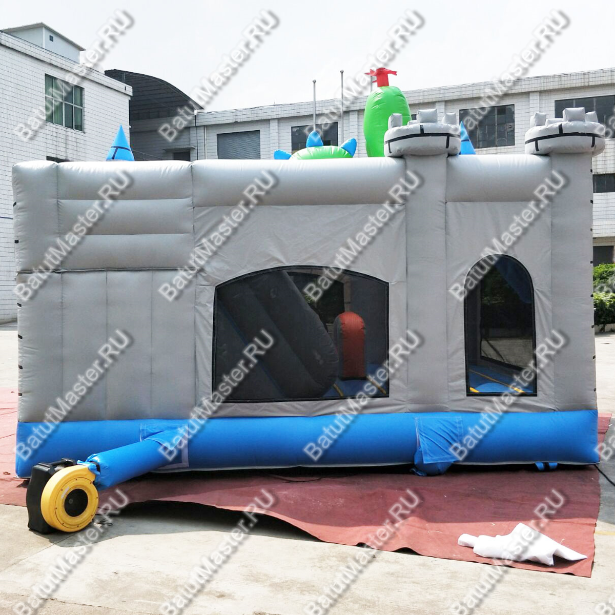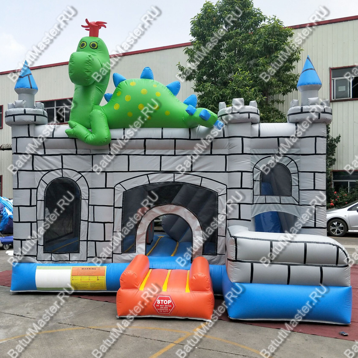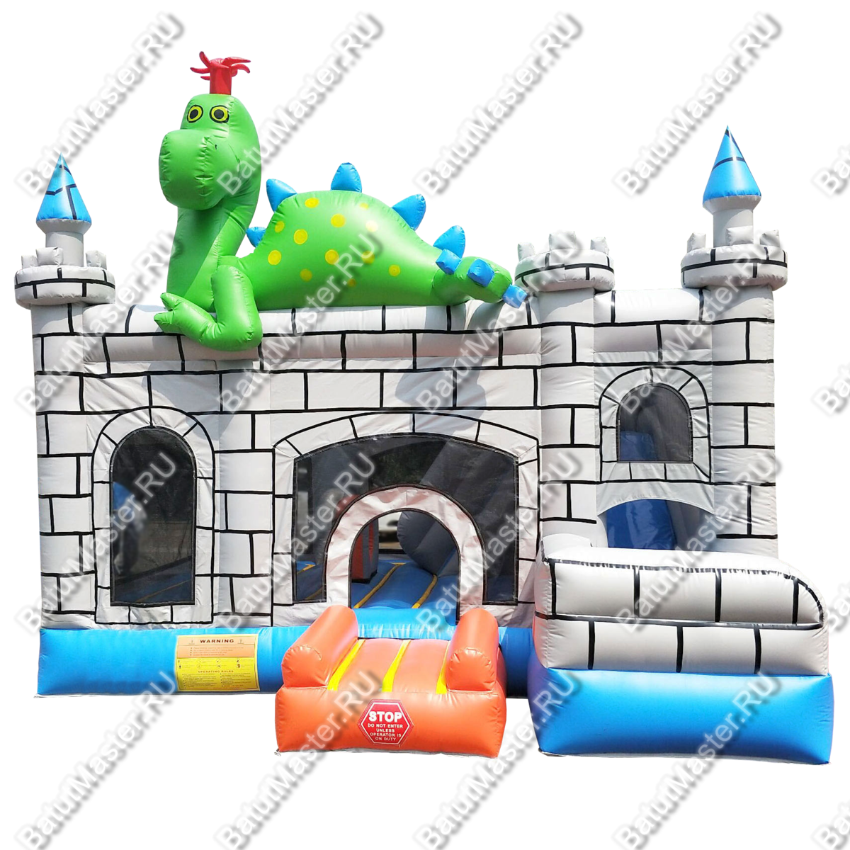 Тематические батуты отличаются очень привлекательными и проработанным дизайном, и надувной батут «Крепость дракона» не является исключением. Этот игровой батут станет настоящей приманкой для детишек и даже их родителей, так как мимо такого аттракциона сложно просто пройти.