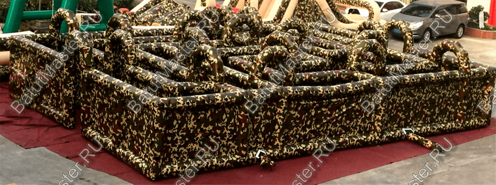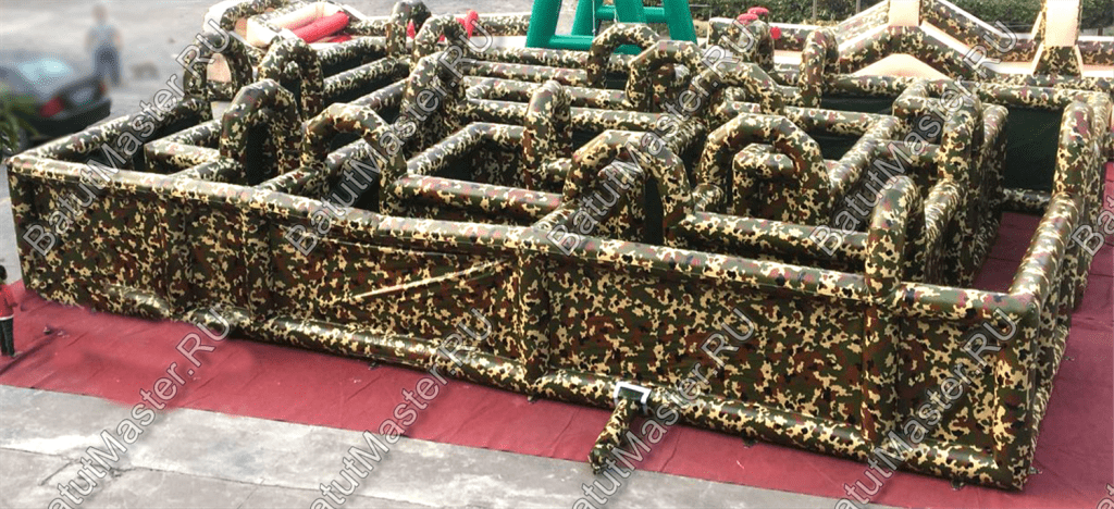 Надувной батут «Лабиринт милитари» представляет собой запутанное пространство с многочисленными выходами и тупиками. Какой из них ведет к финишу, остается только угадать. Такой аттракцион предназначен для проведения эстафет, соревнований. Кроме того, он часто используется компаниями, которые занимаются тимбилдингом. Для детей это оригинальное игровое пространство будет очень полезным, ведь оно позволяет развить координацию в пространстве и мышление.