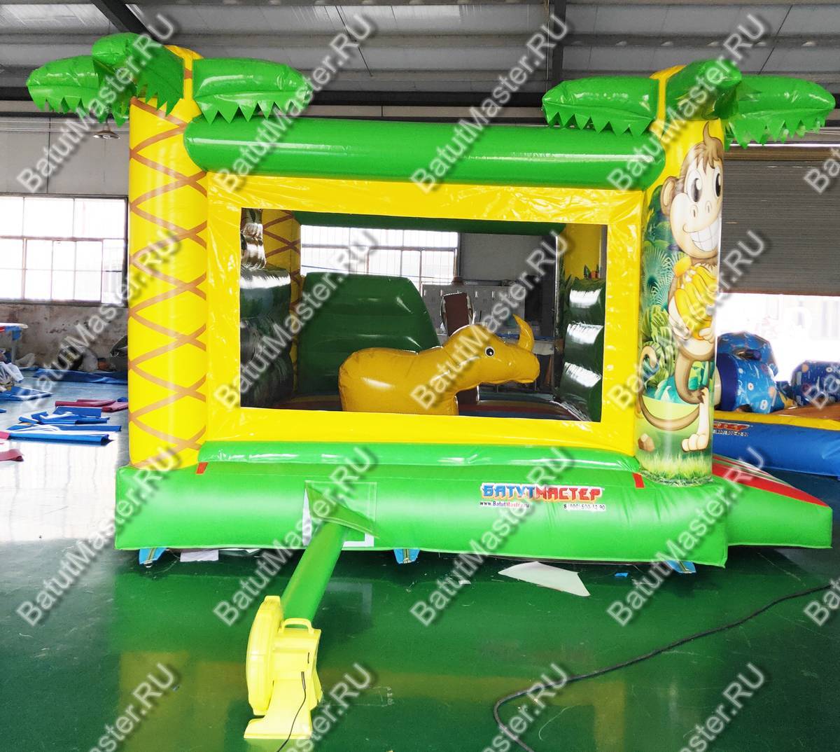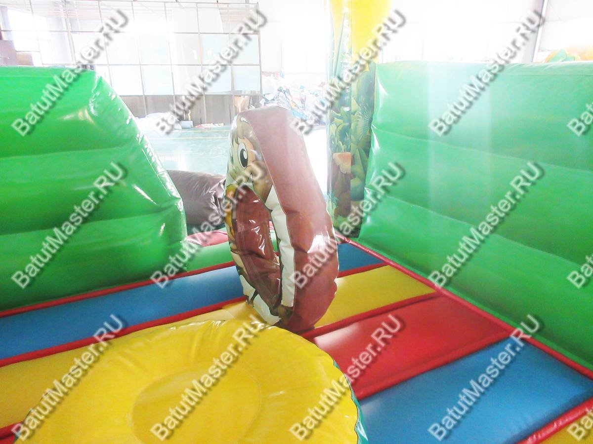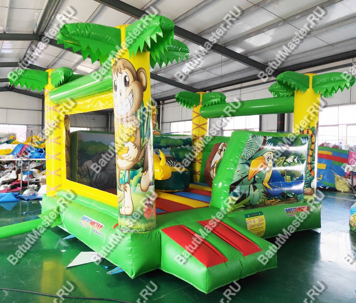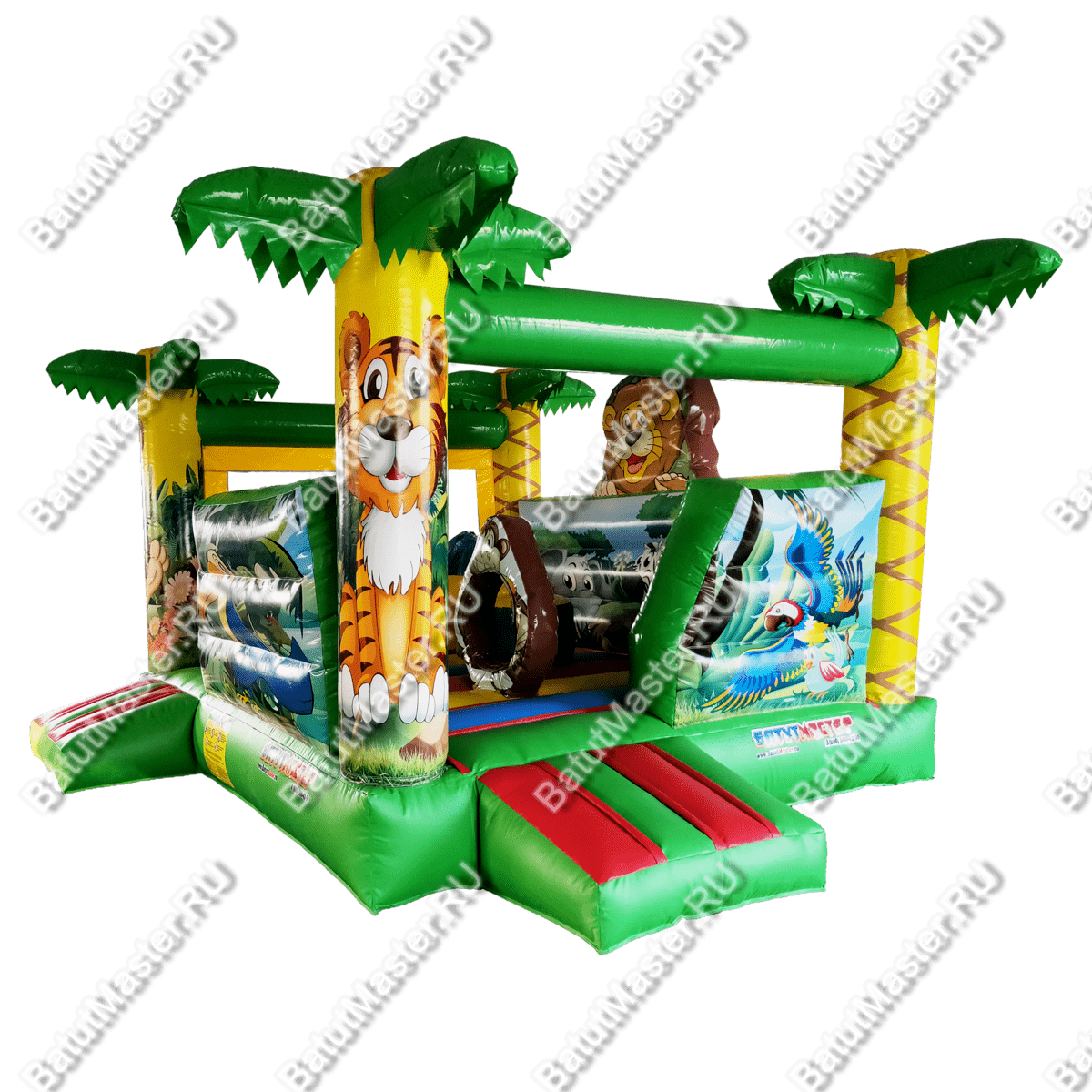 Маленьких непосед ждут незабываемые эмоции на батуте «Львёнок». Яркие надувные модули в виде качалки, носорога и кольца, а также здесь есть зона для прыжков – это именно то, чему будут рады дети. Компактный, современный надувной батут позволит прекрасно провести время дружной командой. По бокам комплекс полностью защищен высокими бортами и сеткой. Мягкий пол сделан специально таким образом, чтобы дети отталкивались от него и взлетали как можно выше. Милые животные и пальмы задают здесь веселую атмосферу. Как нельзя лучше подходит для ведения бизнеса. Небольшой коммерческий батут будет прекрасным дополнением детской площадки на улице или игровой зоны в развлекательном центре или гостинице. Занимает не много места, при этом функциональный, и отвечает всем требованиям настоящего батутного комплекса. Стоит отметить также его безопасность, которая держится на должном уровне. За ним легко ухаживать, особый материал не впитывает грязь и пыль. Изготовлен из ламинированного ПВХ, устойчив к солнечным лучам, не выгорает, не токсичный. Также его можно запросто надувать и в минусовую температуру. Дополнительно, по желанию мы можем сделать его на пневмоподушках.