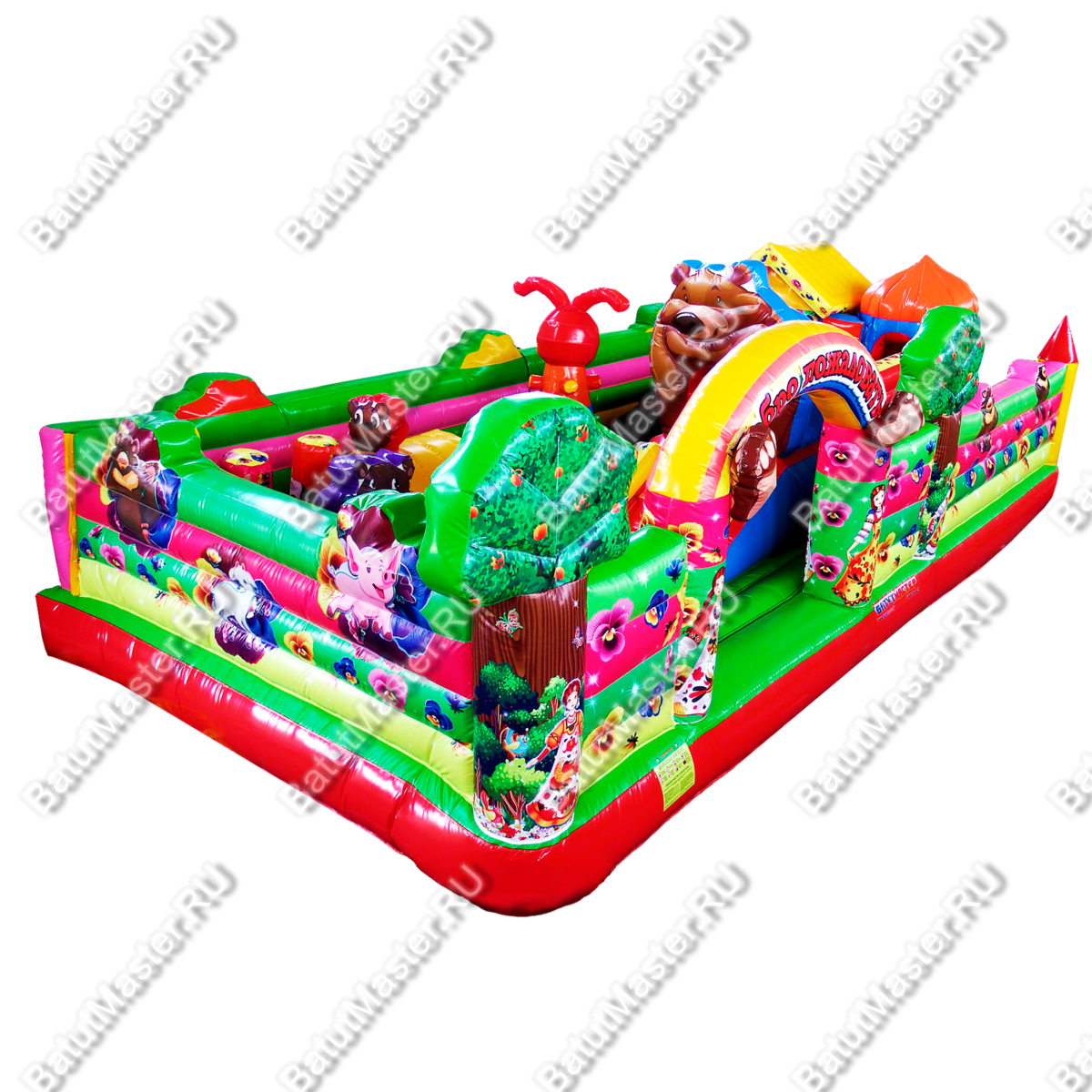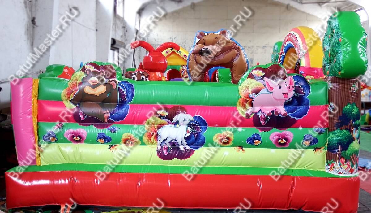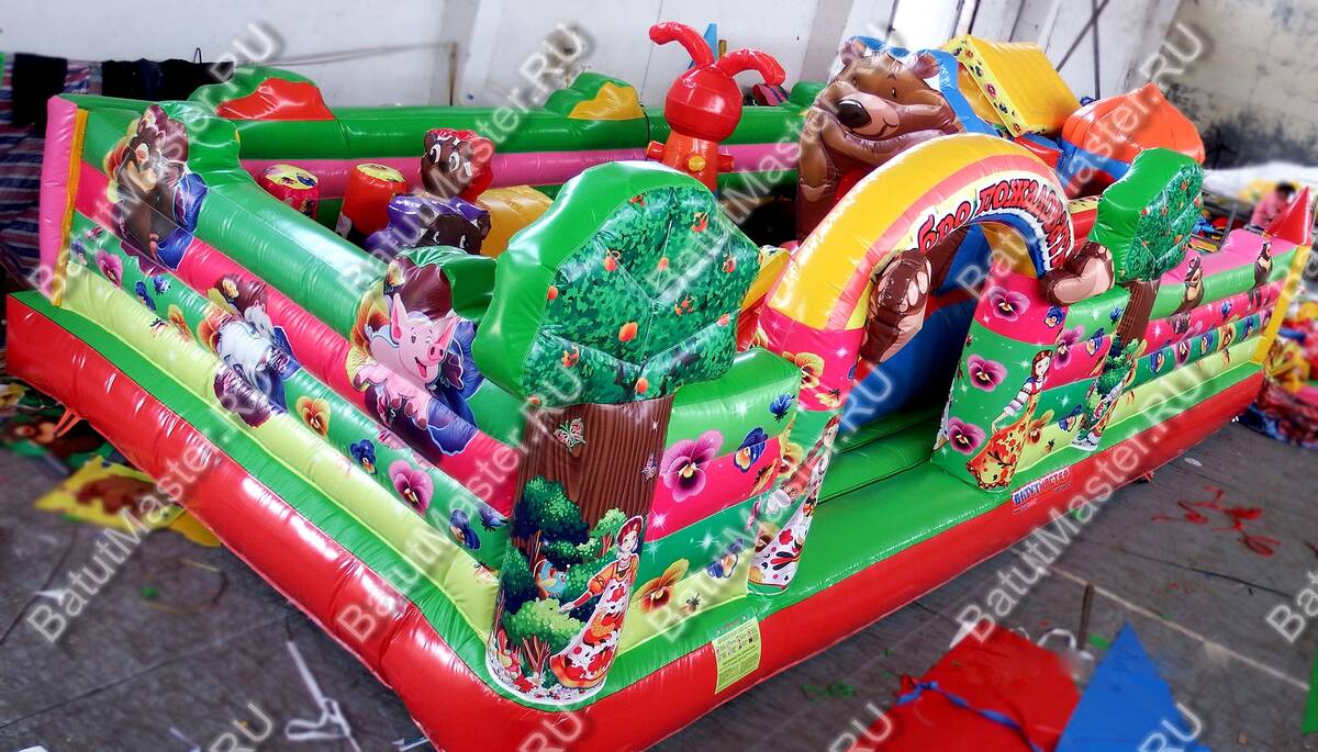 Порадовать ребенка и подарить ему незабываемее впечатления и эмоции легко с батутом «Маша, Миша и компания»! Комплекс оснащен интересными локациями и модулями, чтобы ребенок почувствовал себя в настоящей, доброй сказке. Тематика любимого мультфильма вносит еще больший восторг. Ее создают персонажи в виде мешки, Маши и других лесных жителей. Резвиться, бегать и прыгать это именно то, что нужно маленьким детям на этапе развития. Активные непоседы по достоинству оценят наполнение батута. Здесь достаточное количество вертикальных модулей, есть горка, домик, скалодром и многое другое – все для самых маленьких. Яркий, интересный батут станет заметным в детской развлекательной зоне.Надувной батут развивает силу, моторику, выносливость и координацию движений, а это так важно в период развития детей. Батут предназначен для бизнеса. Он сделан из качественного ПВХ с ламинированием. Противостоит растяжению и сжатию, а также устойчив к солнечным лучам, под действием которых он не выгорает. Укомплектован необходимым оборудованием для установки и безопасной эксплуатации, включая мощный насос. Простой и неприхотливый в уходе. Может быт установлен на любую ровную поверхность и даже на песок.