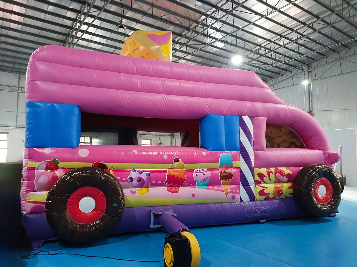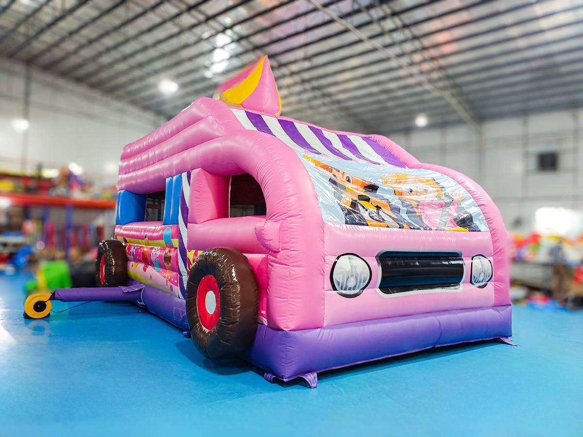 Веселый батут внутри имеет игровые фигуры и туннель. Вся конструкция вызывает непреодолимый «аппетит» попрыгать и развлечься внутри необычного дизайна. Юным автолюбителям особенно понравится площадка, в ней можно фантазировать, играть и искать приключения целой командой. Такой развозчик сладостей обязательно принесет хорошую прибыль для владельца и сможет вернуть все затраченные средства за небольшой период времени.