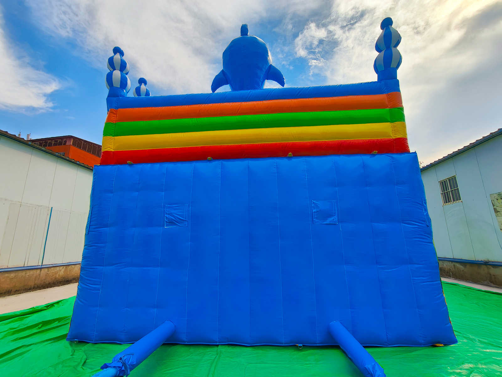 «Морская волна 2» — это не просто надувной батут. Это целый мир веселья, приключений и детских эмоций, воплощённый в форме надувного игрового центра с морской тематикой. Батут украшен изображениями акул, дельфинов, осьминогов и морских звёзд, что делает его невероятно привлекательным и узнаваемым. Яркие цвета, качественные материалы и продуманные игровые элементы позволяют использовать его как на открытых площадках, так и в помещении.