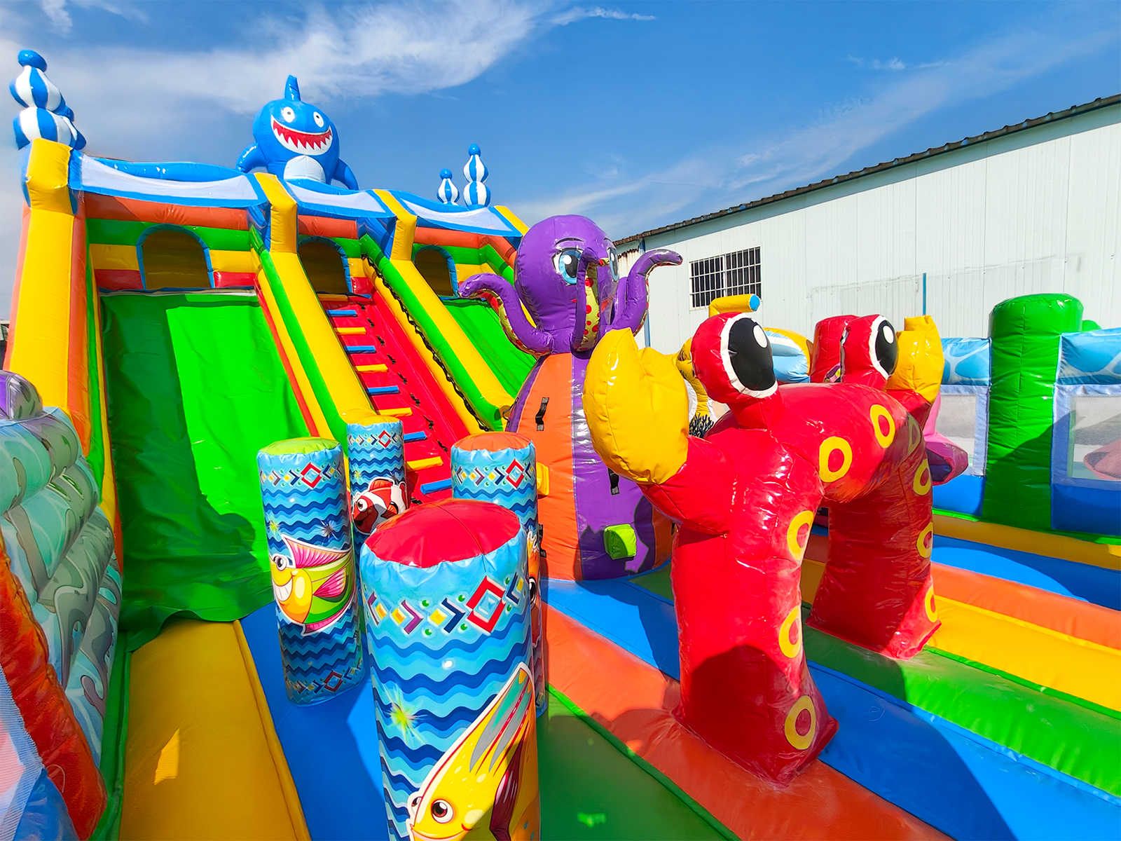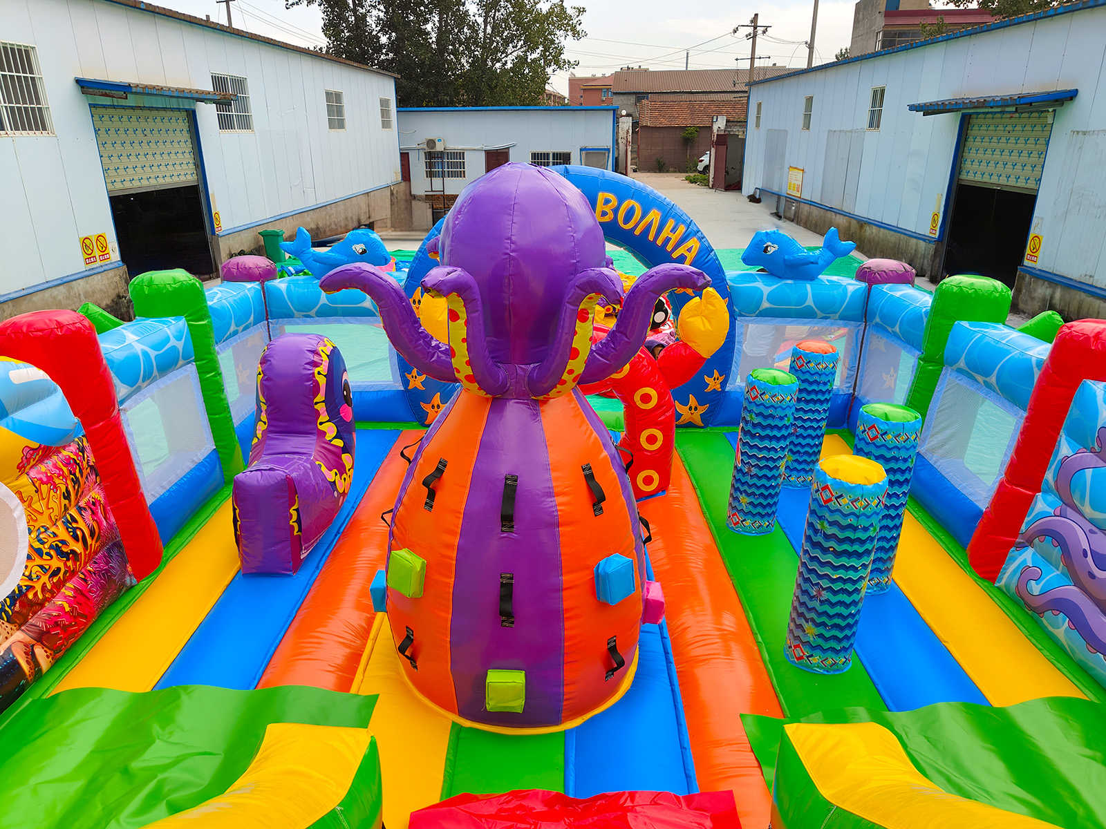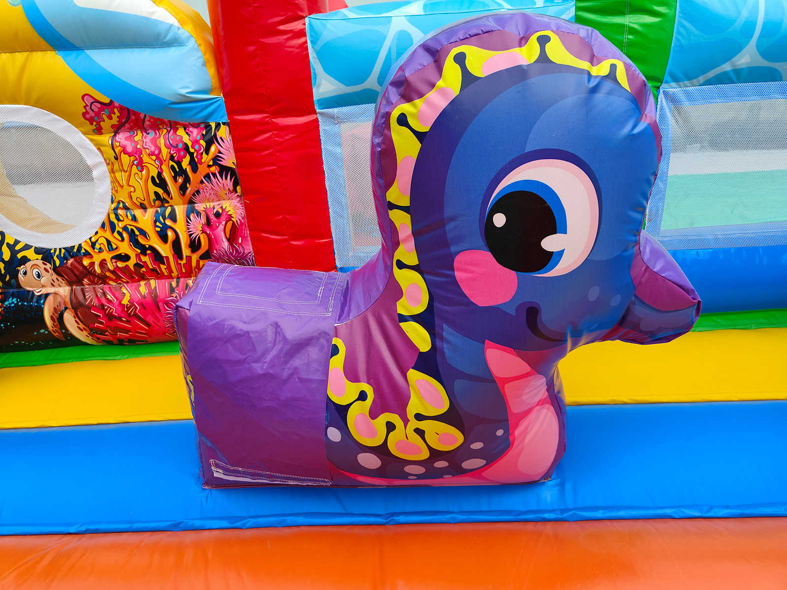 Площадь 60 м² и высота 6 метров позволяют разместить внутри до 17 детей одновременно, обеспечивая динамичную и безопасную игру. Внутри находятся высокие горки, скалодром осьминожка, а также надувные жители морского мира, создающие настоящий вау-эффект! Это идеальное решение для запуска прибыльного и яркого бизнеса в сфере развлечений. Батут изготовлен из прочного армированного ПВХ плотностью 690 г/м² и толщиной 0,55 мм, что гарантирует устойчивость к износу и высоким нагрузкам. Батут рассчитан на общий вес до 800 кг и имеет сертификаты соответствия требованиям ТР ЕАЭС 038/2016 «О безопасности аттракционов». Он полностью безопасен при соблюдении правил эксплуатации и регулярно проходит техническое обслуживание.