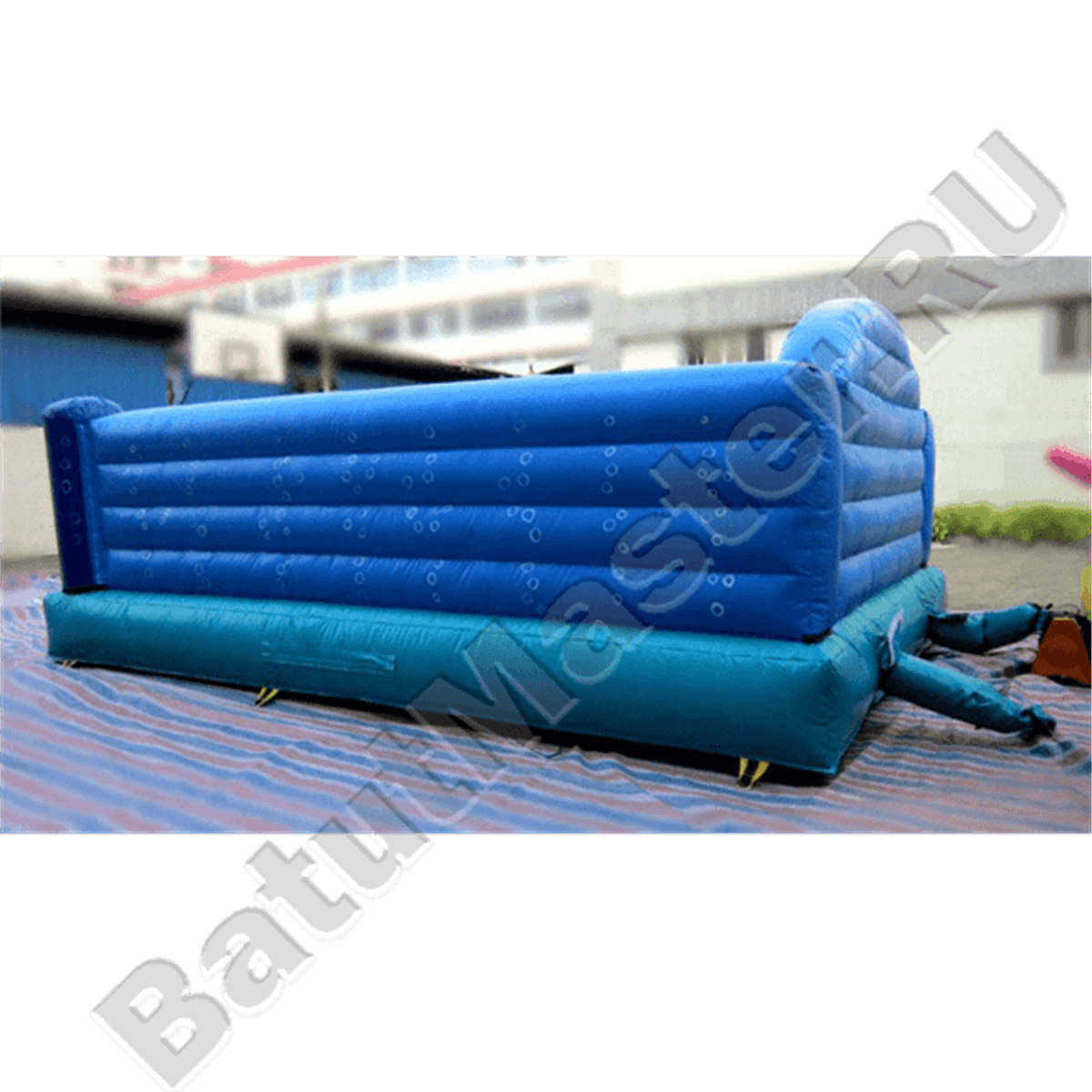 Недорогой красивый батут с открытым верхом сможет поместиться даже в закрытом помещении. Он отлично подойдет в качестве украшения для спортивной площадки или пляжа. В большей мере он выполнен в голубом цвете, на котором ярко и колоритно расположились веселые пузыри воздуха.