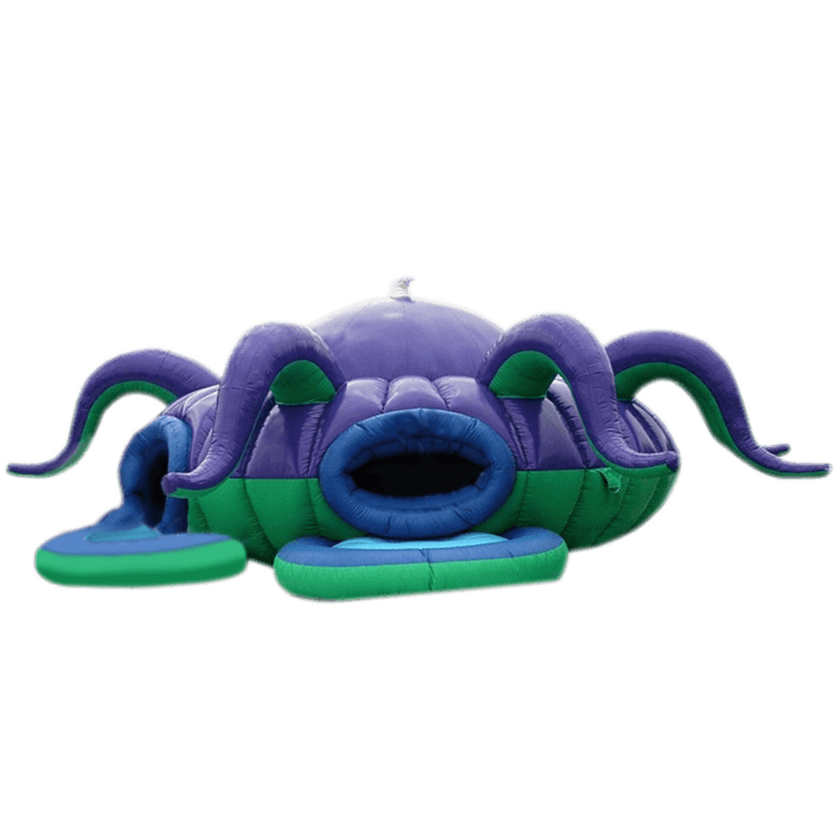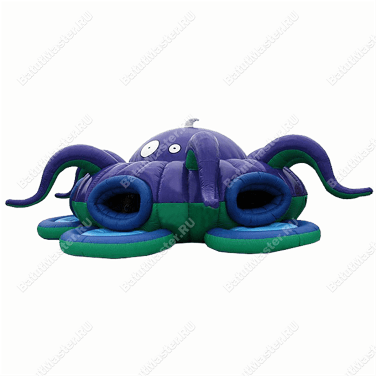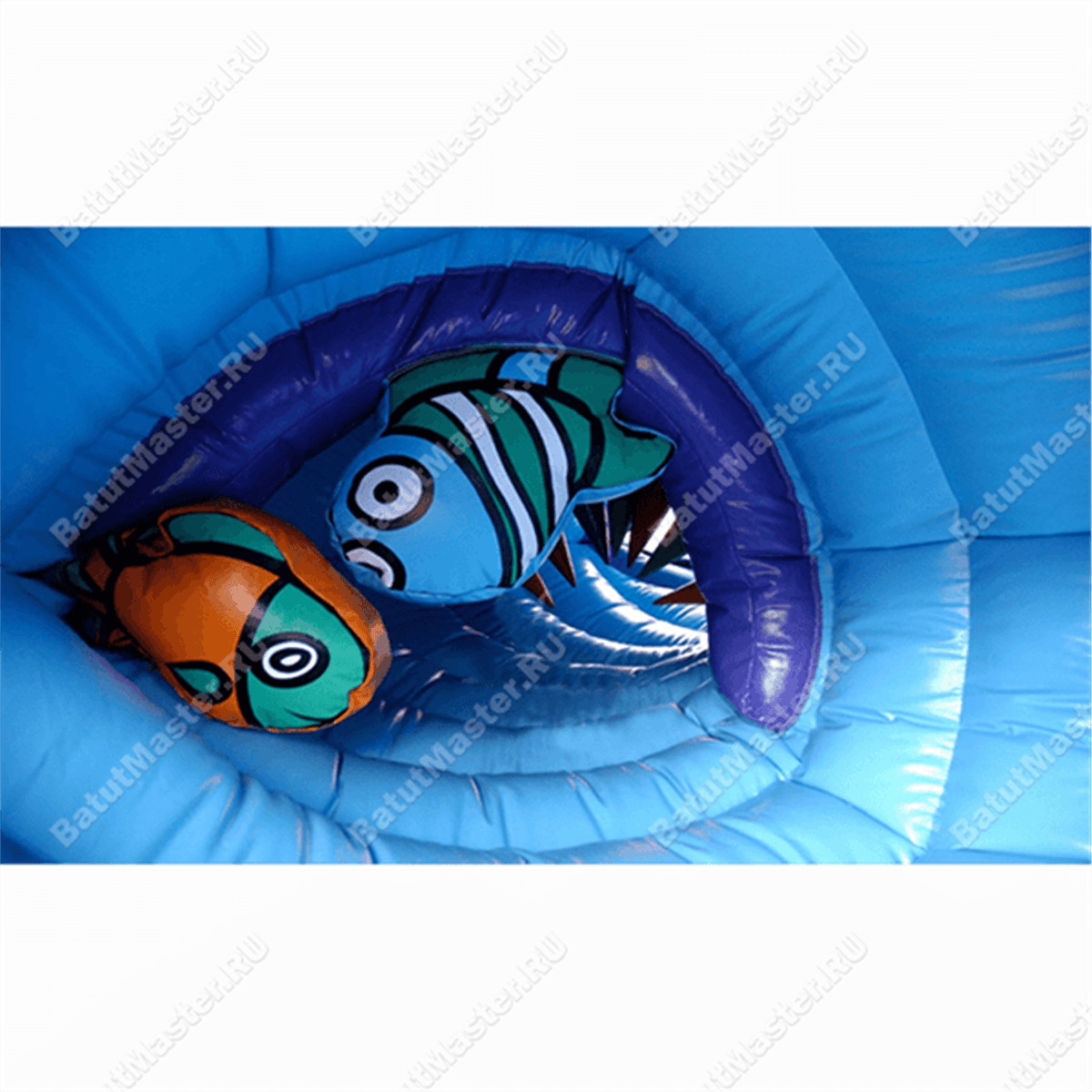 В то, что батут с крышей может выглядеть, как огромный фиолетовый морской жук, почти невозможно поверить. Интересный батут имеет забавную конструкцию – он полностью состоит из одного длинного лабиринта, который можно бесконечно преодолевать по кругу. Известно, что дети познавательно относятся ко всему тому, что может им напоминать домик, поэтому огромный мягкий туннель синего цвета станет увлекательным надувным приключением и местом для игр, забав.