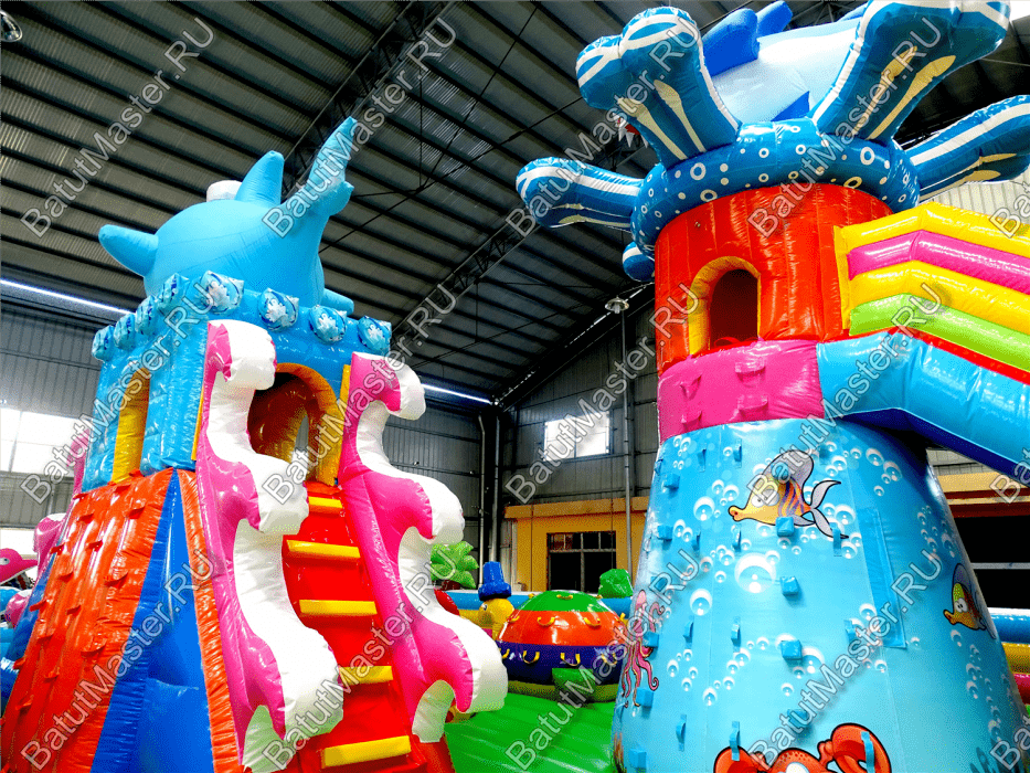 Оказаться на морском дне моря или океана и перенестись в мир познаний и новых открытий сегодня доступно с таким современным и необычным игровым аттракционом. Коммерческий надувной батут для бизнеса на морском дне сочетает в себе все то, к чему так привыкли дети и что они так любят. Прежде всего, это большие горки в самом разном исполнении. Одна размещена посередине аттракциона, сверху которой стоит забавный кит. Остальные спуски просто громадные, широкие, с них можно кататься сразу всем вместе. ¶Коммерческий надувной батут для бизнеса – это не просто развлекательный аттракцион, это еще и спортивная арена.