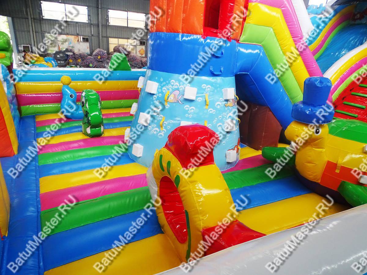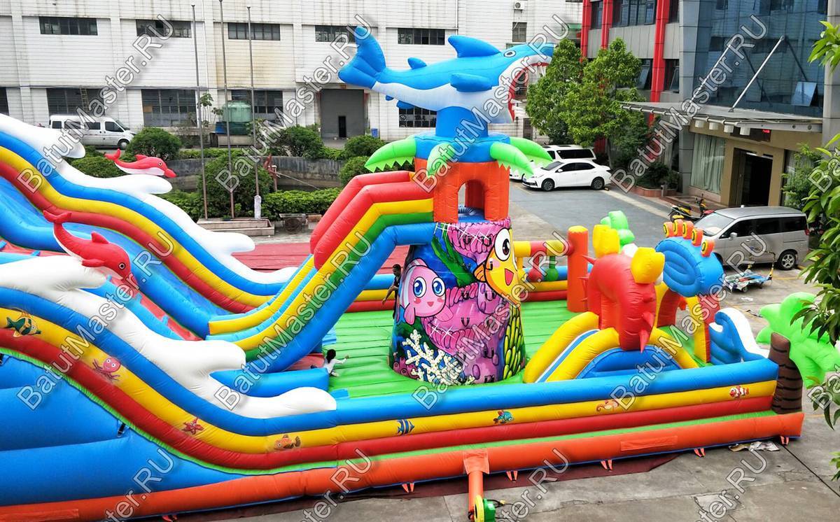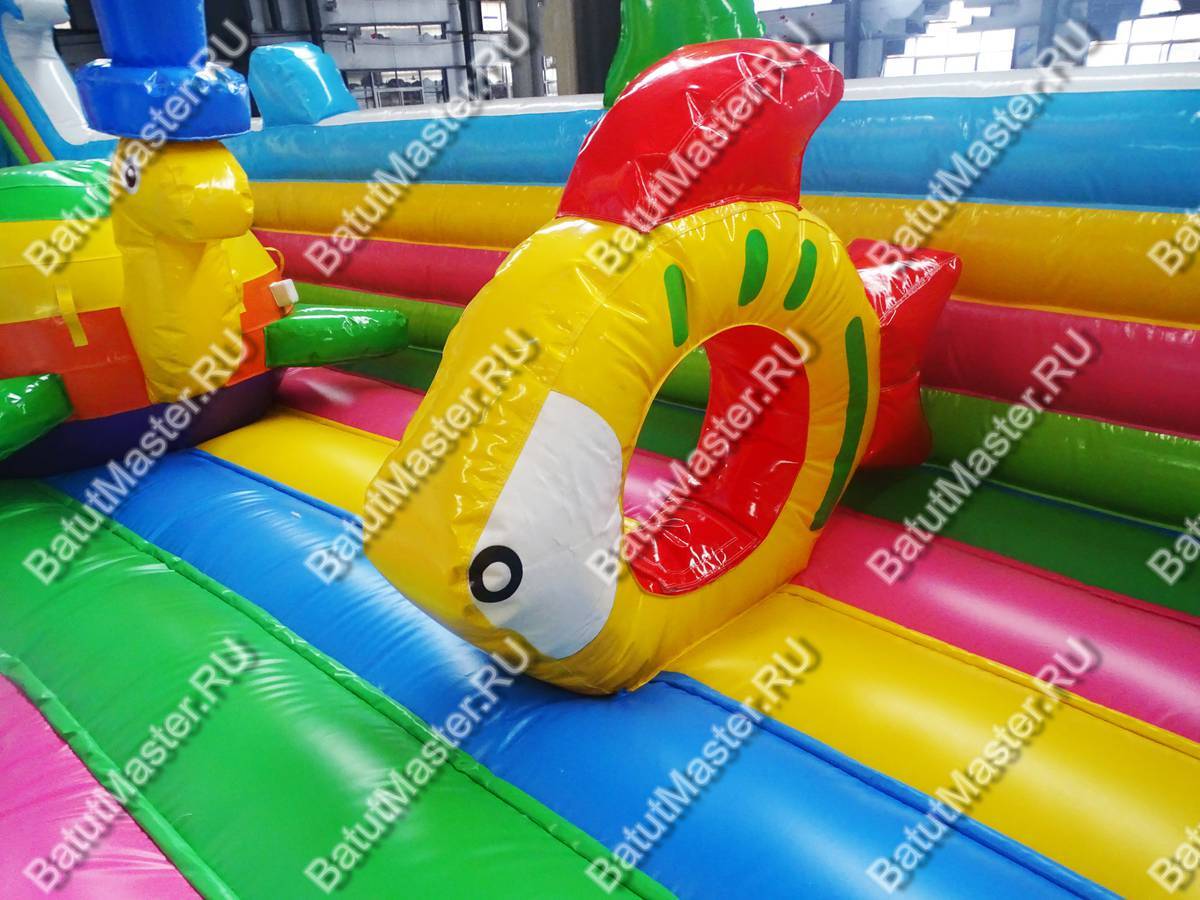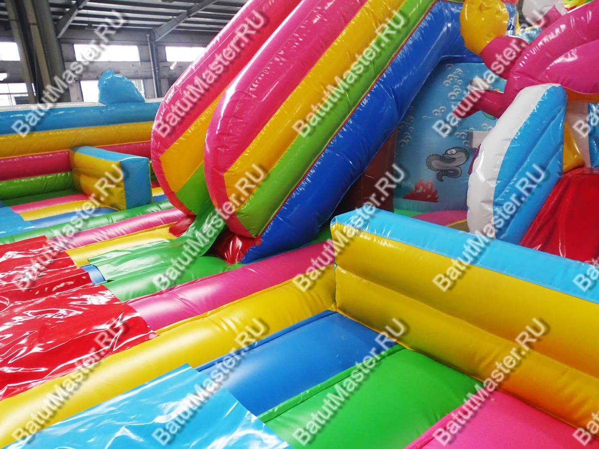 Надувной батут «На морском дне» вобрал в себя все то, что так любят дети. Здесь можно кувыркаться, прыгать и даже играть в прятки и все это в компании веселых и забавных морских жителей. Батут сделан в красочных тонах, которые притягивают внимание маленьких первооткрывателей. Здесь открывается большой простор для детской фантазии. Огромные надувные крабы, рыбы, акулы, осьминоги и многие другие жители морей являются настоящим украшением такого батута. Тут есть две горки, с которой так любят кататься дети, скалодром, модули в виде животных и многое другое. Даже самым маленьким первооткрывателям будет здесь интересно провести время, ведь многие модули размещены так, что позволяют играть детям любого возраста. Огромное прыжковое поле позволит кувыркаться, бегать и придумывать различные игры.Такой батут легко надувается, не требует особых условий хранения, легко транспортируется. Выполнен из особо прочного, ламинированного поливинилхлорида. Такой материал не боится солнечных лучей и минусовой температуры. Это отличный вариант для бизнеса. Предпринимателям можно установить его как в помещении, так и на открытом воздухе и начать зарабатывать без дополнительных вложений.