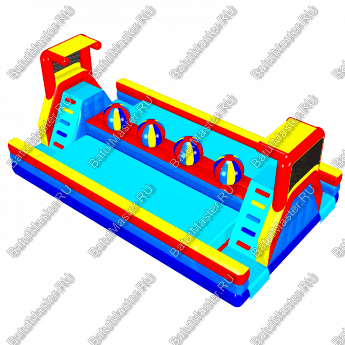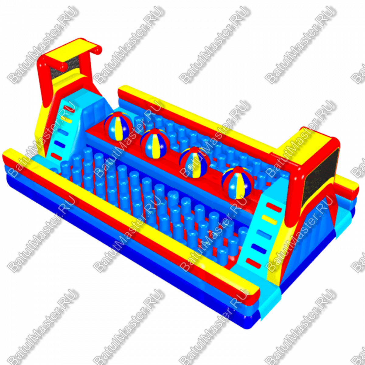 Принцип игры очень прост и ярко отражает название батута. Две лестницы с разных сторон ведут на верхний ярус, который является узкой полосой препятствий. На верхней площадке установлены большие мячи, через которые и нужно пройти ребёнку. Задача проста – не упасть в море, которое представлено площадками с вертикальными грушами с обеих сторон. Для безопасности груши накрыты синим брезентом, и упав на него, дети почувствуют себя словно на морских волнах.