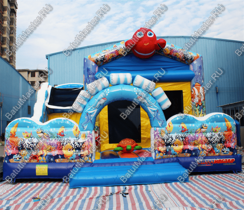 Дети любят различные развлечения, особенно связанные с любимыми мультиками. Коммерческий надувной батут «Немо», являющийся отличным вариантом для бизнеса, точно понравится ребятам, потому что на верхушке аттракциона возвышается всем знакомый персонаж.