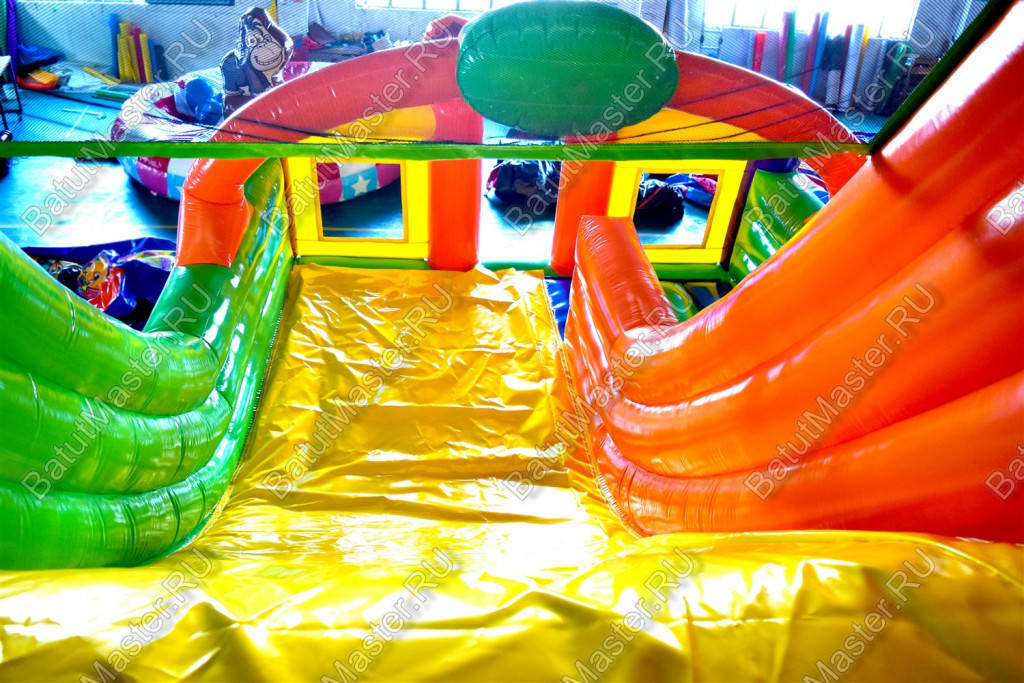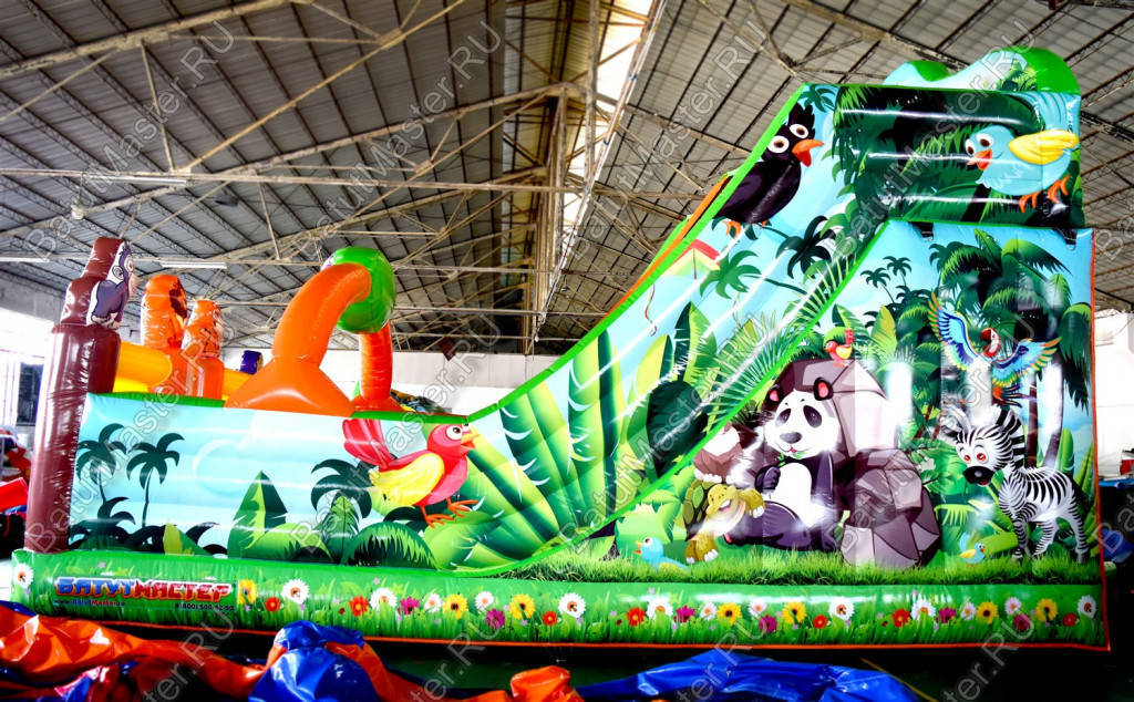 Посетить яркий, надувной батут мечтает каждый ребенок. Ведь проведенное время там, станет самым лучшим и увлекательным. Надувной батут «непроходимые джунгли» даст такую возможность. Он сочетает в себе два подъема с мягкими ступеньками и широкий спуск вниз, множество мягких модулей и большую зону для прыжков. Снаружи он очень интересно оформлен, создается впечатление, что попадаешь в настоящие джунгли. ¶По бокам батут защищен высокими бортами, а в зоне подъема имеются два окна, защищенные прочной сеткой. ¶Комплекс развивает силу, выносливость и координацию у детей в период их развития. Батут предназначен для бизнеса. Простой и неприхотливый в уходе. Изготовлен из качественных материалов, которые прошли необходимые проверки для использования детьми. Занимает небольшую площадь, может устанавливаться на любую ровную поверхность под открытым небом или в помещении. Не выгорает на солнце и не сжимается при низкой температуре. Совершенно безопасный, не имеет ни одного жесткого элемента. Легко собирается и разбирается. В комплекте имеется необходимое оборудование для сборки и эксплуатации. ¶Коммерческий батут предназначен как для начинающих, так и для опытных предпринимателей.¶