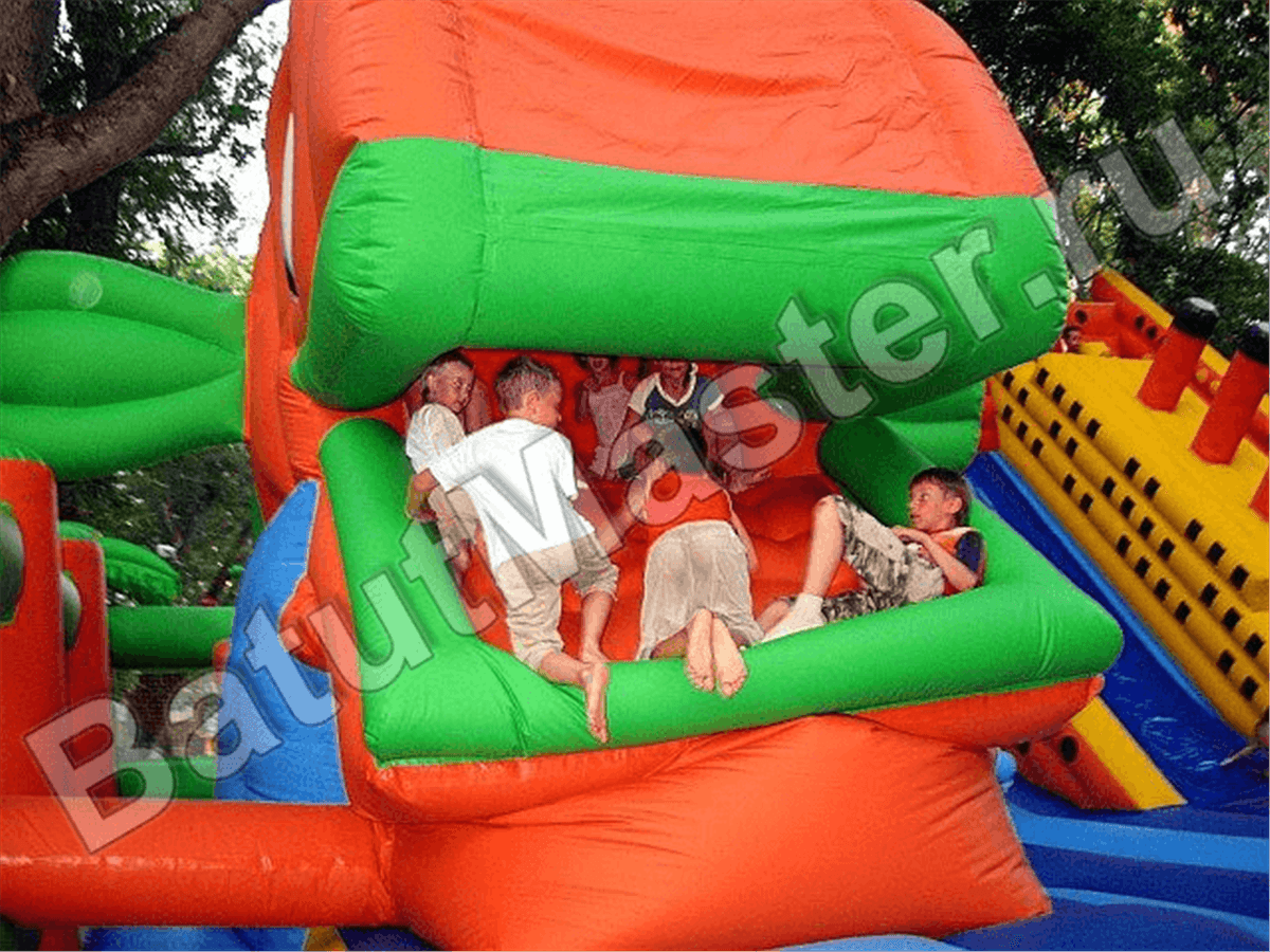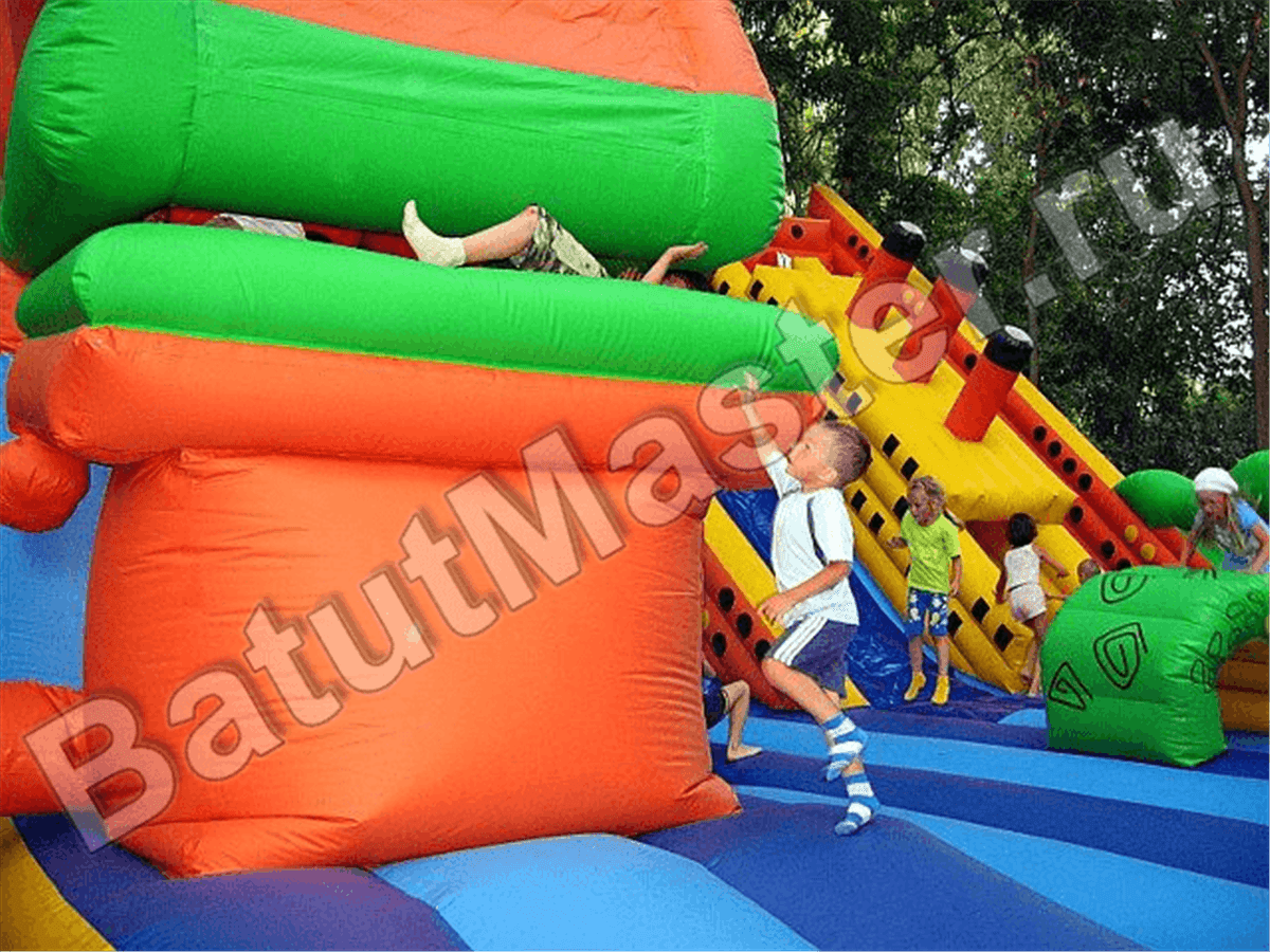 Отличительным аксессуаром данной модели считается высокая горка, разделенная на две половины спускающимся вниз мягким кораблем. Меньшая часть оснащена надувными ступенями, большая представлена в виде покатого полотна для спуска. Борта горки ограничены высокими стенками для безопасных игр.
