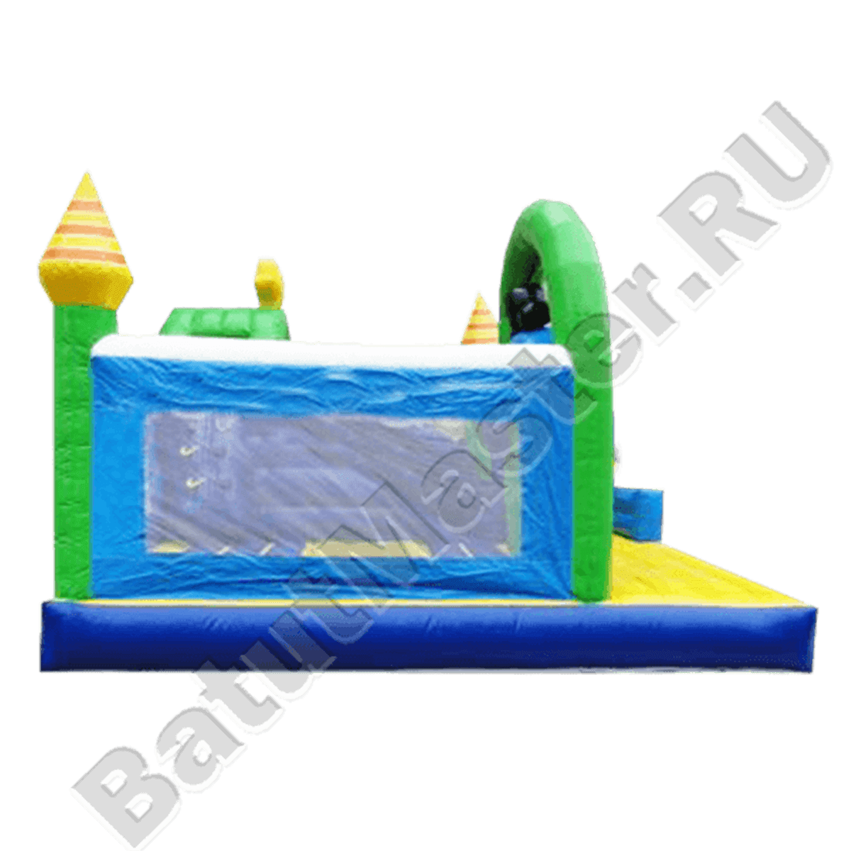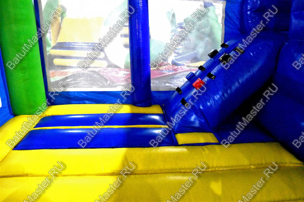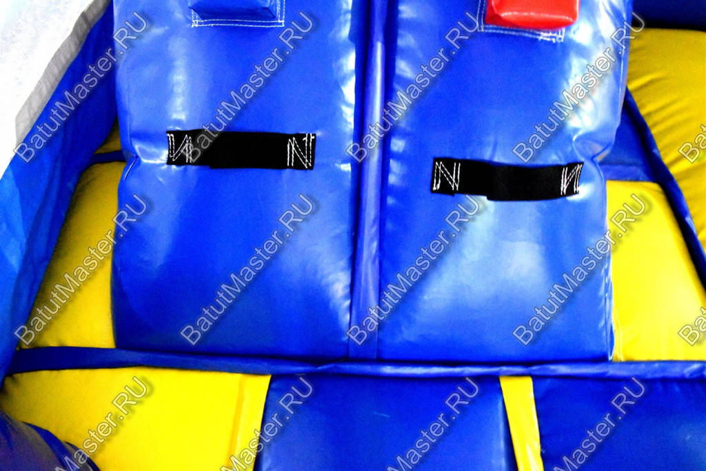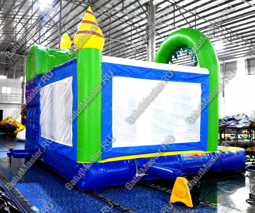 Подушка безопасности для горки изображает морских рыбок, это напоминает о морской тематике. Прыгающая поверхность и горка одновременно позволяют привлекать множество клиентов и получать высокий доход.