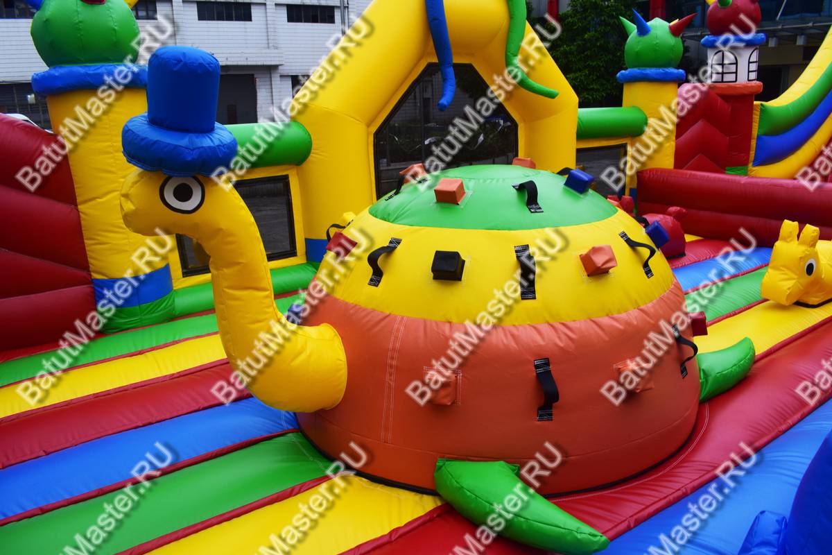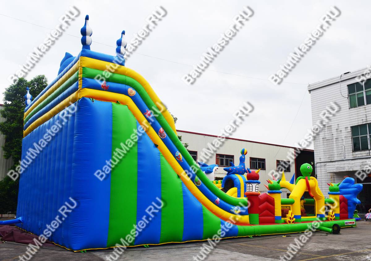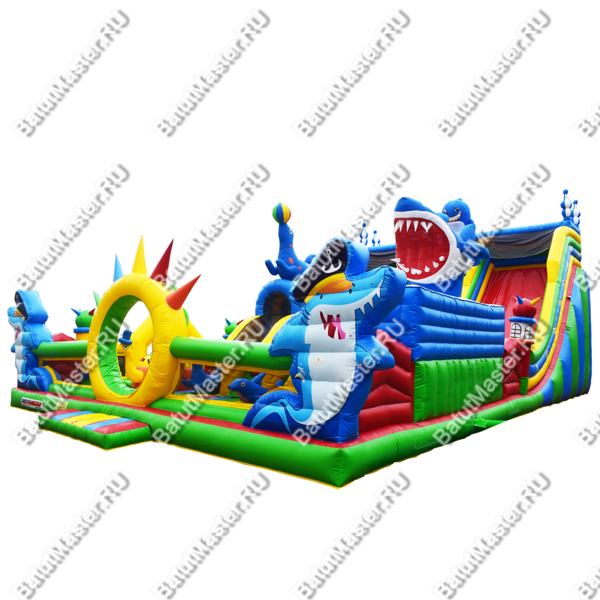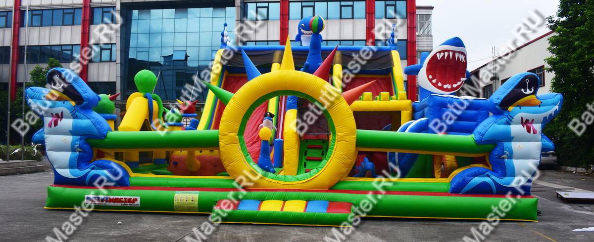 Надувной батут в данной модификации заинтересует детей разного возраста. Ему есть чем удивить. Огромные забавные фигуры в виде акул, осьминогов и морских котиков являются настоящим украшением такого батута. Все вокруг яркое и притягивает взгляд. Здесь есть широкая горка, с которой можно скатиться всей командой одновременно, небольшая черепаха, на которую можно забираться и качаться. Для самых маленьких есть, надувая карусель и небольшая горка. Огромное прыжковое поле позволит кувыркаться, бегать и придумывать различные игры.