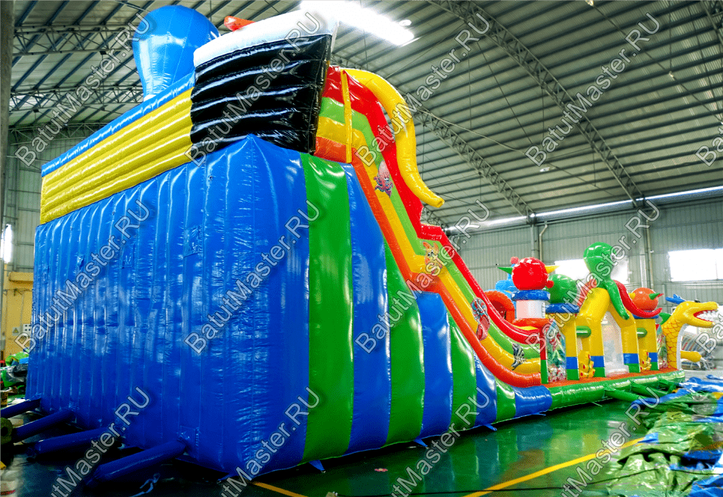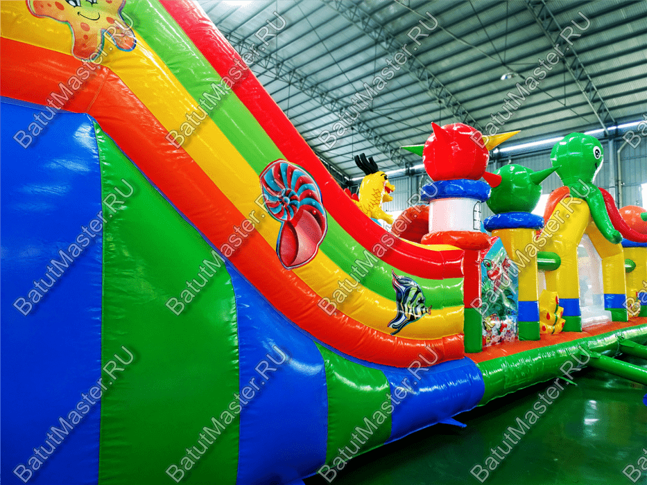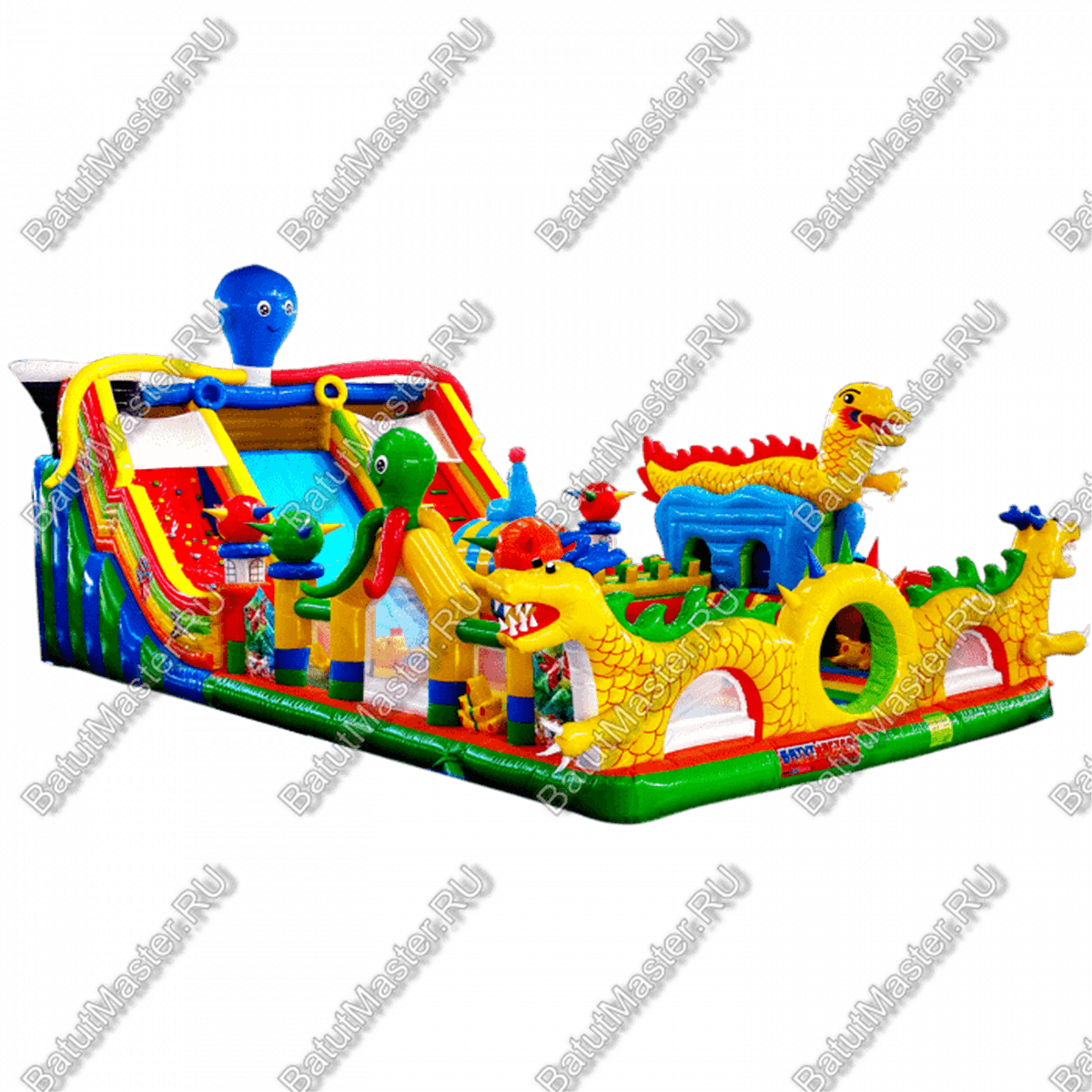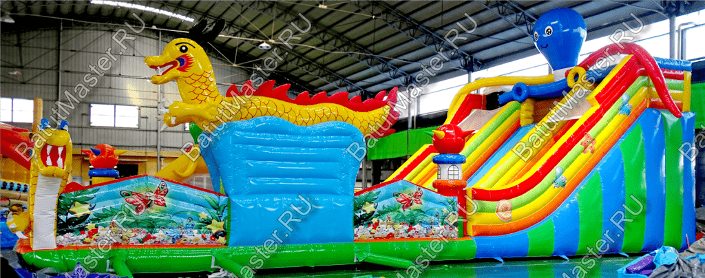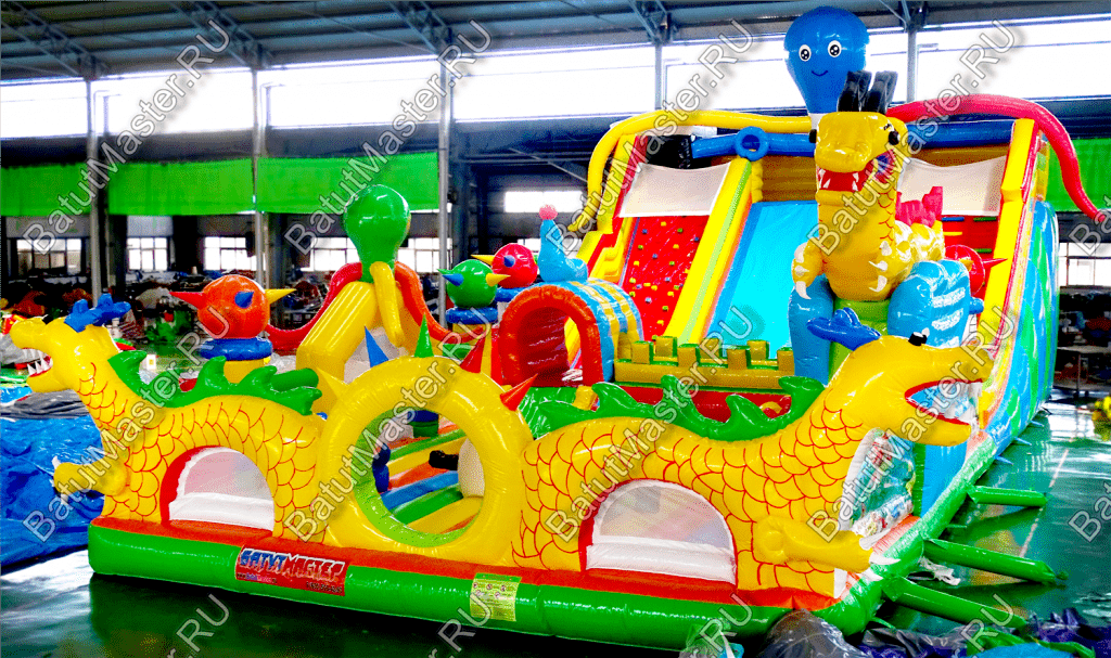 Повсюду ребята смогут встретить надувных осьминогов и драконов, которые украшают собой надувной аттракцион, также там имеются и другие зверята.