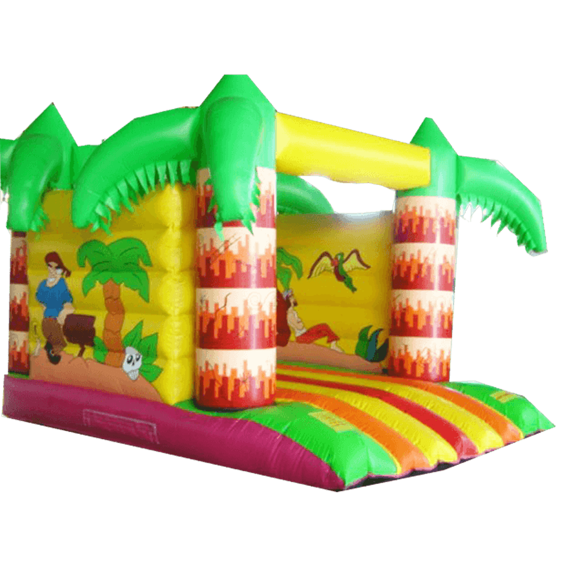 Погрузитесь в загадочную атмосферу нашего яркого надувного аттракциона «Остров Сокровищ». Тематические картинки в совокупности с нестандартным дизайном непременно поднимут настроение ребятишкам. Внутренняя площадка для игры достаточно просторная. Пологая «ступенька безопасности» позволит удобно заходить на батут маленьким детям. Благодаря небольшим размерам, данный батут хорошо впишется в любой парк аттракционов.