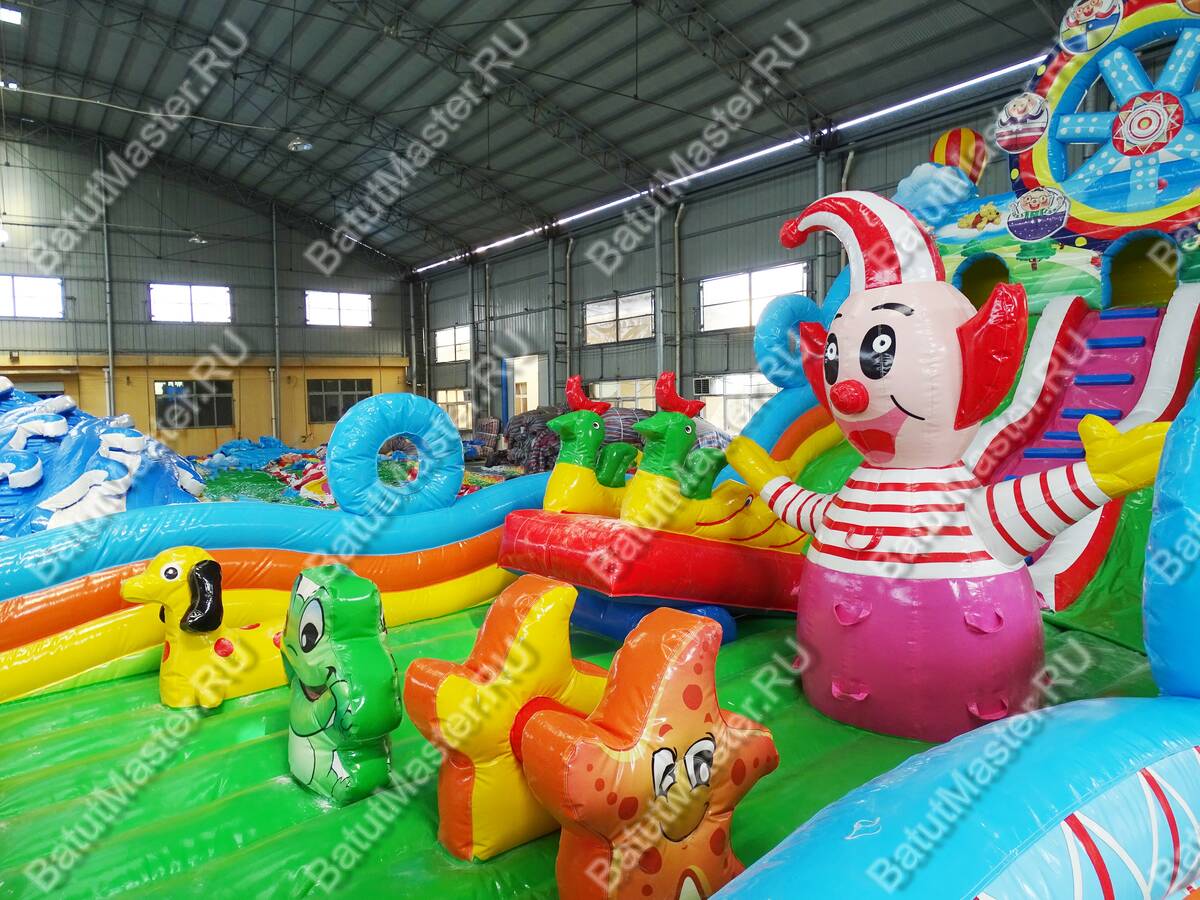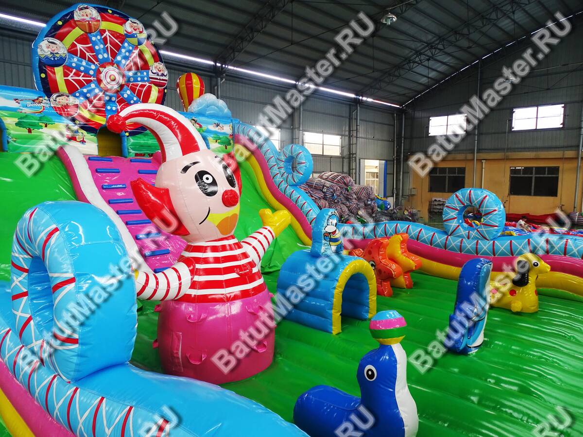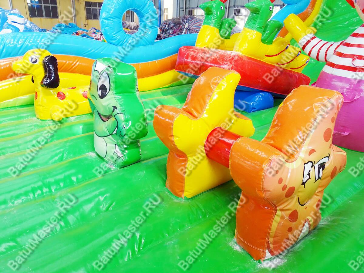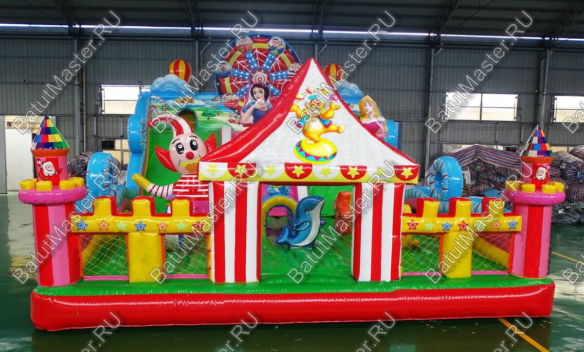 Парк развлечений для невероятных открытий и незабываемых впечатлений ждет юных первооткрывателей. Большой игровой комплекс имеет несколько спусков, различные модули, на которые всегда любят забираться дети, а потом прыгать вниз. Наверху есть маленькие домики, где можно играть в прятки. Все это напоминает цирковую арену, где даже морские котики показывают, как нужно веселиться. Яркий цвет и современное оснащение подарит только радость. Здесь достаточно места для того, чтобы дети смогли придумать подвижные игры. Стоит отметить большую зону для прыжков, что так любят дети. Они непременно оценят данную модель игрового комплекса, так как здесь все придумано для того, чтобы можно было бесконечно лазать, прыгать и спускаться. Каждая деталь здесь яркая и притягивает взгляд. Сбоку батут защищен надувными бортами, которые не содержат жестких элементов, а это значит, что здесь совершенно безопасно. Спереди имеются окошки из прочной сетки. Рассчитан для бизнеса. Выполнен из качественного ламинированного ПВХ, а это значит, что он может долгое время стоять под солнцем или при низкой температуре. Коммерческий батут может быть установлен как самостоятельные парк развлечений со множеством интересных локаций.