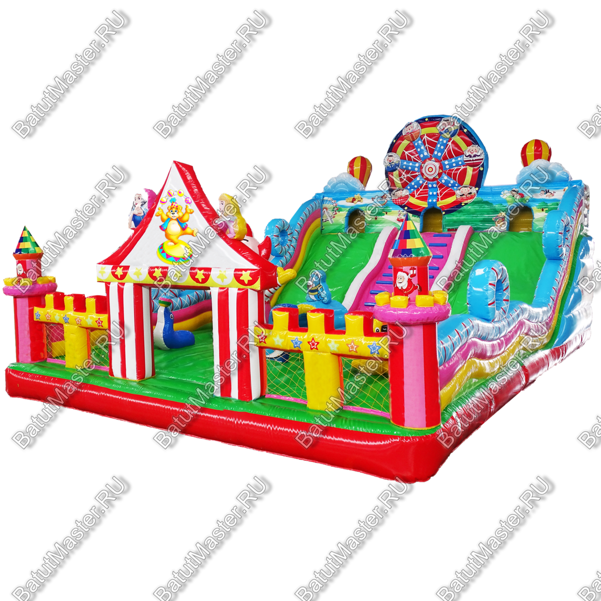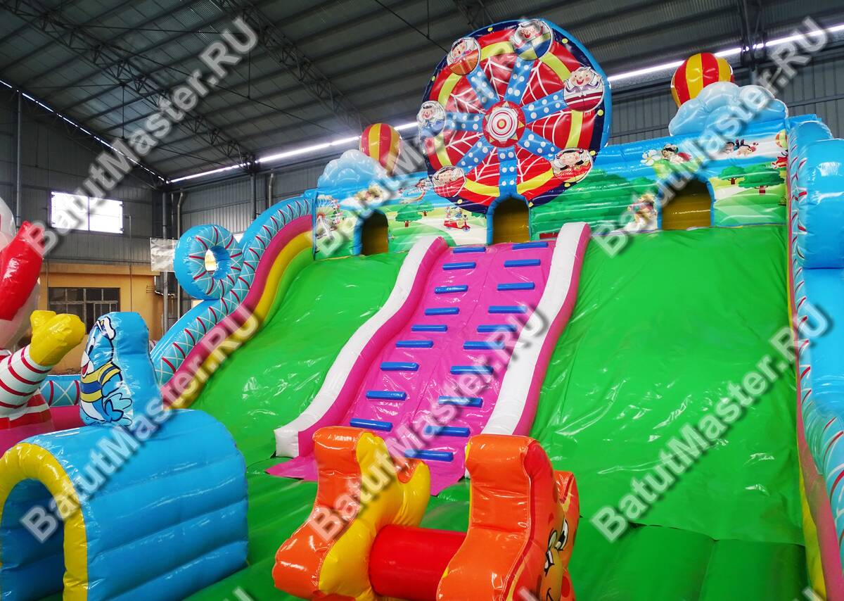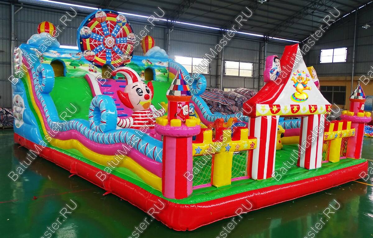Парк развлечений для невероятных открытий и незабываемых впечатлений ждет юных первооткрывателей. Большой игровой комплекс имеет несколько спусков, различные модули, на которые всегда любят забираться дети, а потом прыгать вниз. Наверху есть маленькие домики, где можно играть в прятки. Все это напоминает цирковую арену, где даже морские котики показывают, как нужно веселиться. Яркий цвет и современное оснащение подарит только радость. Здесь достаточно места для того, чтобы дети смогли придумать подвижные игры. Стоит отметить большую зону для прыжков, что так любят дети. Они непременно оценят данную модель игрового комплекса, так как здесь все придумано для того, чтобы можно было бесконечно лазать, прыгать и спускаться. Каждая деталь здесь яркая и притягивает взгляд. Сбоку батут защищен надувными бортами, которые не содержат жестких элементов, а это значит, что здесь совершенно безопасно. Спереди имеются окошки из прочной сетки. Рассчитан для бизнеса. Выполнен из качественного ламинированного ПВХ, а это значит, что он может долгое время стоять под солнцем или при низкой температуре. Коммерческий батут может быть установлен как самостоятельные парк развлечений со множеством интересных локаций.