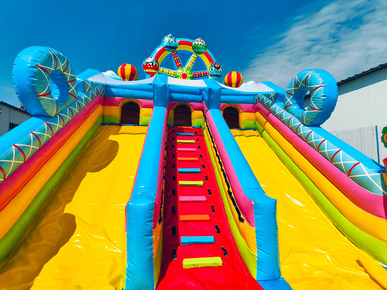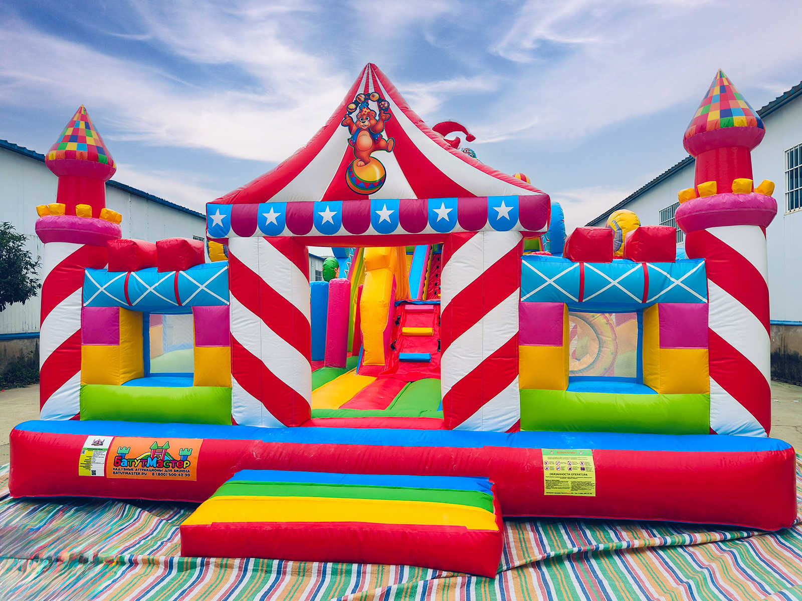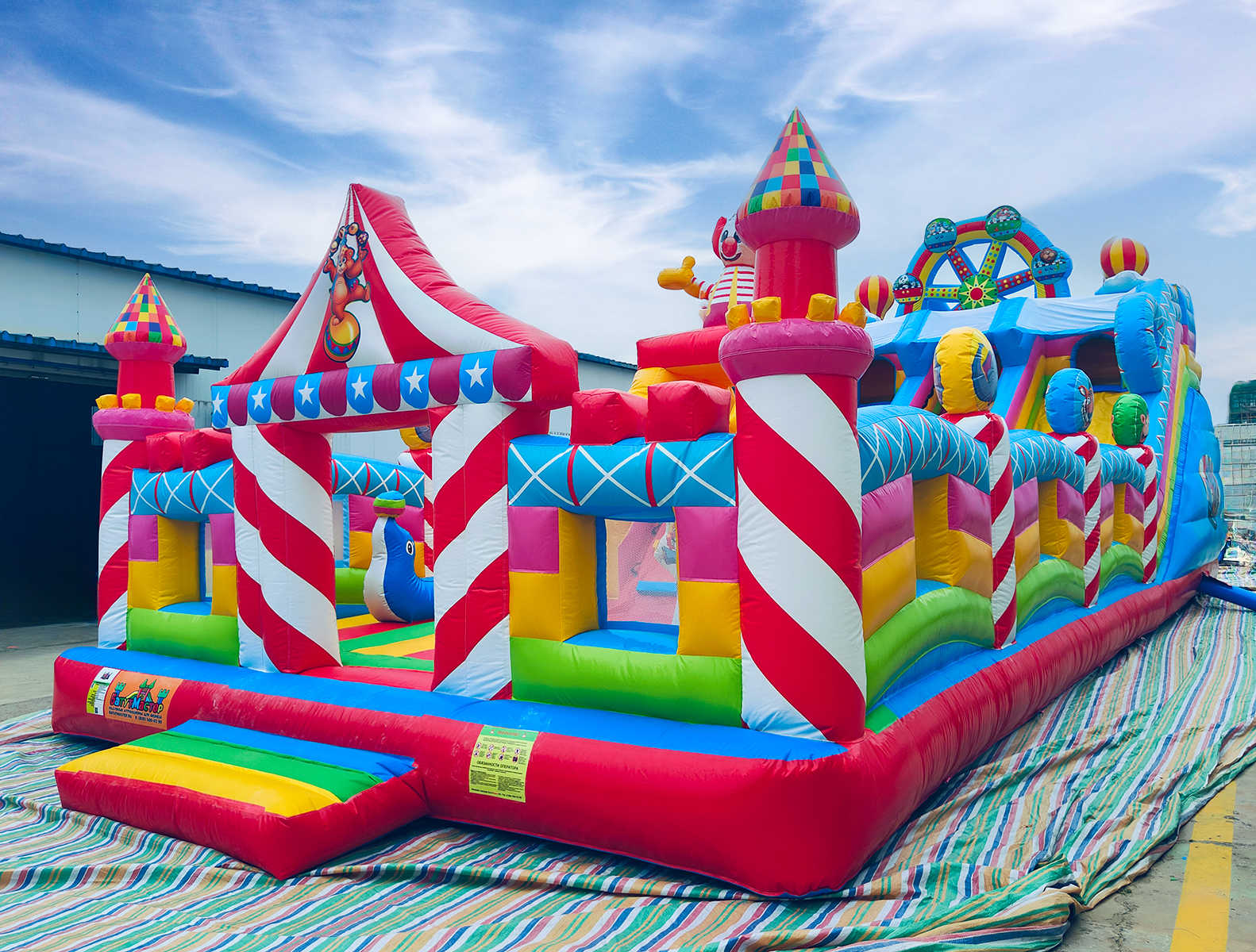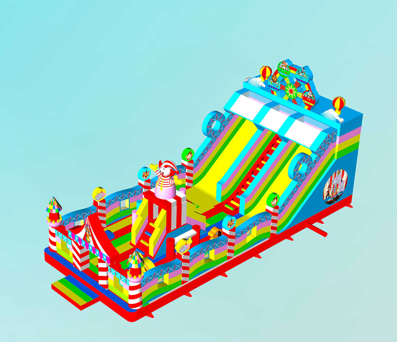 Надувной батут «Парк развлечений» включает в себя разнообразные игровые элементы, которые сделают его центром внимания на любом мероприятии. Выокие две горки, а также надувные фигуры циркачей и клоунов превращают аттракцион в не просто батут, а настоящую игровую площадку для детей. Яркие цвета делают его привлекательным как для детей, так и для взрослых, обеспечивая необходимую атмосферу веселья и радости.