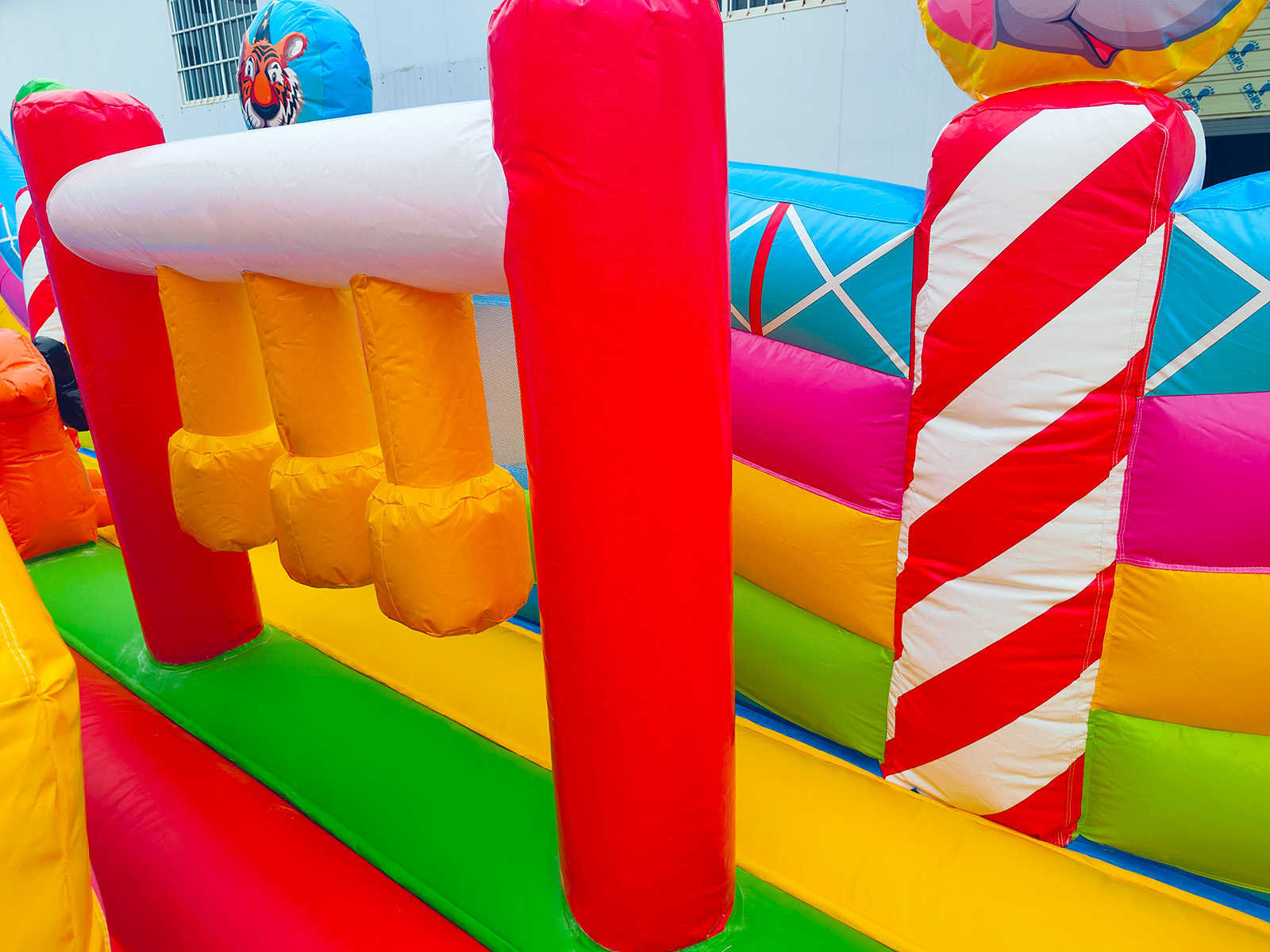 Этот батут изготовлен из усиленного армированного поливинилхлорида (ПВХ), который обладает высокой устойчивостью к механическим повреждениям и внешним воздействиям. Материал не только прочный, но и долговечный, что делает его отличным выбором для многократного использования в условиях активной эксплуатации. К тому же, ПВХ не подвержен выгоранию на солнце и сохраняет яркие цвета в течение долгого времени, что немаловажно для аттракционов, которые будут часто находиться на открытом воздухе.