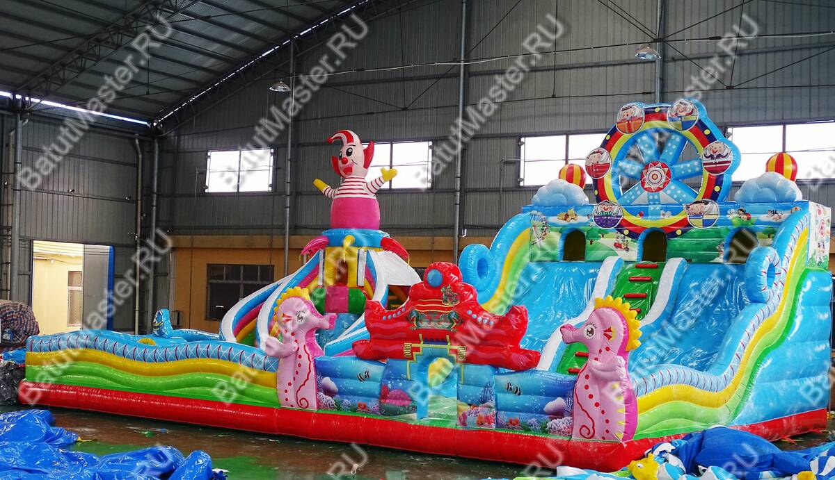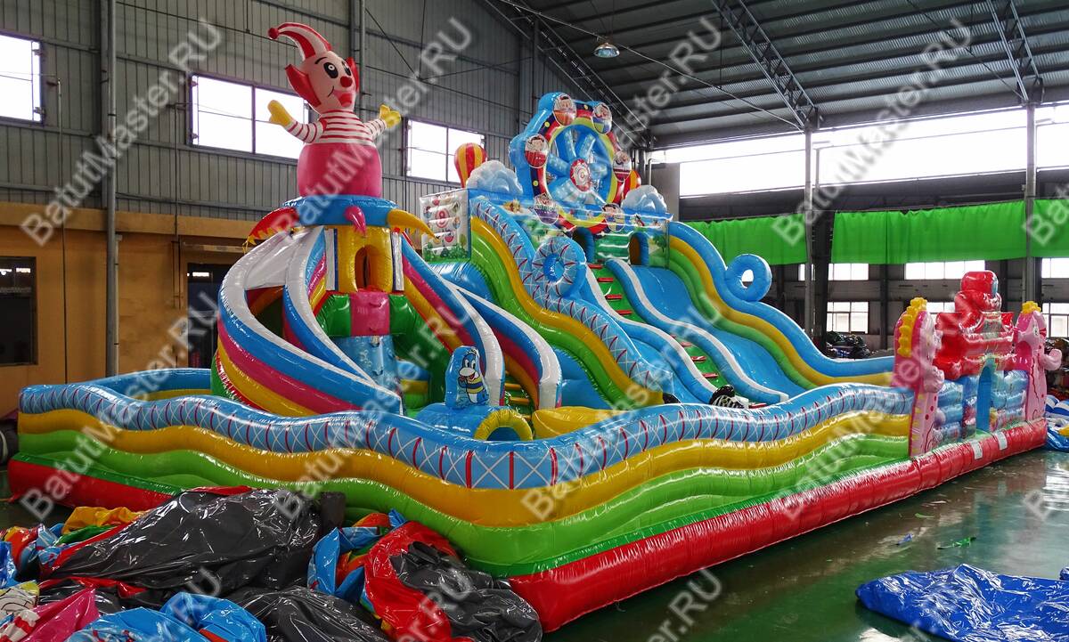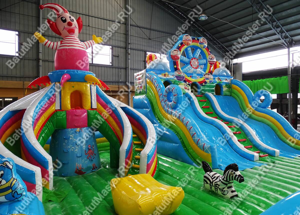 Внутри надувного батута ребят ждёт масса развлечений на любой вкус. Дети смогут поиграть с разнообразными надувными фигурами в виде забавных животных, а также взобраться по мини-скалодрому и попасть на башню с двумя изогнутыми горками. Порадует детишек и большая горка с верхним ярусом. По закрытому балкону можно побегать и скатиться по волнистой горке, получив максимум позитива. Несмотря на многообразие развлечений, в батуте осталось место и для весёлого бега, активных игр и высоких прыжков, что точно порадует малышей.