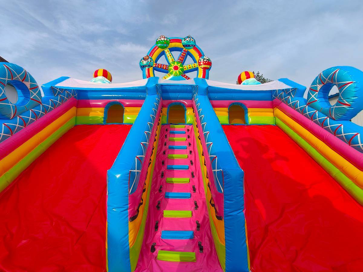 «Парк развлечений 2» — это коммерческий надувной батут-площадка с размерами 12x8x7 м, созданный для активных детских развлечений, которые приносят радость и прибыль. Его яркое оформление в стиле цирка мгновенно привлекает внимание: разноцветные полосы, клоуны, декоративные башни и животные делают его центром притяжения на любом мероприятии.
