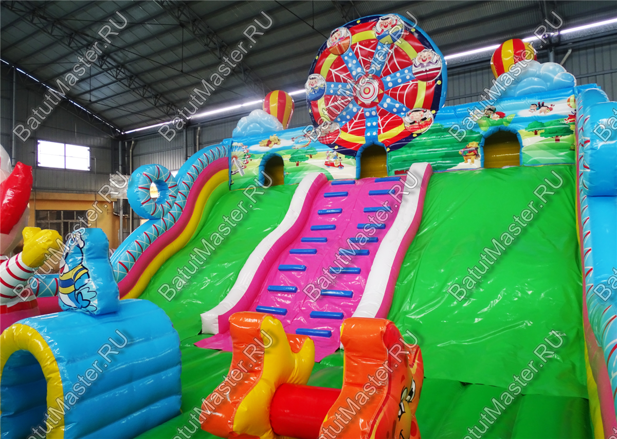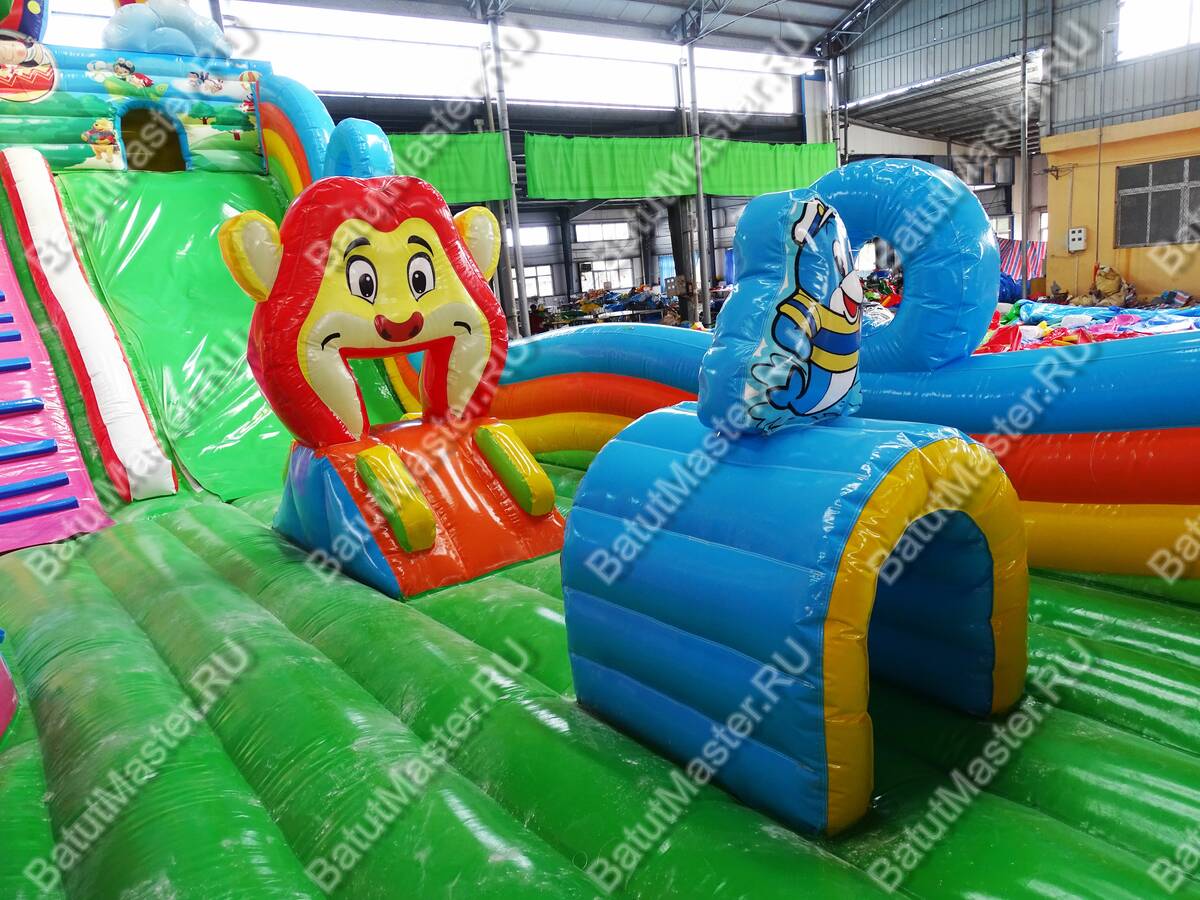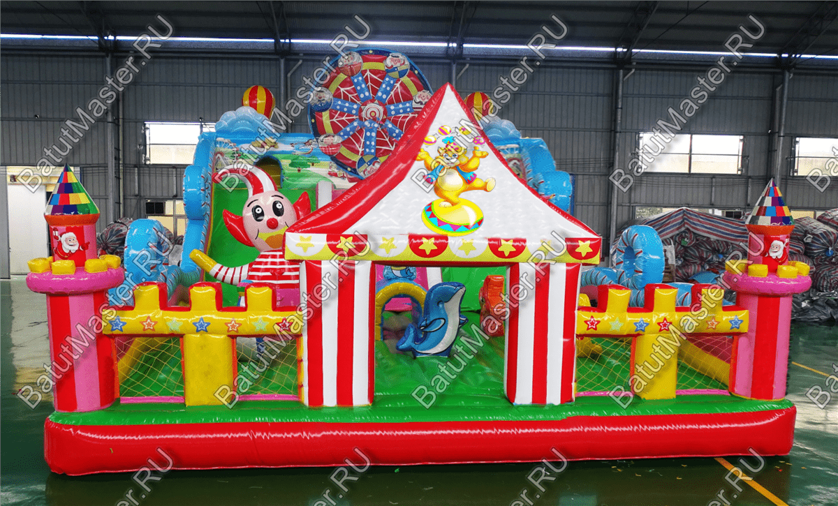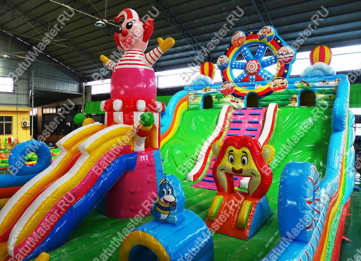 Добро пожаловать в батутный парк развлечений! Здесь юных первооткрывателей ждет головокружительное и интересное времяпровождение среди самых интересных моделей и персонажей. Веселые клоуны, морские котики, дельфины, колесо обозрения и многое другое. Огромное поле для игр в догонялки и просто прыжков вверх также понравится детям. Можно играть целой командой преодолевая некоторые препятствия. Например, огромный клоун, по которому можно забираться наверх. Радость и восторг подарит детям данный комплекс. В конце батута имеется две широких горки, по которым спускаться одновременно могут несколько детей, а также два ряда порожков. Играть в прятки можно в домиках, которые имеются над горками.Надувной батут развивает ловкость движений, координацию и физическую силу, что так важно в период развития малышей. Предназначен для детей от трех лет. Стоит отметить безопасность комплекса. По всему периметру он имеет высокие мягкие борта, а спереди окошки с прочной сеткой. Малышей теперь всегда смогут контролировать родители во время активных игр.Коммерческий батут изготовлен из качественных и нетоксичных материалов. Простой и не прихотливы й в уходе. Предназначен для бизнеса.