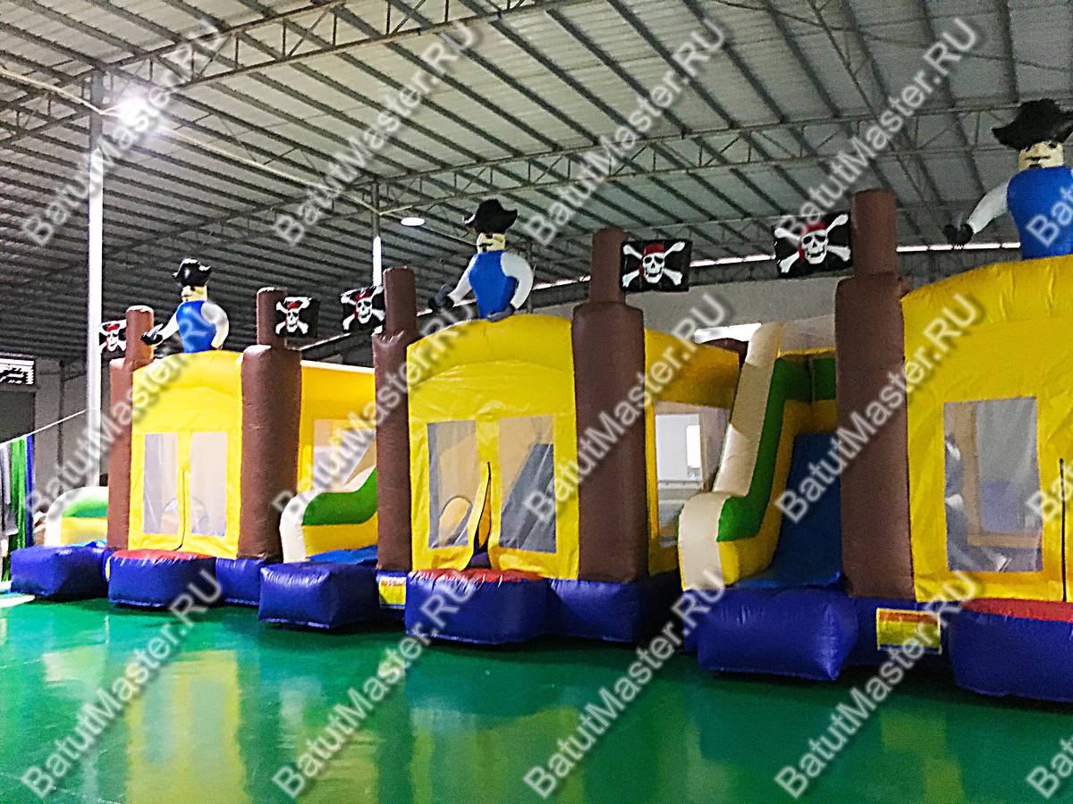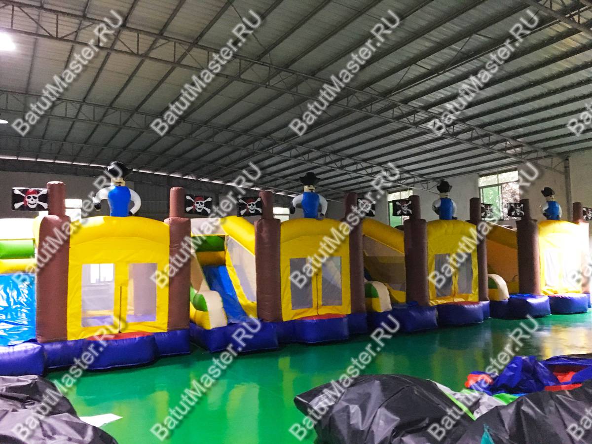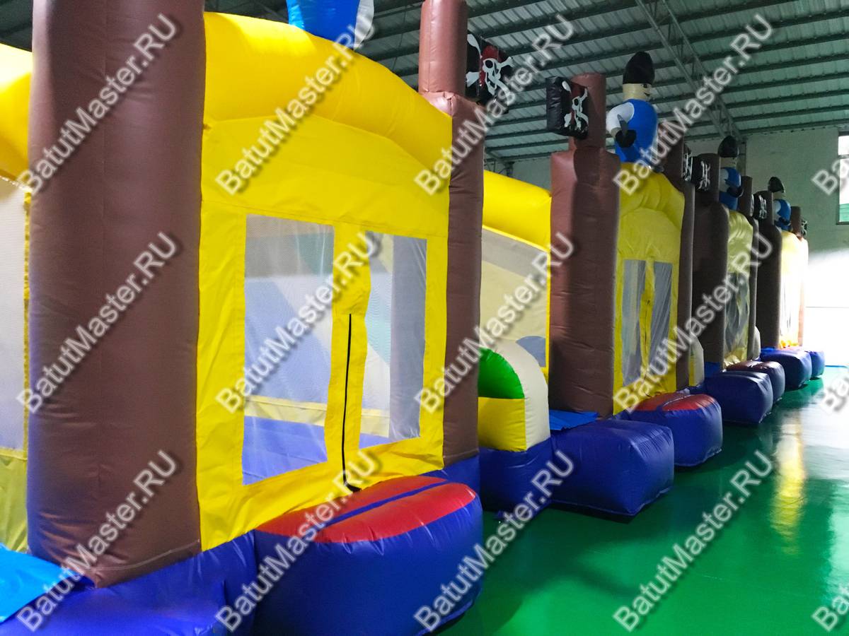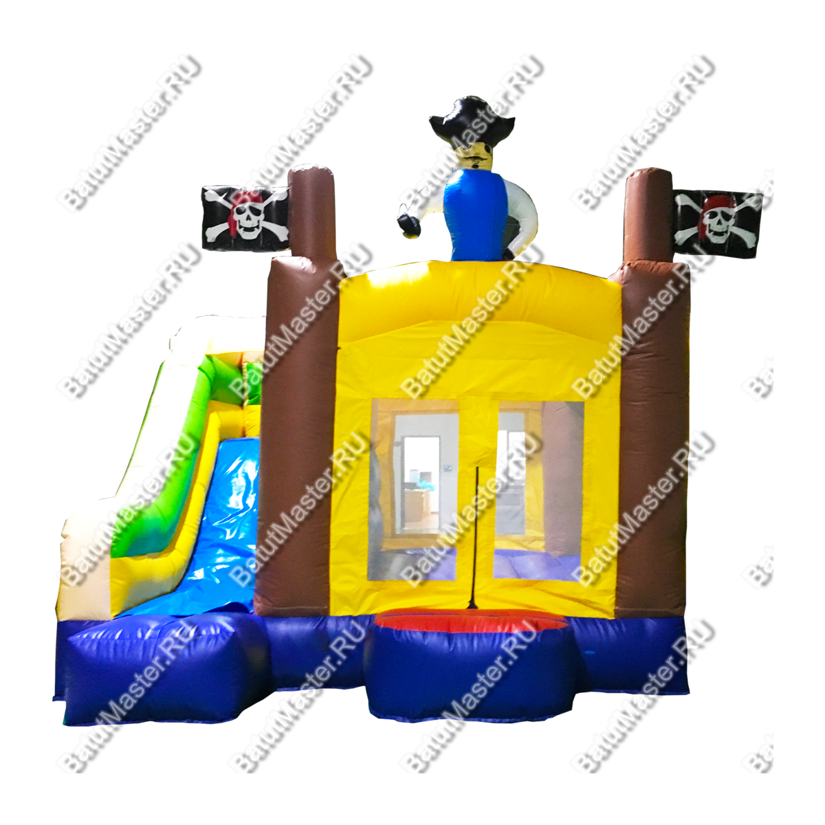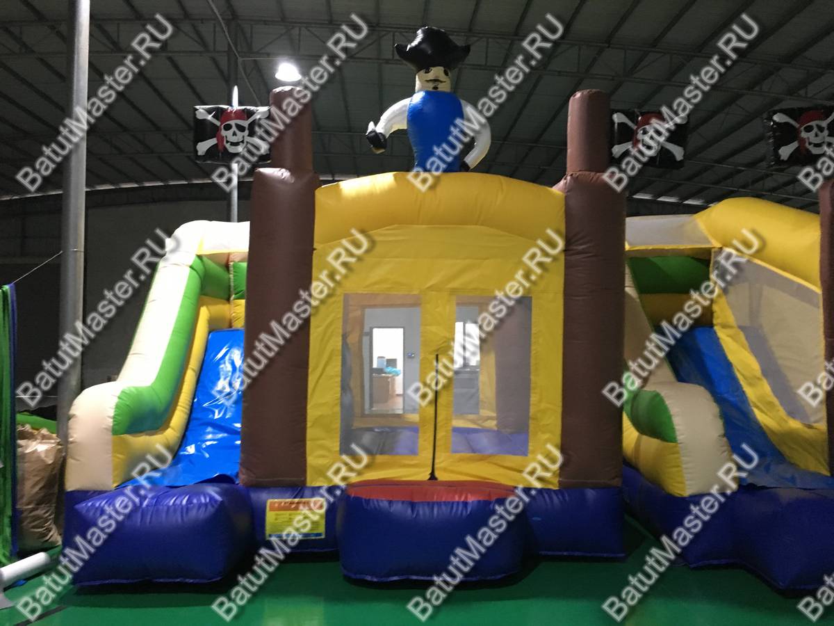 Снаружи батут украшает надувная фигура пирата, что и задает тематику комплексу.