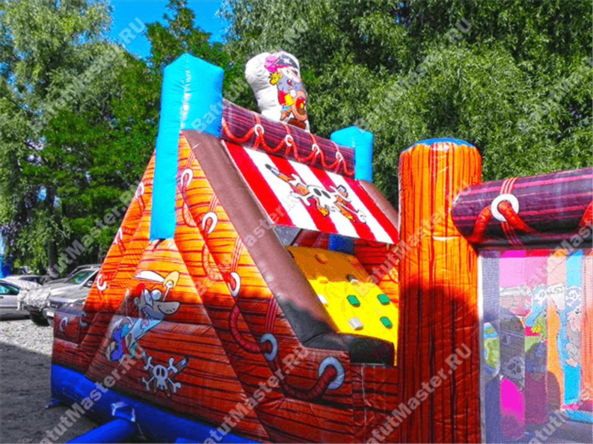 Здесь есть и полоса препятствий, и необычный дизайн, и игровые фигуры, и даже надувная скала, залезть на которую мечтает каждый ребенок. Высокая безопасность, колоритная горка и вывеска, выделяющая батут на фоне других развлечений – коммерческая выгода аттракциона очевидна. Более того, о качестве надувного батута переживать не приходится, ровные швы, устойчивость, легкий сбор, долгий срок эксплуатации, колоритные пираты, яркая принт-краска, которая не выгорает и не облезает – достоинства можно перечислять бесконечно.